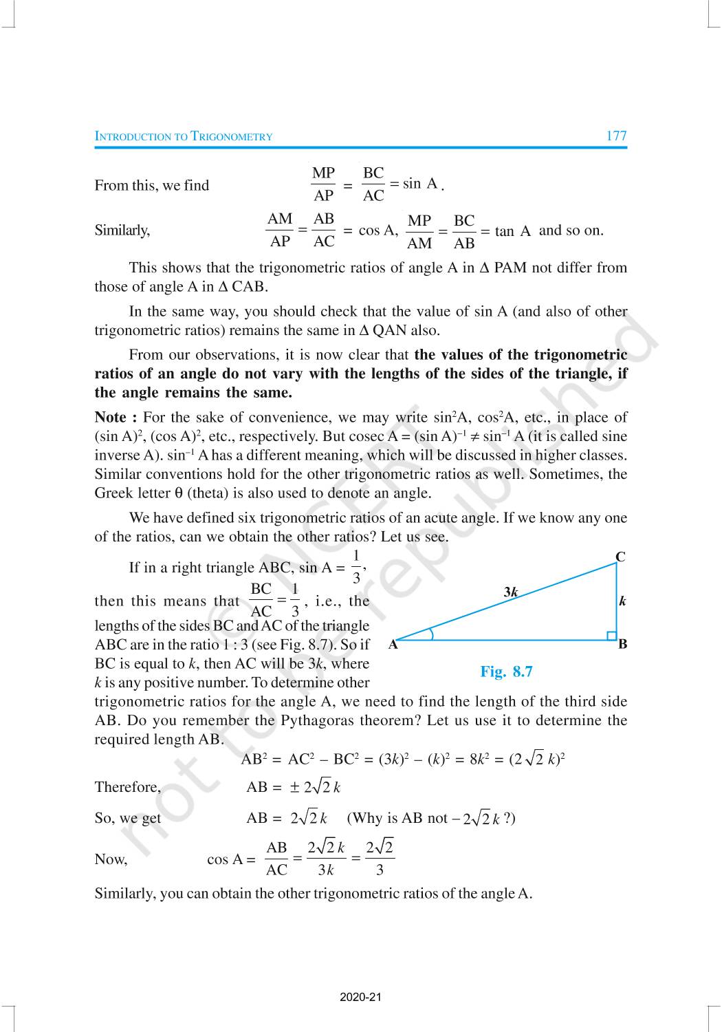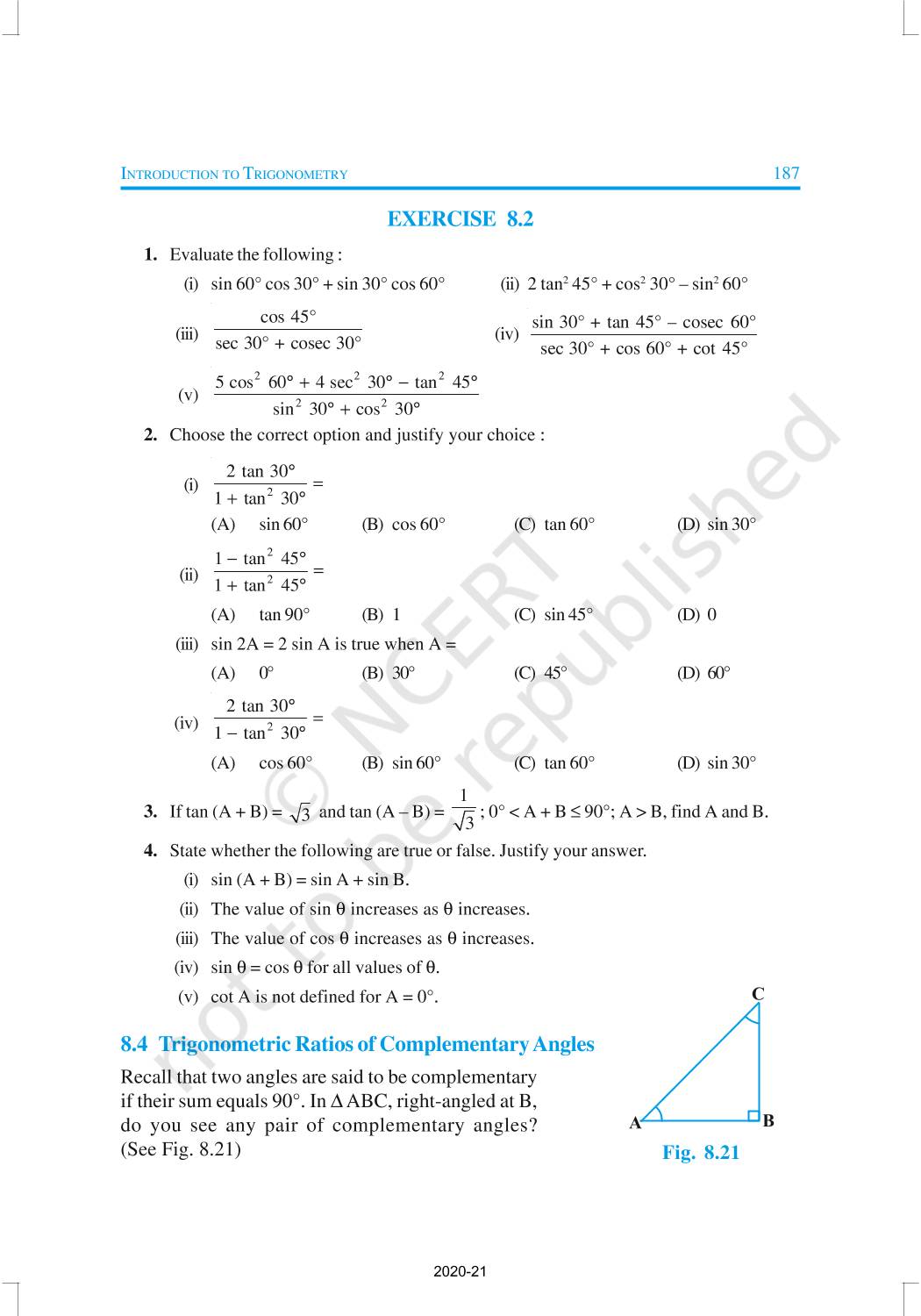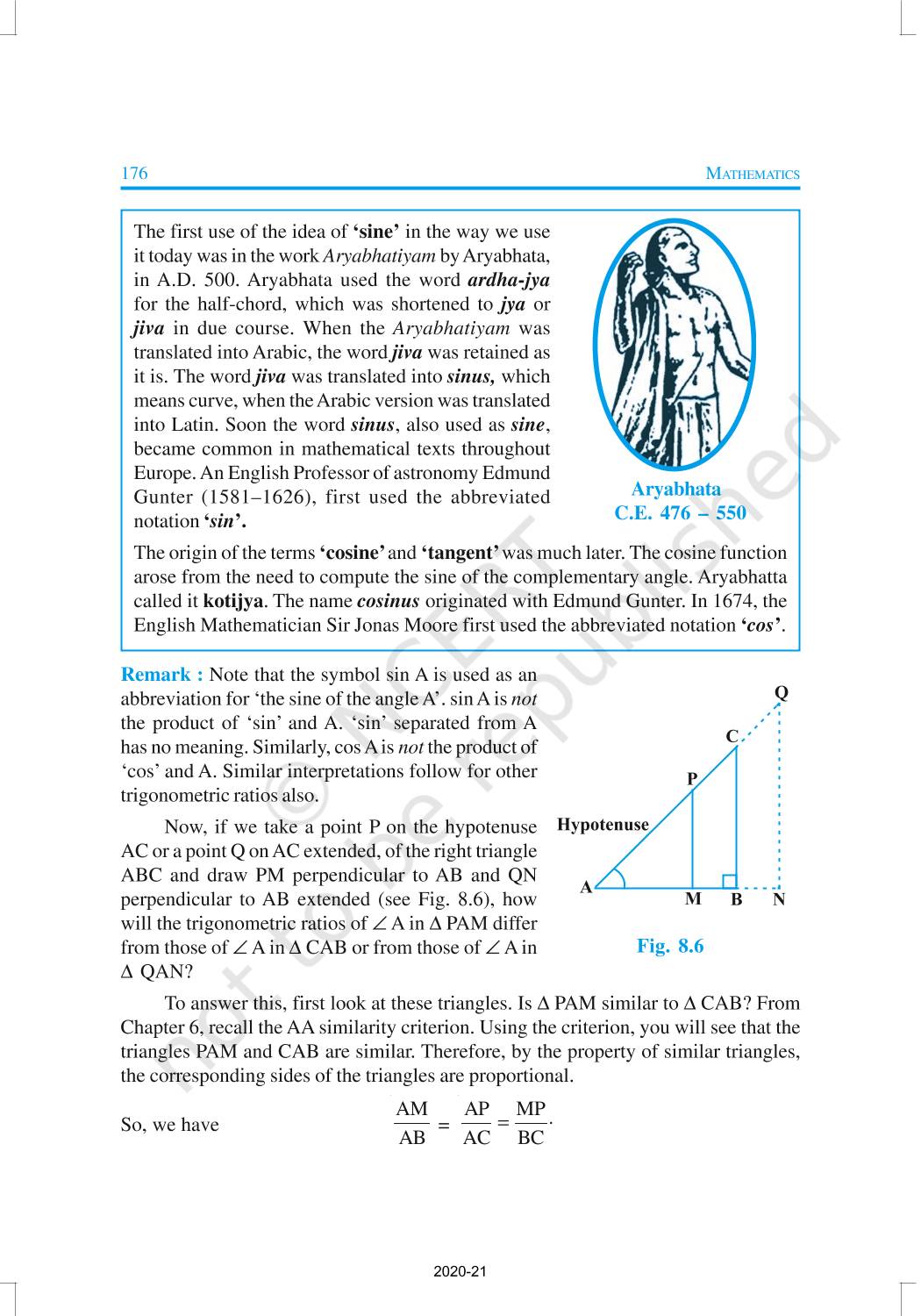 In this chapter, we will study some ratios of the sides of a right triangle with respect to its acute angles, called trigonometric ratios of the angle. Trigonometric Ratios of Some Specific Angles, Trigonometric Ratios of Complementary Angles, Trigonometric Identities are discussed in this chapter.