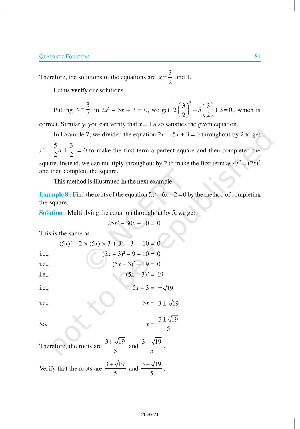 Finding Solution of a Quadratic Equation by Factorisation, Solution of a Quadratic Equation by Completing the Square, Nature of Roots are being discussed in this chapter.