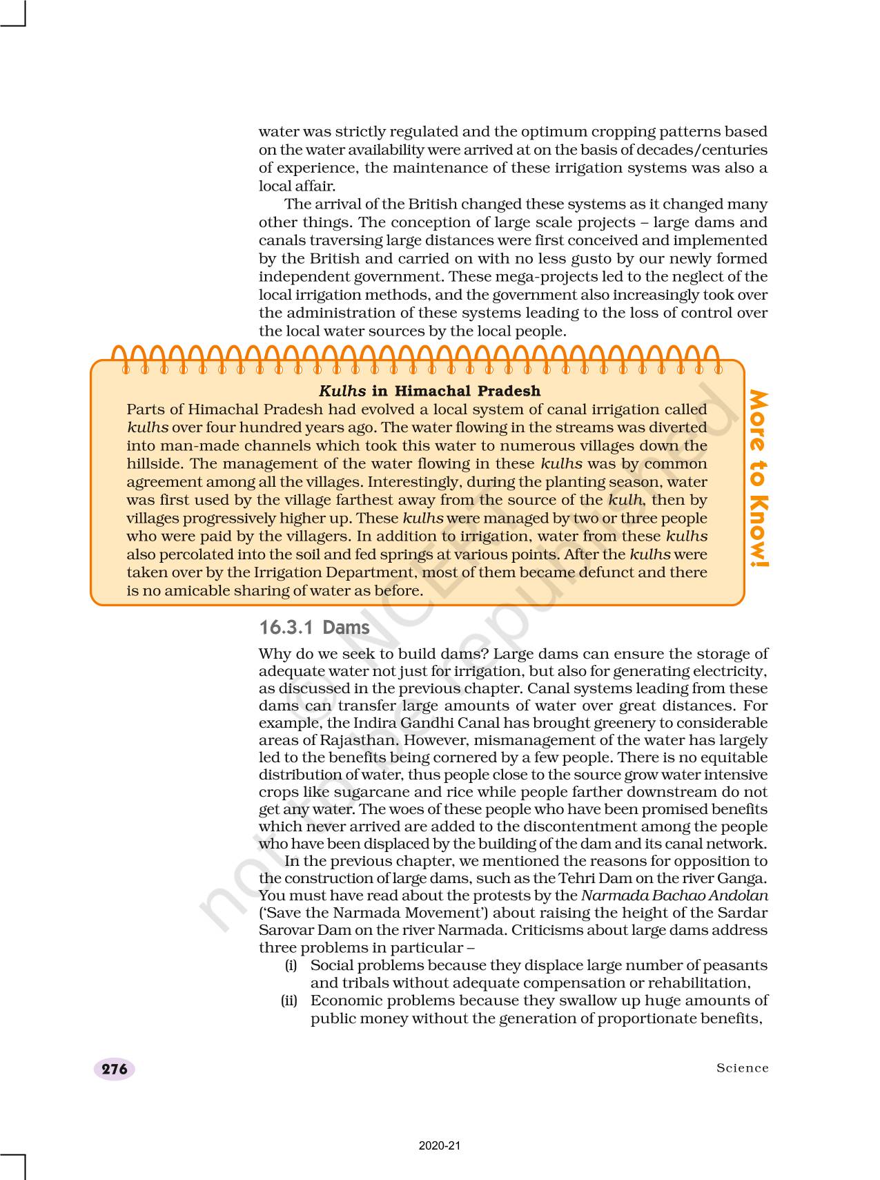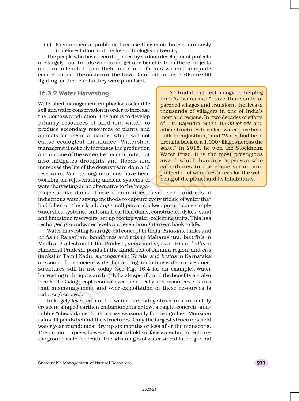 • The harnessing of water resources by building dams has social, economic and environmental implications. Alternatives to large dams exist. These are locale- specific and may be developed so as to give local people control over their local resources.