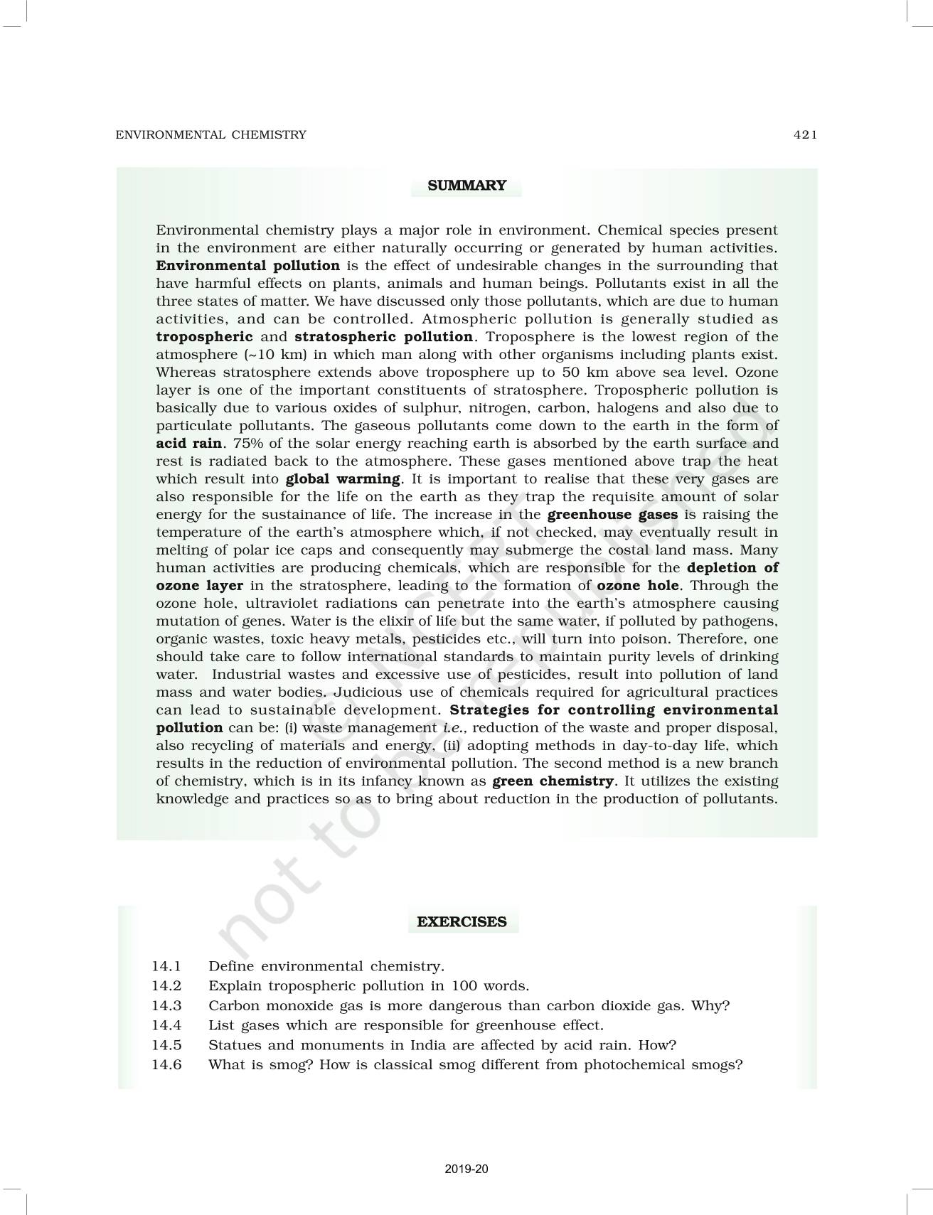 The time when students had limited options of choice for NCERT books wherein they need to go to the bookstore to buy the books but here at BeTrained.in, you can read the complete chapter-Environmental Chemistry of NCERT books for class 11 Chemistry Part II. If CBSE class 11 students are finding it hard to search for NCERT Chemistry Part II books online, then this is the right place as we have provided the textbooks of NCERT chapter wise. These books are available on our website for free along with NCERT Solutions and Exemplar solutions.