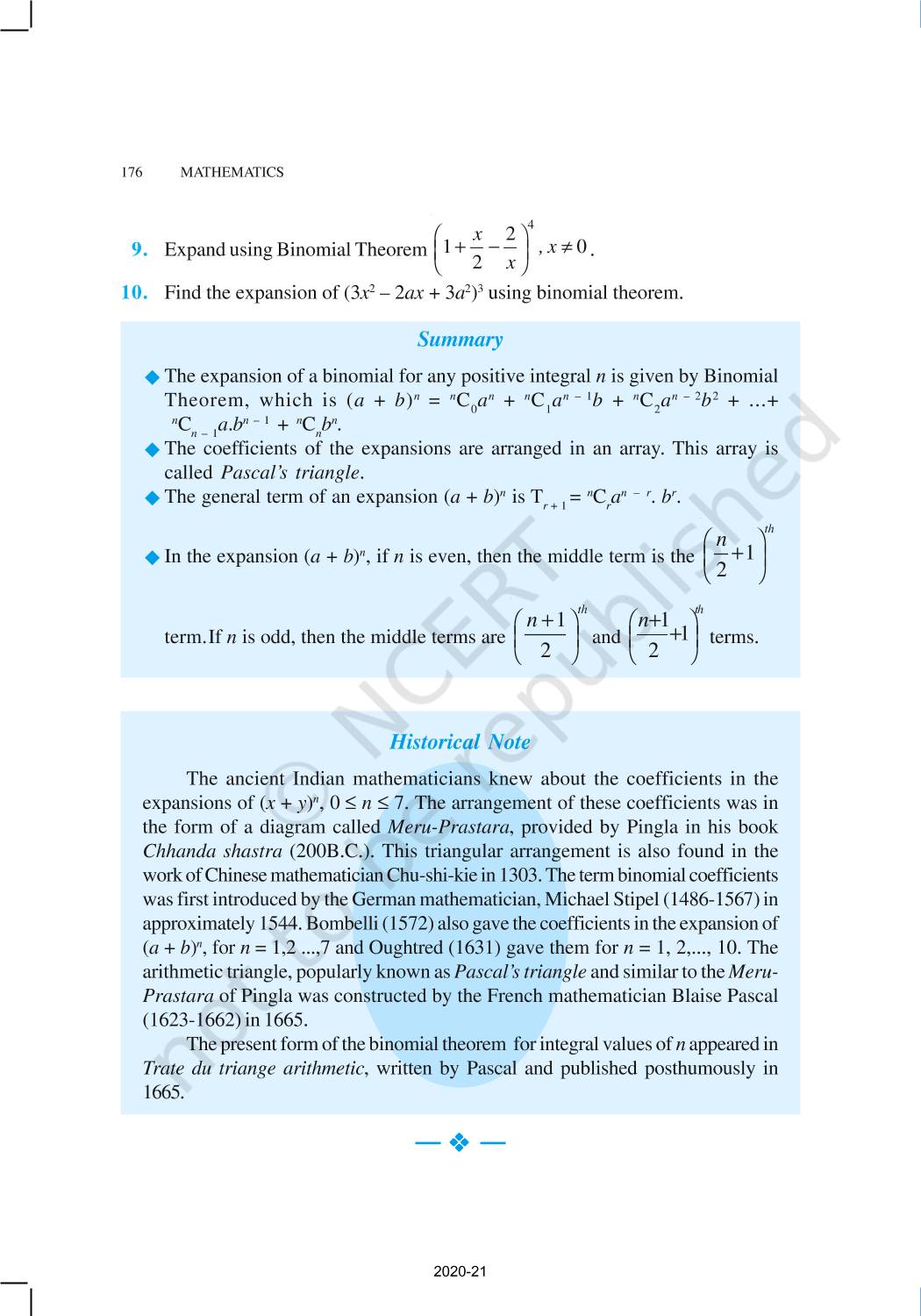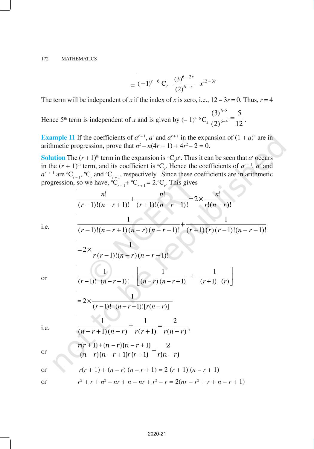 The time when students had limited options of choice for NCERT books wherein they need to go to the bookstore to buy the books but here at BeTrained.in, you can read the complete chapter-Binomial Theorem of NCERT books for class 11 Mathematics. If CBSE class 11 students are finding it hard to search for NCERT Mathematics books online, then this is the right place as we have provided the textbooks of NCERT chapter wise. These books are available on our website for free along with NCERT Solutions and Exemplar solutions.