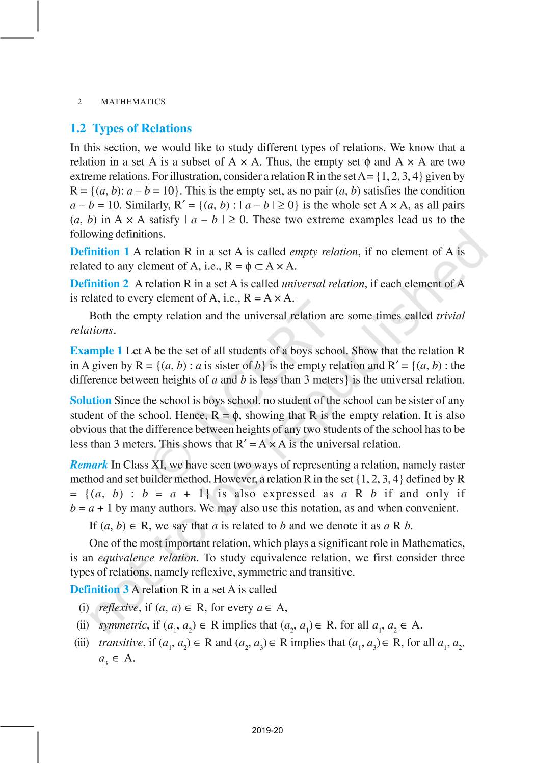 The time when students had limited options of choice for NCERT books wherein they need to go to the bookstore to buy the books but here at BeTrained.in, you can read the complete chapter-Relations And Functions of NCERT books for class 12 Mathematics Part I. If CBSE class 12 students are finding it hard to search for NCERT Mathematics Part I books online, then this is the right place as we have provided the textbooks of NCERT chapter wise. These books are available on our website for free along with NCERT Solutions and Exemplar solutions.