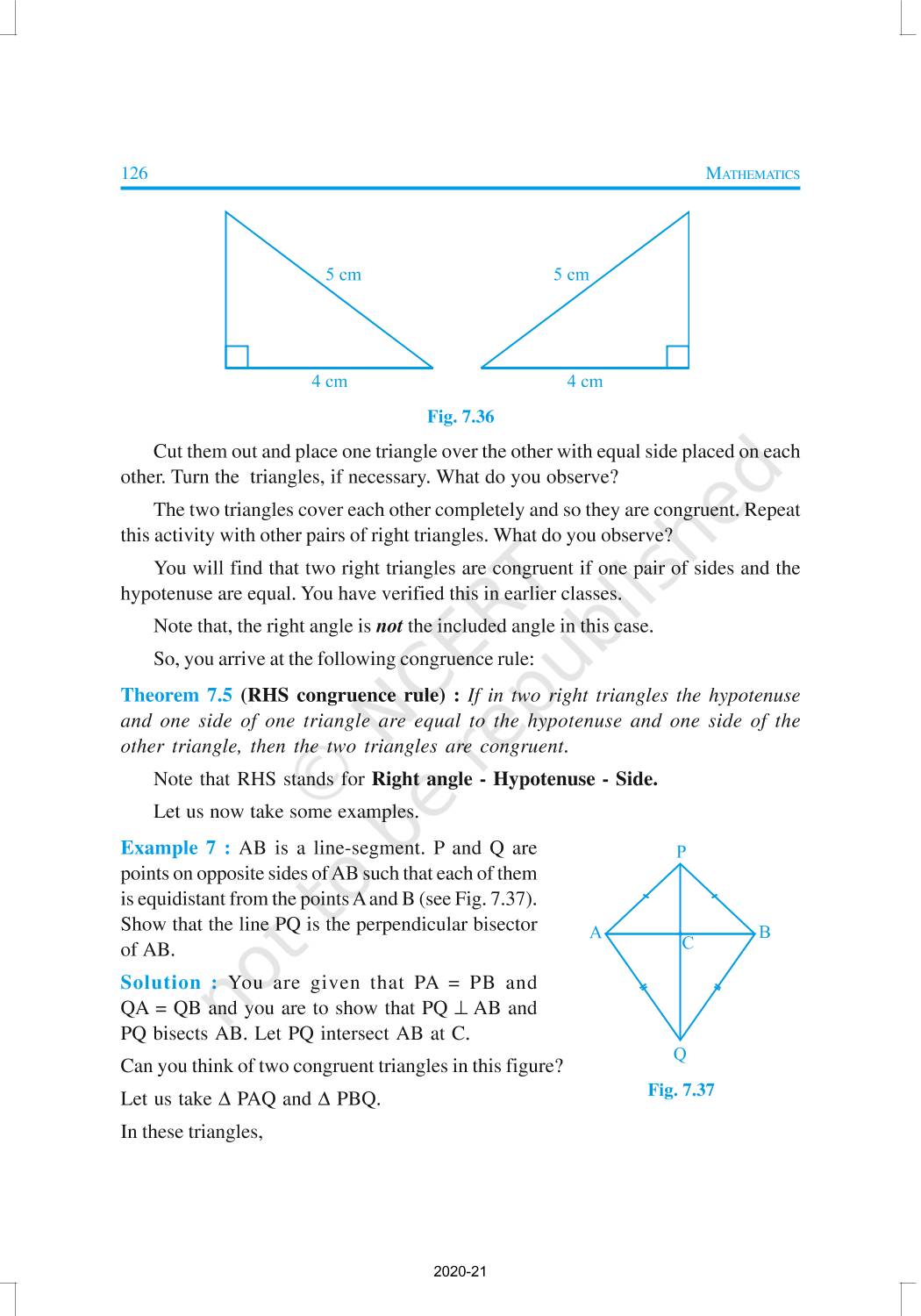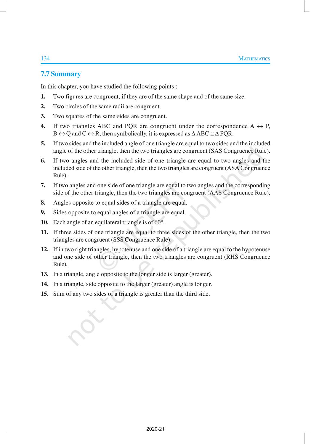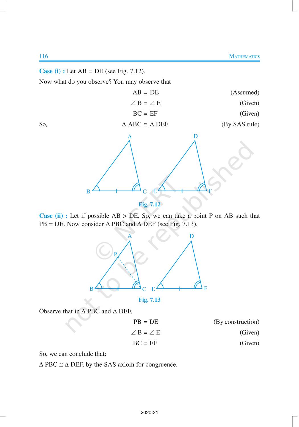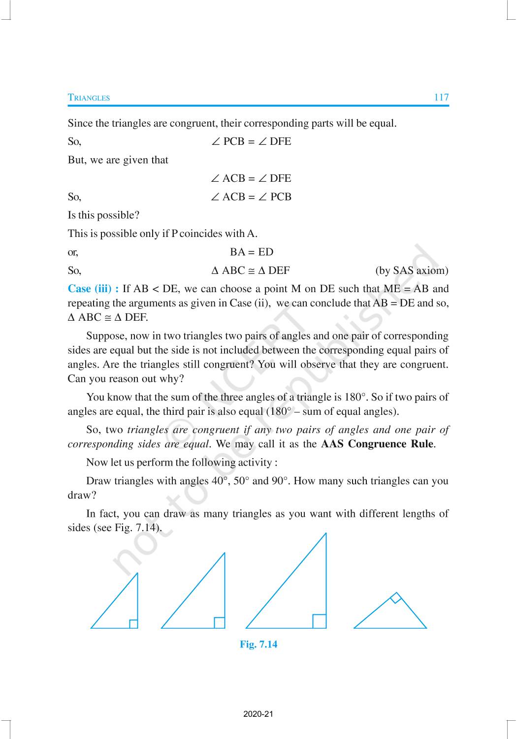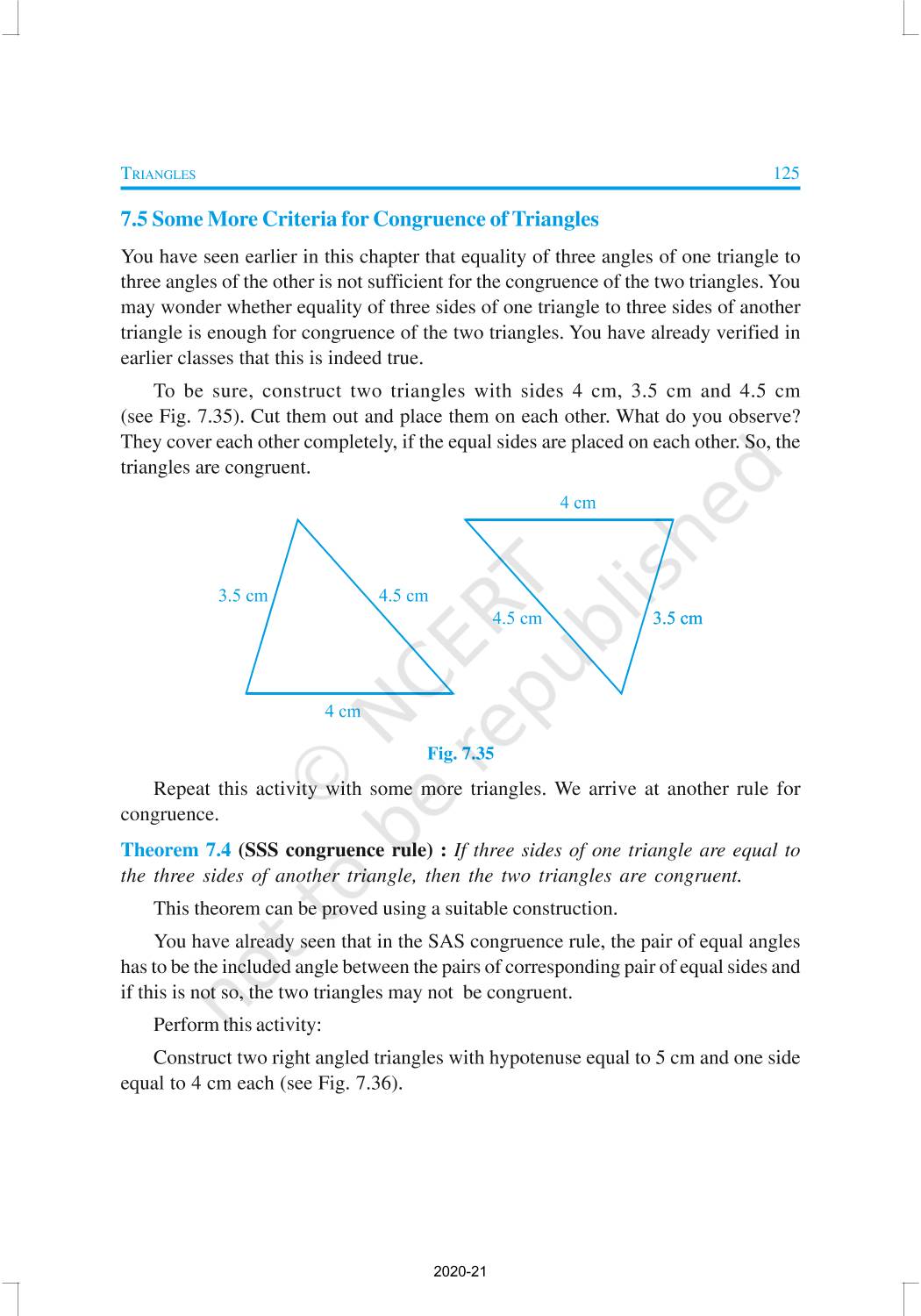 You have studied about triangles and their various properties in your earlier classes. You know that a closed figure formed by three intersecting lines is called a triangle. (‘Tri’ means ‘three’). A triangle has three sides, three angles and three vertices. In Chapter 6, you have also studied some properties of triangles. In this chapter, you will study in details about the congruence of triangles, rules of congruence, some more properties of triangles and inequalities in a triangle. You have already verified most of these properties in earlier classes. We will now prove some of them.