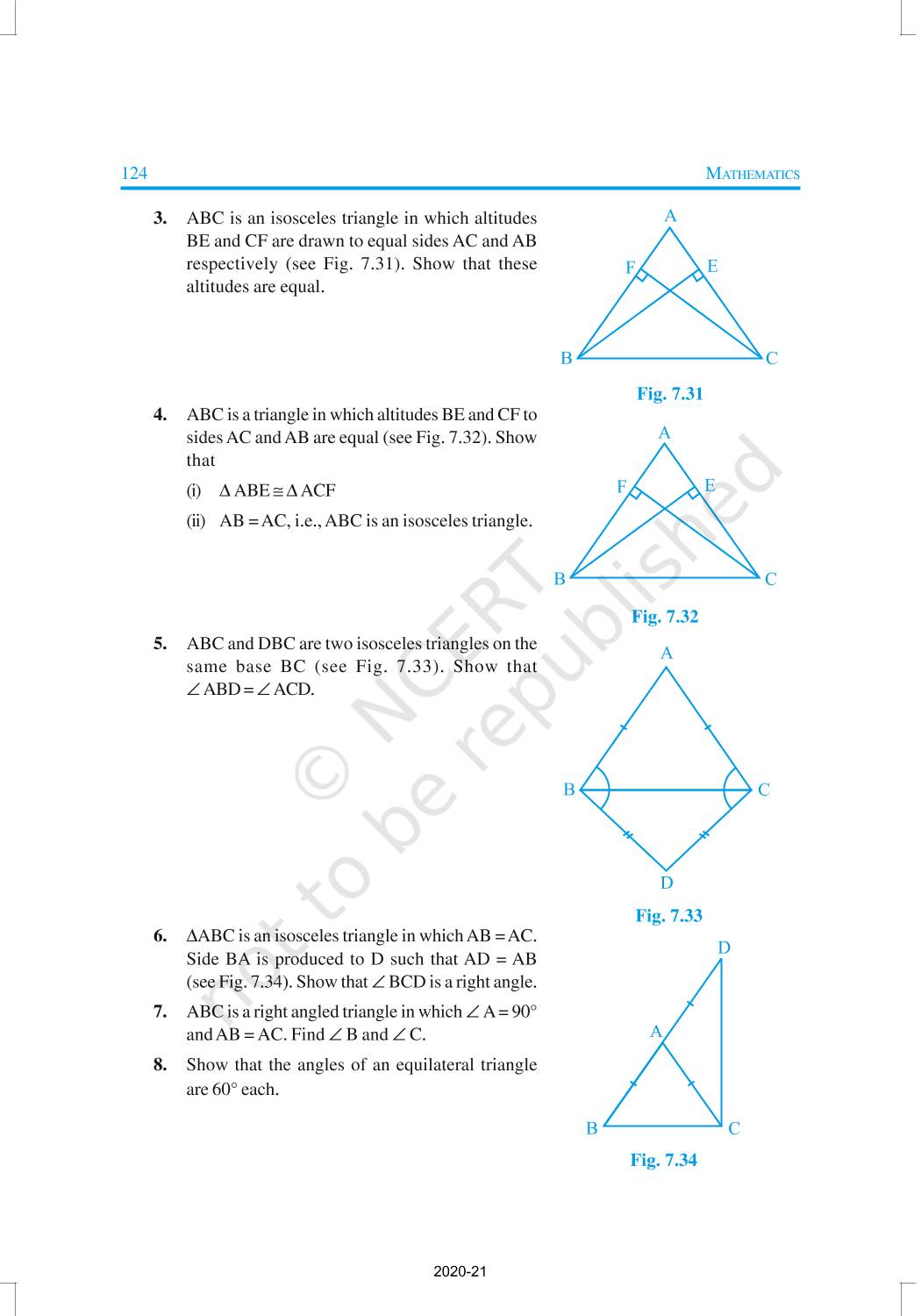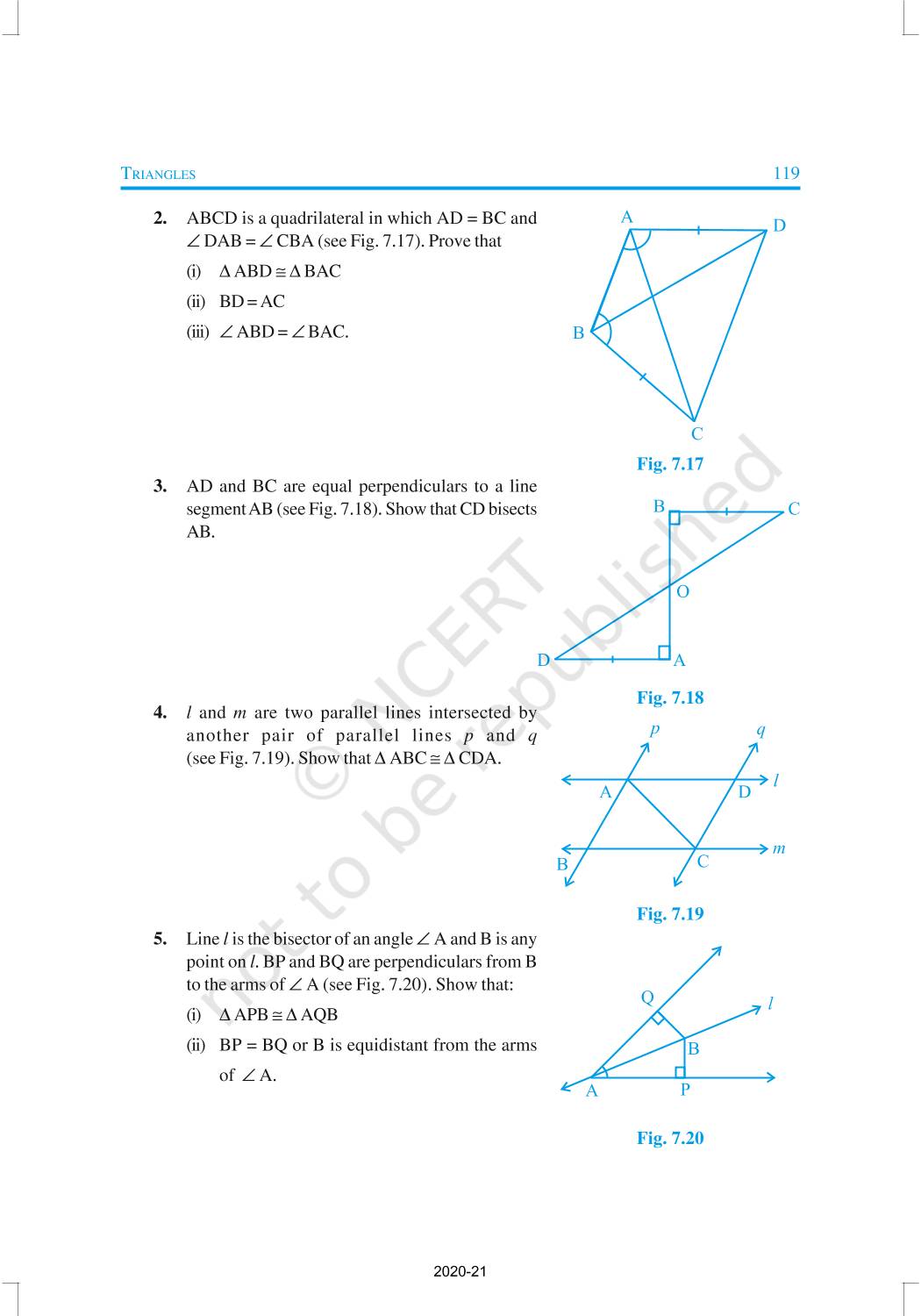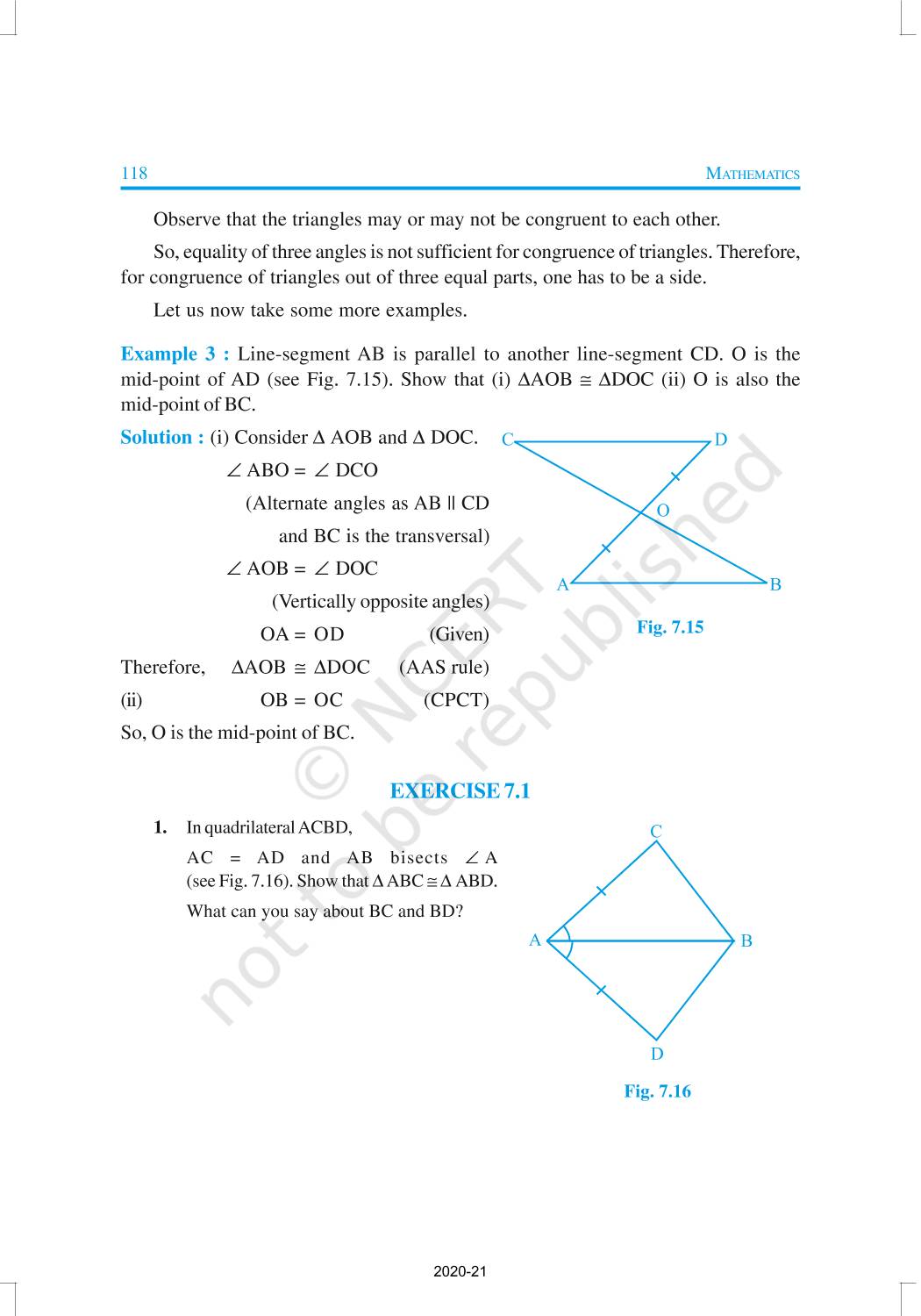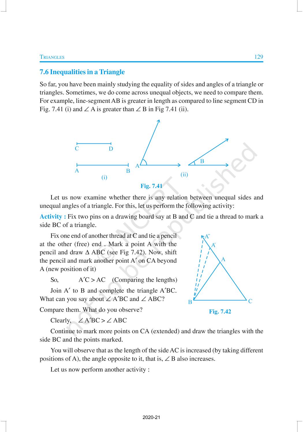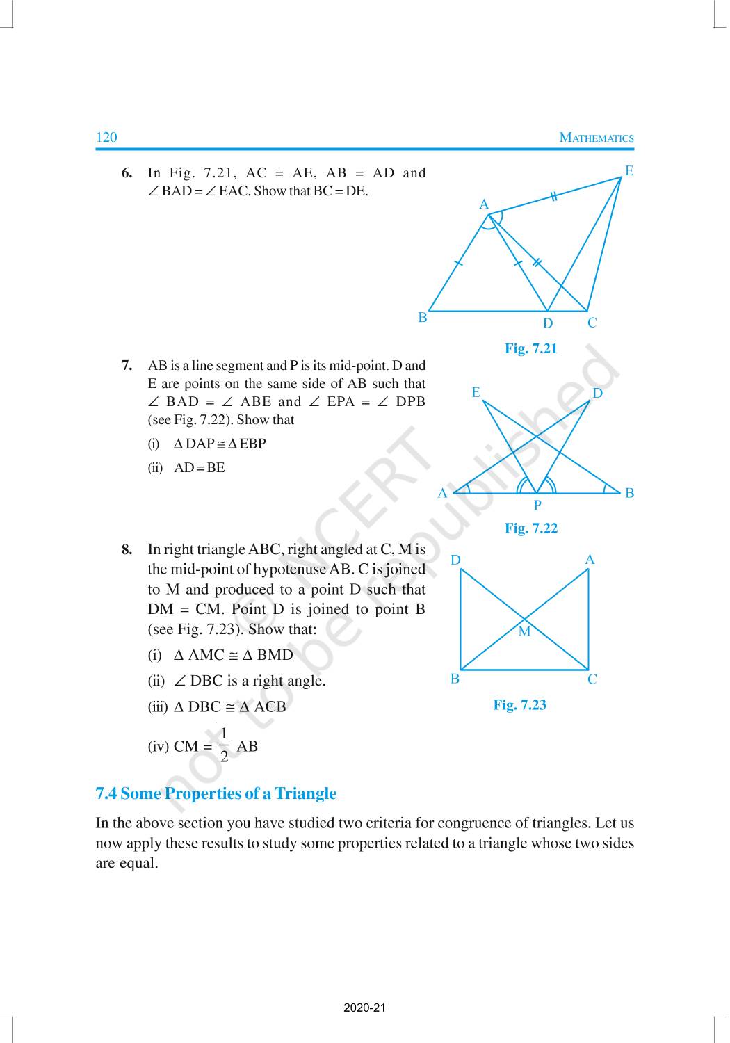 You have studied about triangles and their various properties in your earlier classes. You know that a closed figure formed by three intersecting lines is called a triangle. (‘Tri’ means ‘three’). A triangle has three sides, three angles and three vertices. In Chapter 6, you have also studied some properties of triangles. In this chapter, you will study in details about the congruence of triangles, rules of congruence, some more properties of triangles and inequalities in a triangle. You have already verified most of these properties in earlier classes. We will now prove some of them.