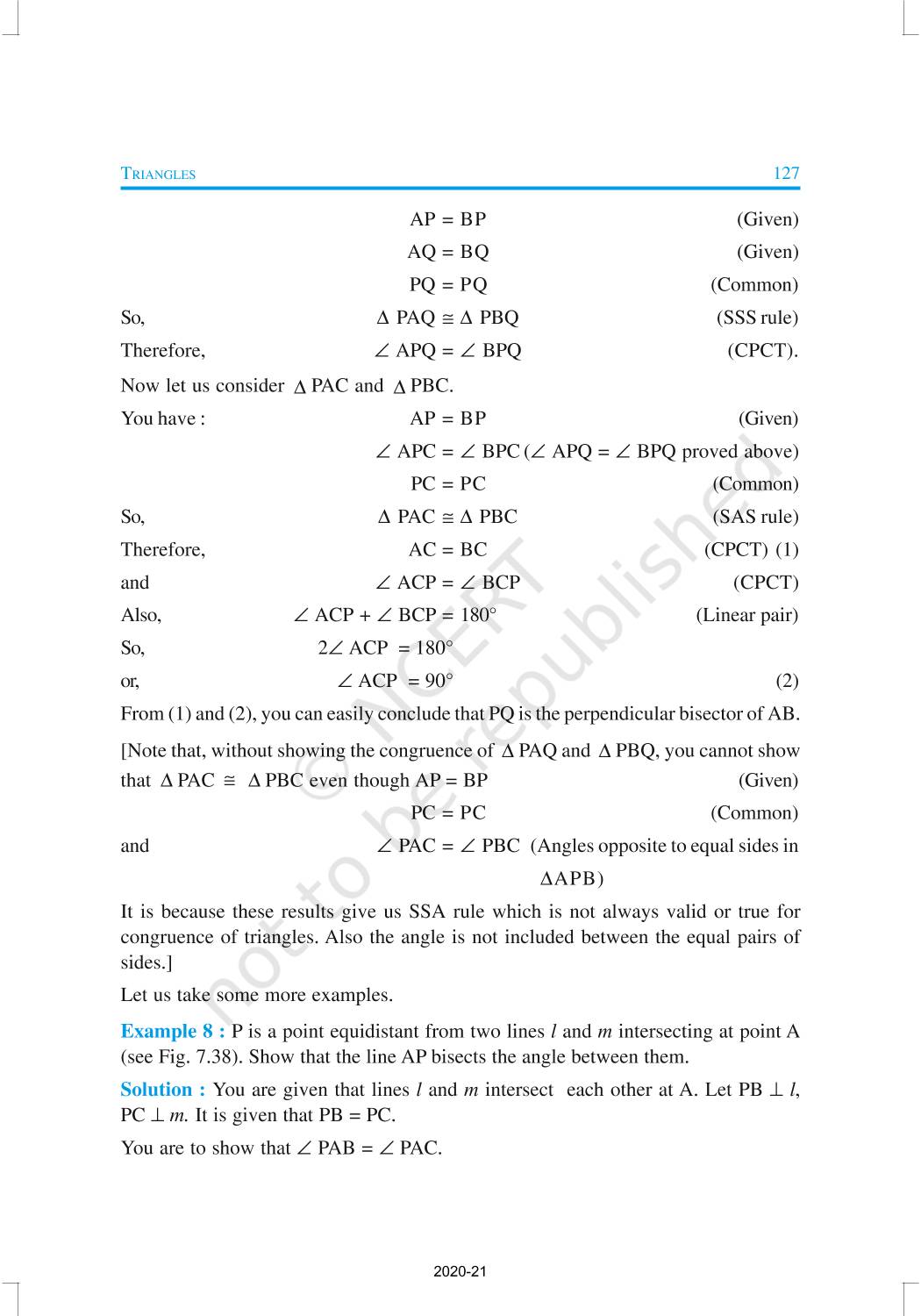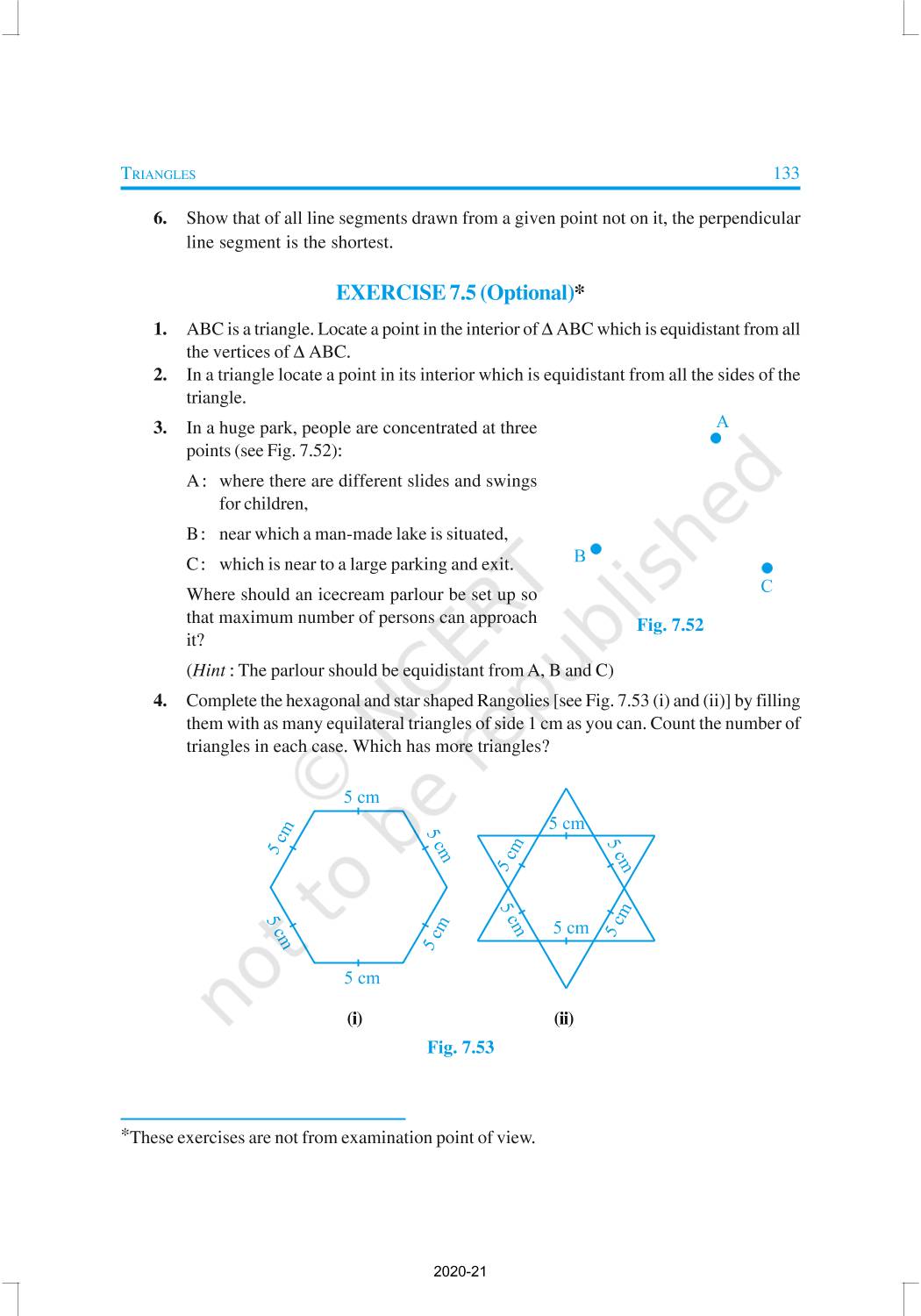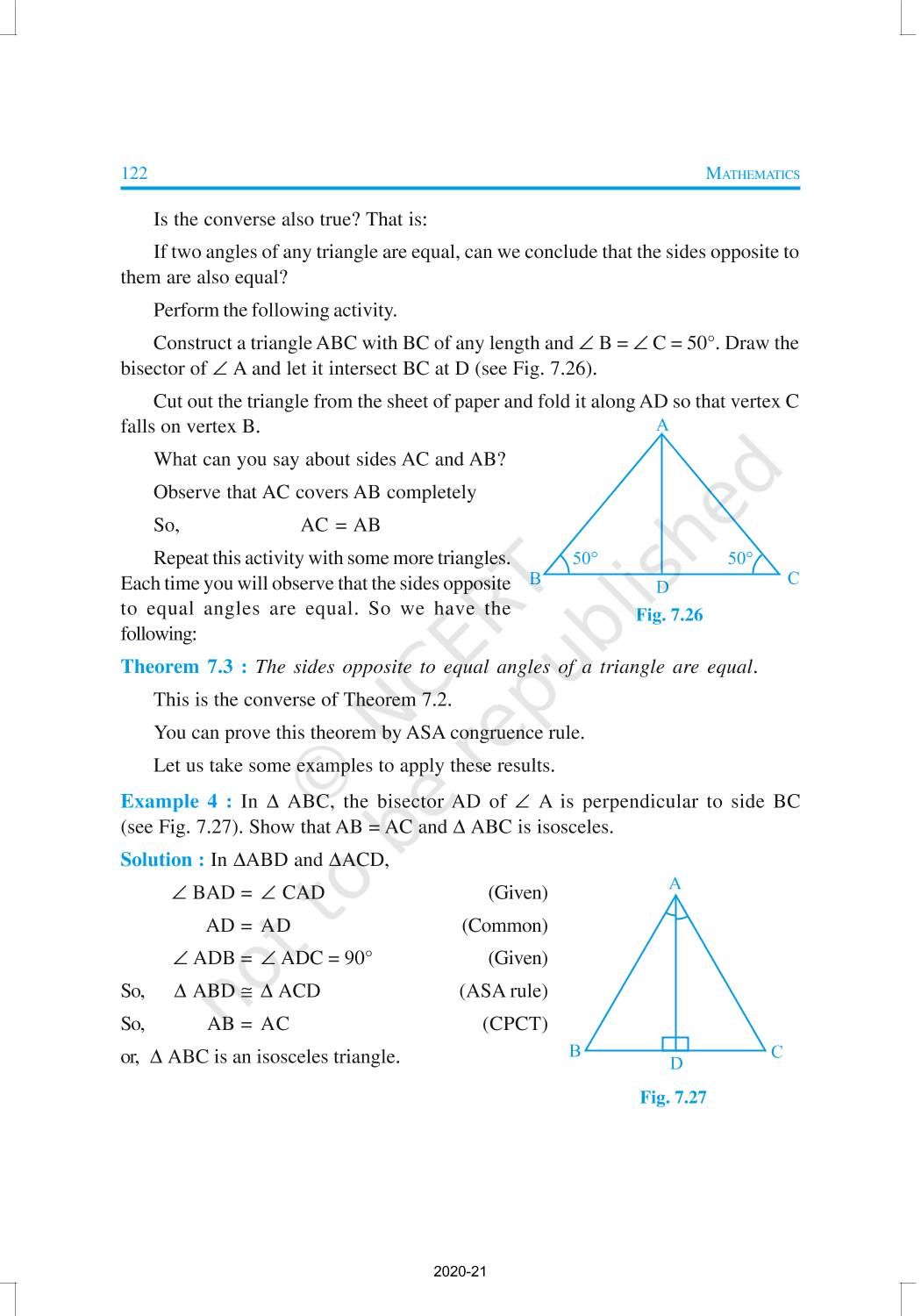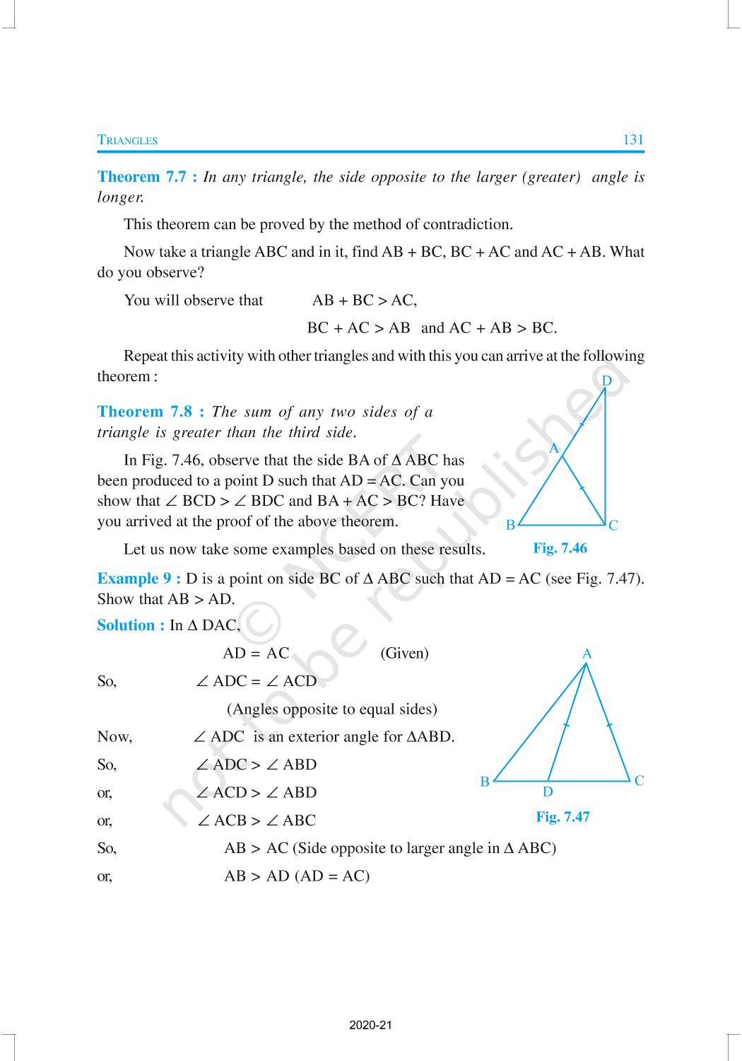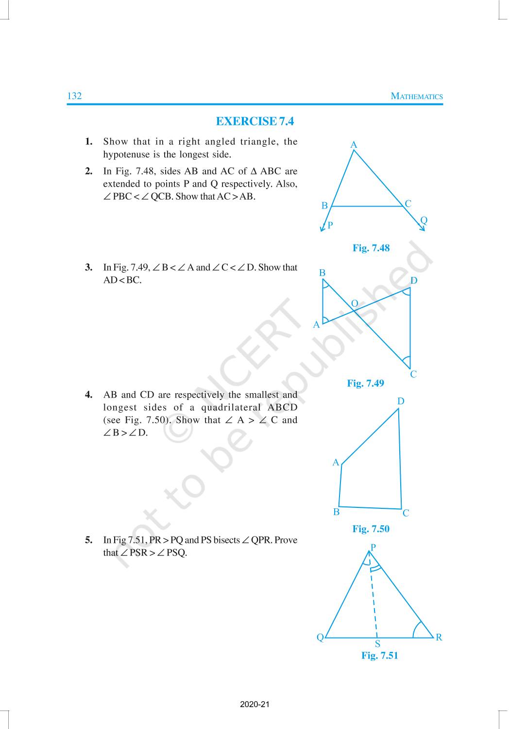 You have studied about triangles and their various properties in your earlier classes. You know that a closed figure formed by three intersecting lines is called a triangle. (‘Tri’ means ‘three’). A triangle has three sides, three angles and three vertices. In Chapter 6, you have also studied some properties of triangles. In this chapter, you will study in details about the congruence of triangles, rules of congruence, some more properties of triangles and inequalities in a triangle. You have already verified most of these properties in earlier classes. We will now prove some of them.