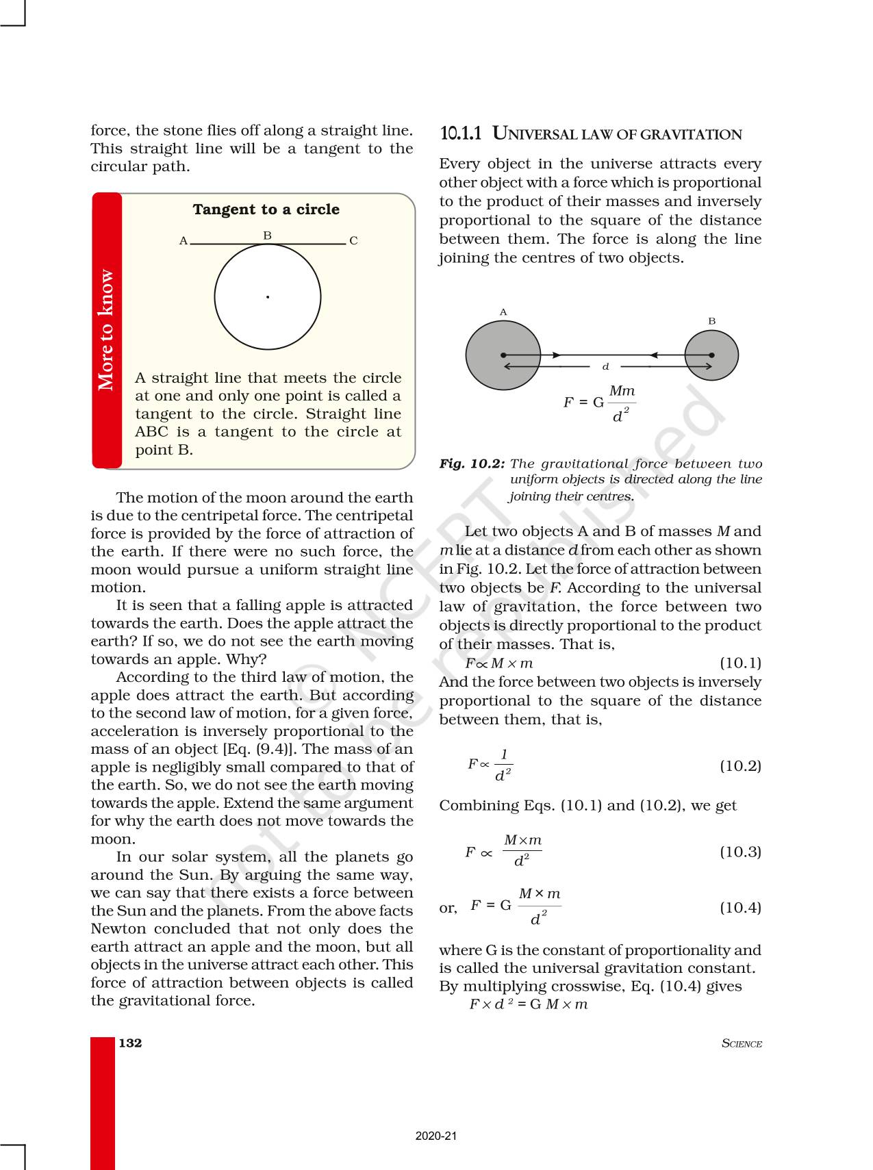 The law of gravitation states that the force of attraction between any two objects is proportional to the product of their masses and inversely proportional to the square of the distance between them. The law applies to objects anywhere in the universe. Such a law is said to be universal.