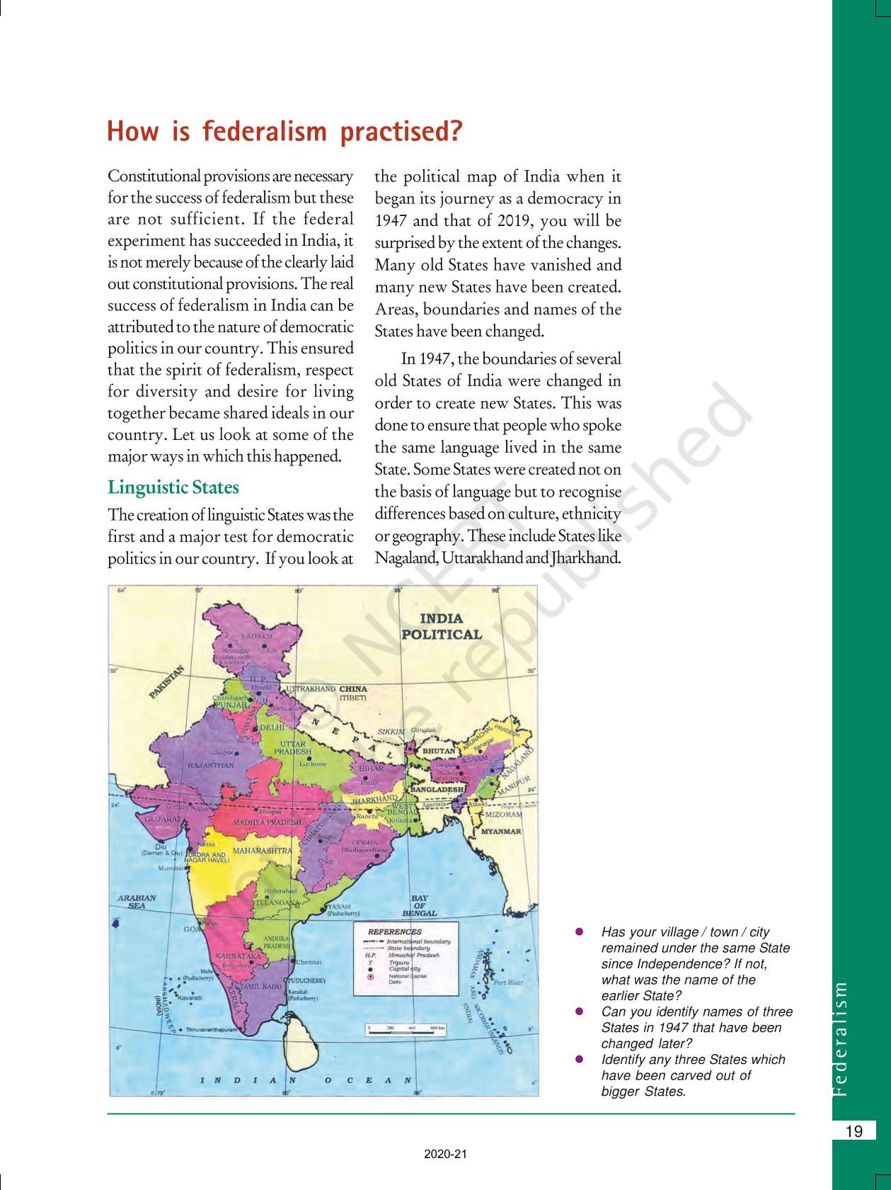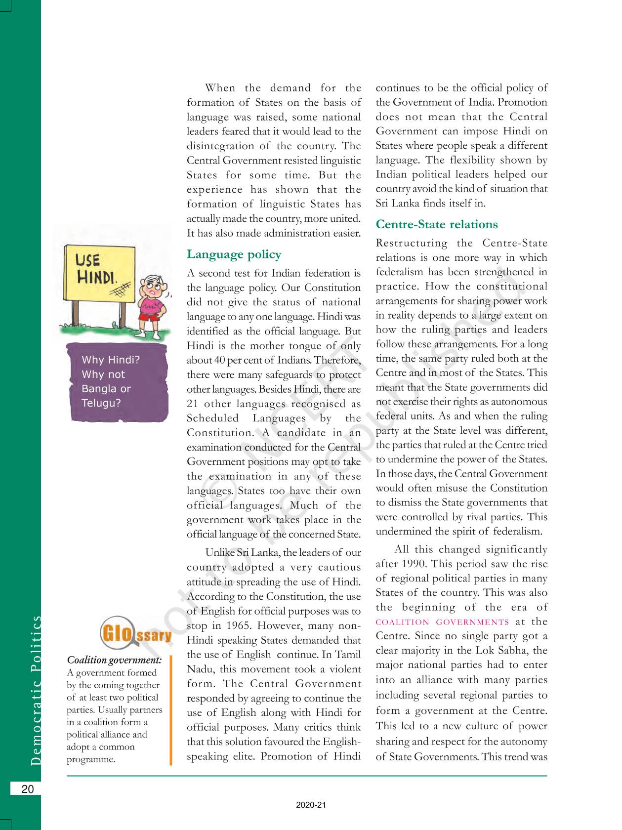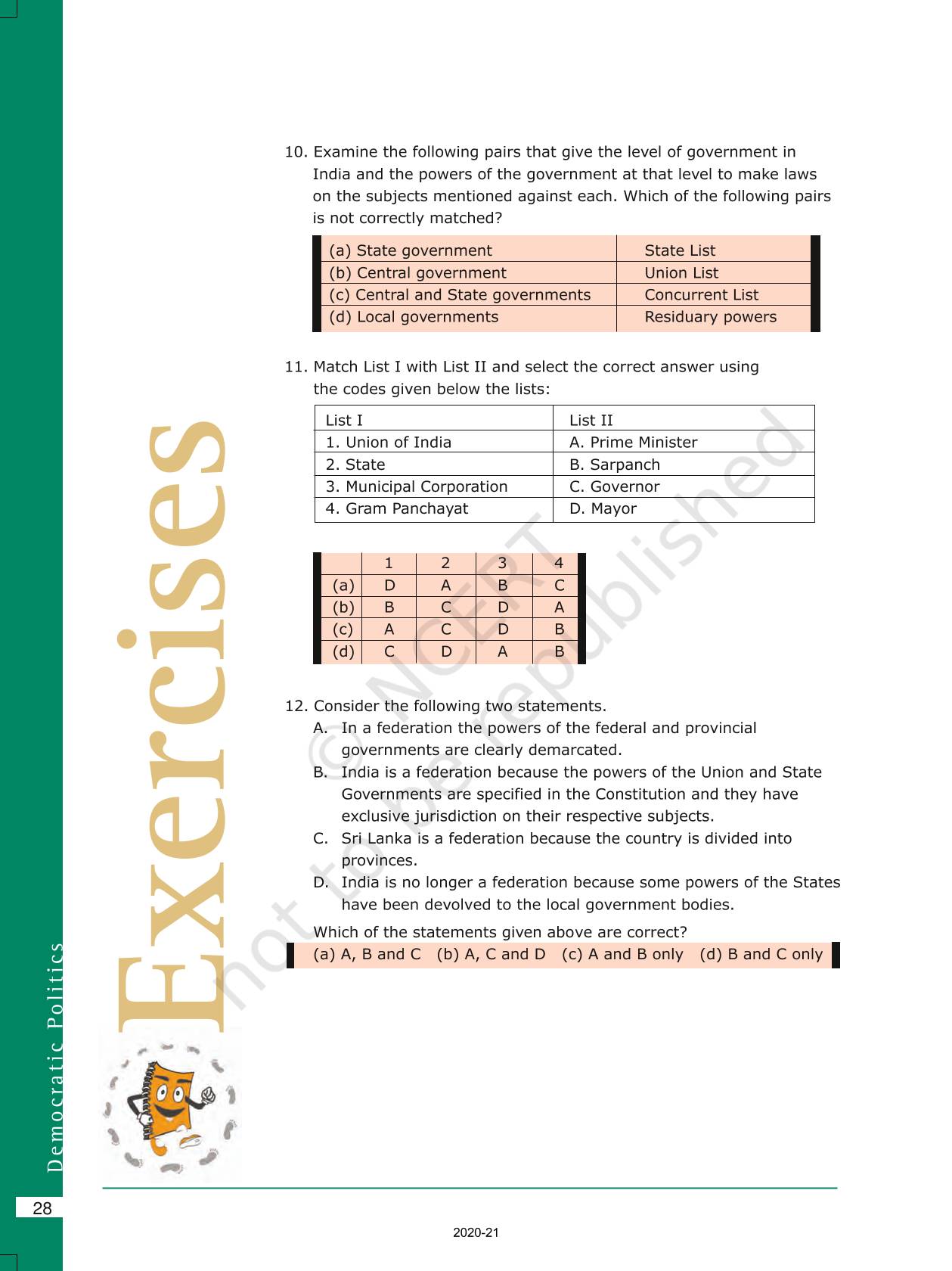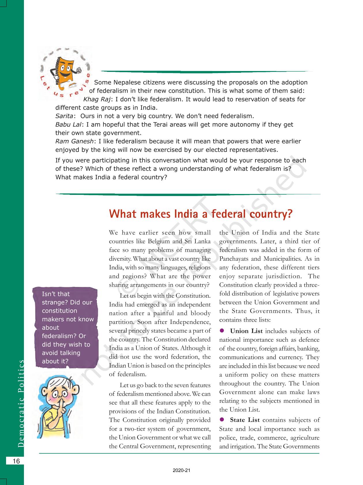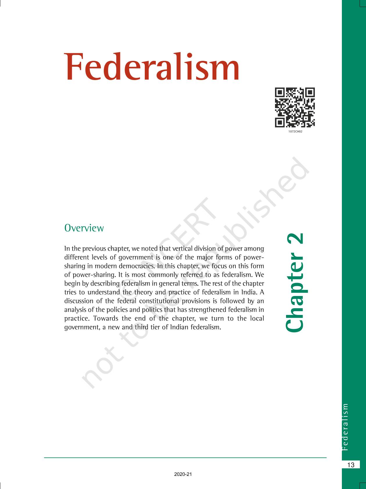 The time when students had limited options of choice for NCERT books wherein they need to go to the bookstore to buy the books but here at BeTrained.in, you can read the complete chapter-Federalism of NCERT books for class 10 Democratic Politics II. If CBSE class 10 students are finding it hard to search for NCERT Democratic Politics II books online, then this is the right place as we have provided the textbooks of NCERT chapter wise. These books are available on our website for free along with NCERT Solutions and Exemplar solutions.