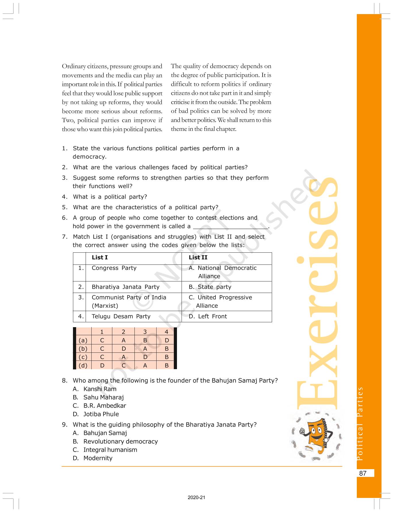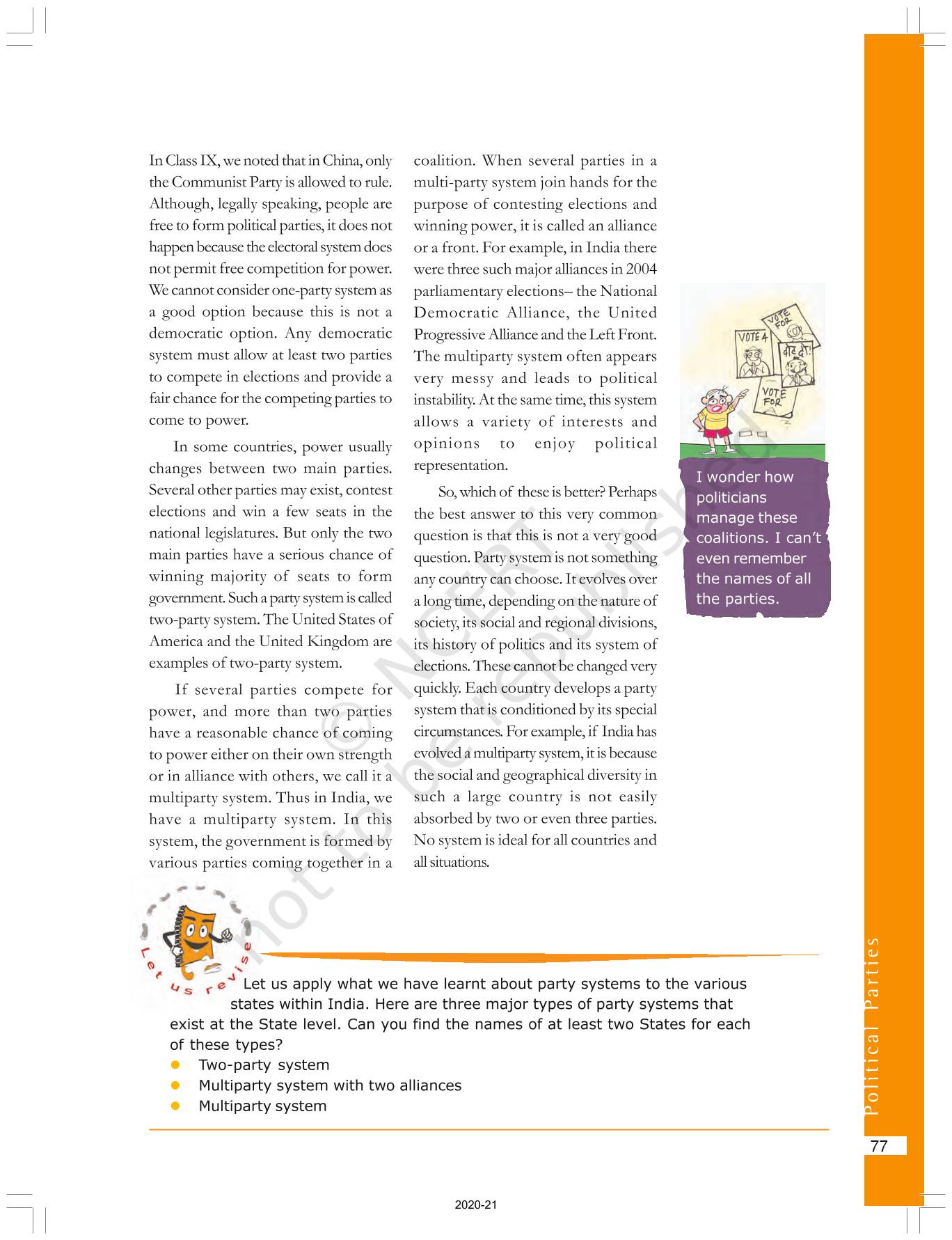 The time when students had limited options of choice for NCERT books wherein they need to go to the bookstore to buy the books but here at BeTrained.in, you can read the complete chapter-Political Parties of NCERT books for class 10 Democratic Politics II. If CBSE class 10 students are finding it hard to search for NCERT Democratic Politics II books online, then this is the right place as we have provided the textbooks of NCERT chapter wise. These books are available on our website for free along with NCERT Solutions and Exemplar solutions.