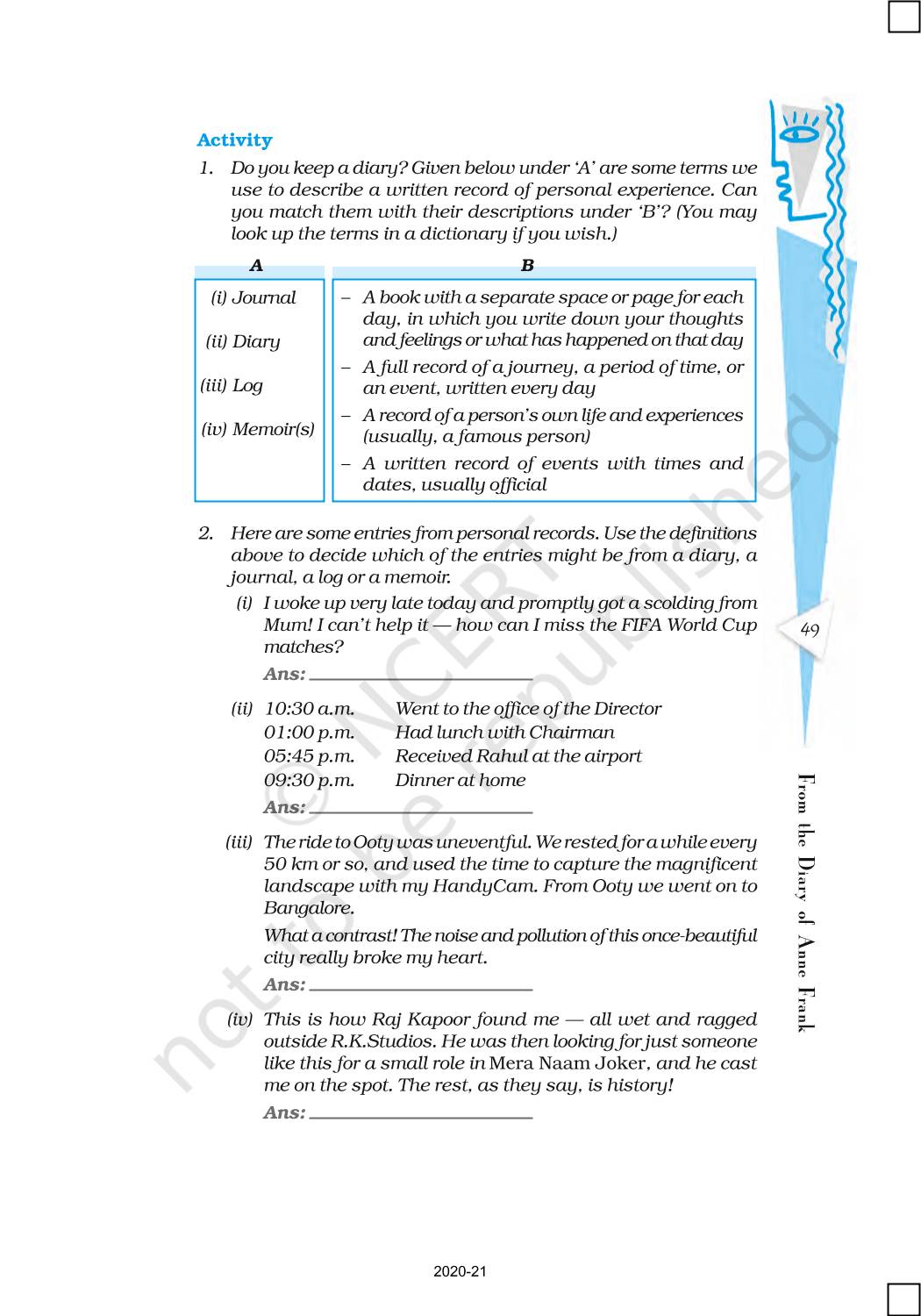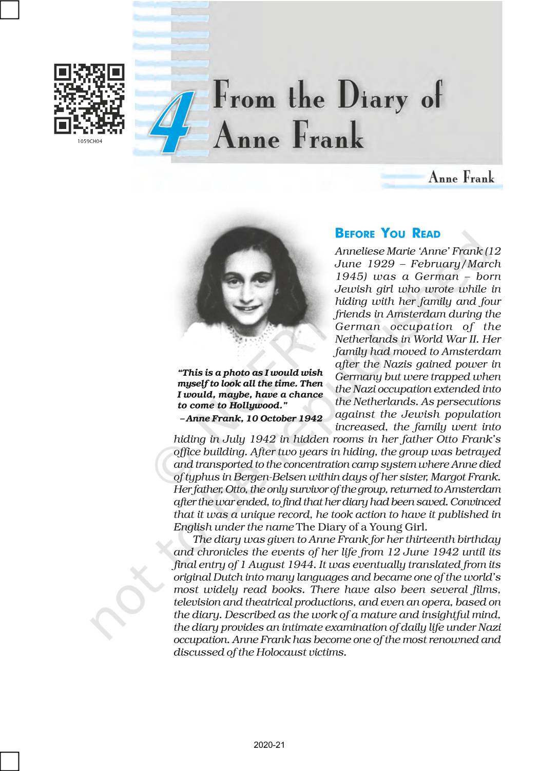 The time when students had limited options of choice for NCERT books wherein they need to go to the bookstore to buy the books but here at BeTrained.in, you can read the complete chapter-From The Diary Of Anne Frank of NCERT books for class 10 First Flight. If CBSE class 10 students are finding it hard to search for NCERT First Flight books online, then this is the right place as we have provided the textbooks of NCERT chapter wise. These books are available on our website for free along with NCERT Solutions and Exemplar solutions.