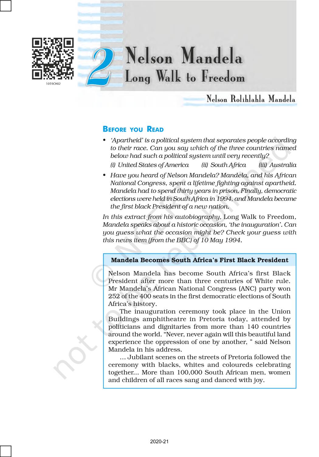 The time when students had limited options of choice for NCERT books wherein they need to go to the bookstore to buy the books but here at BeTrained.in, you can read the complete chapter-Nelson Mandela Long Walk To Freedom of NCERT books for class 10 First Flight. If CBSE class 10 students are finding it hard to search for NCERT First Flight books online, then this is the right place as we have provided the textbooks of NCERT chapter wise. These books are available on our website for free along with NCERT Solutions and Exemplar solutions.