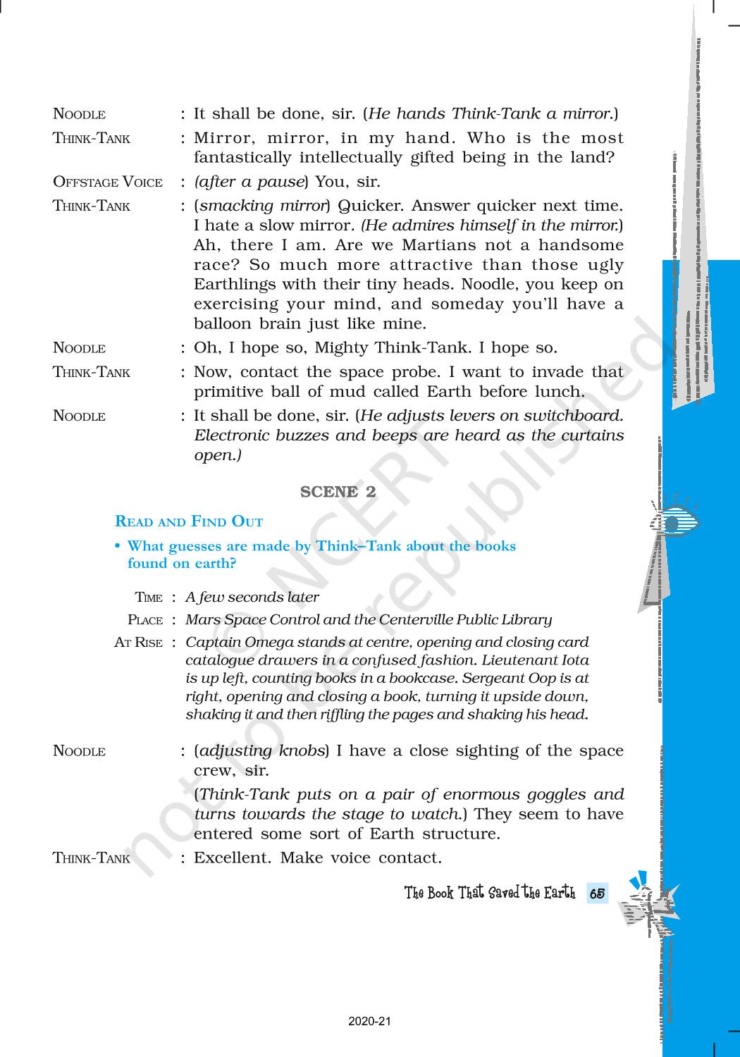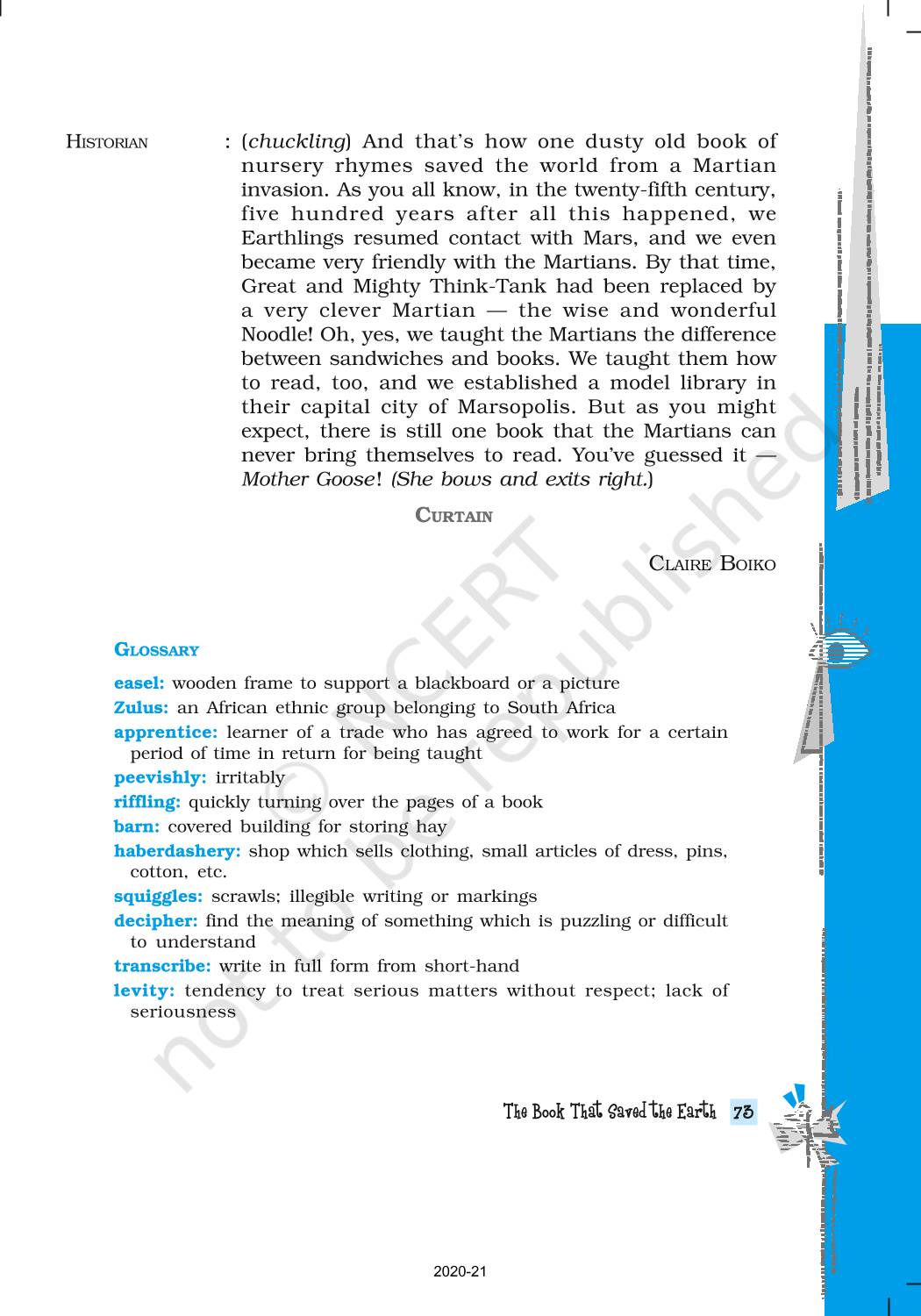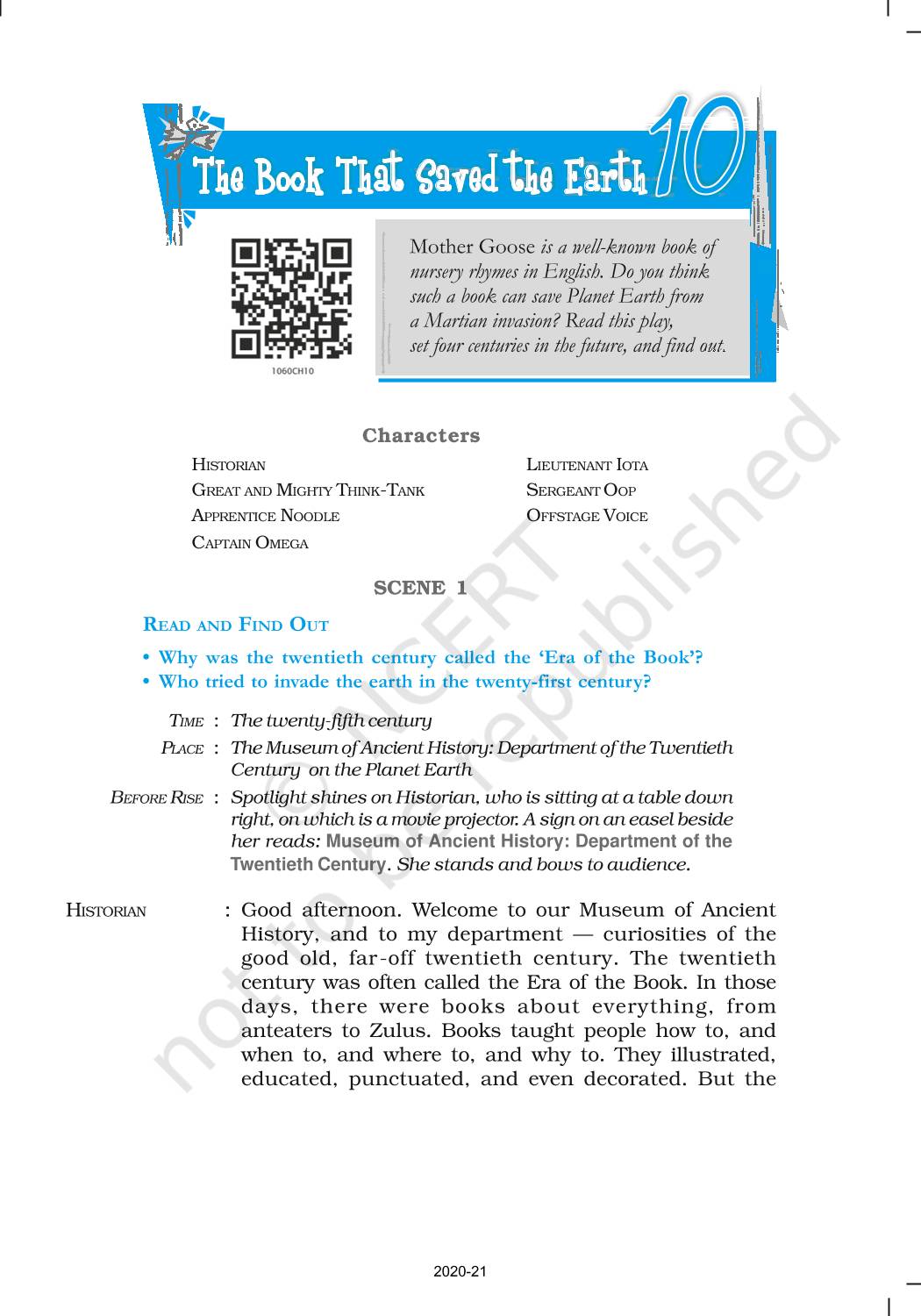 The time when students had limited options of choice for NCERT books wherein they need to go to the bookstore to buy the books but here at BeTrained.in, you can read the complete chapter-The Book That Saved The Earth of NCERT books for class 10 Footprints Without Feet. If CBSE class 10 students are finding it hard to search for NCERT Footprints Without Feet books online, then this is the right place as we have provided the textbooks of NCERT chapter wise. These books are available on our website for free along with NCERT Solutions and Exemplar solutions.