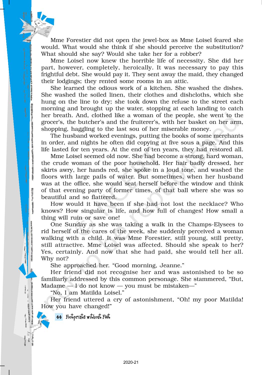 The time when students had limited options of choice for NCERT books wherein they need to go to the bookstore to buy the books but here at BeTrained.in, you can read the complete chapter-The Necklace of NCERT books for class 10 Footprints Without Feet. If CBSE class 10 students are finding it hard to search for NCERT Footprints Without Feet books online, then this is the right place as we have provided the textbooks of NCERT chapter wise. These books are available on our website for free along with NCERT Solutions and Exemplar solutions.