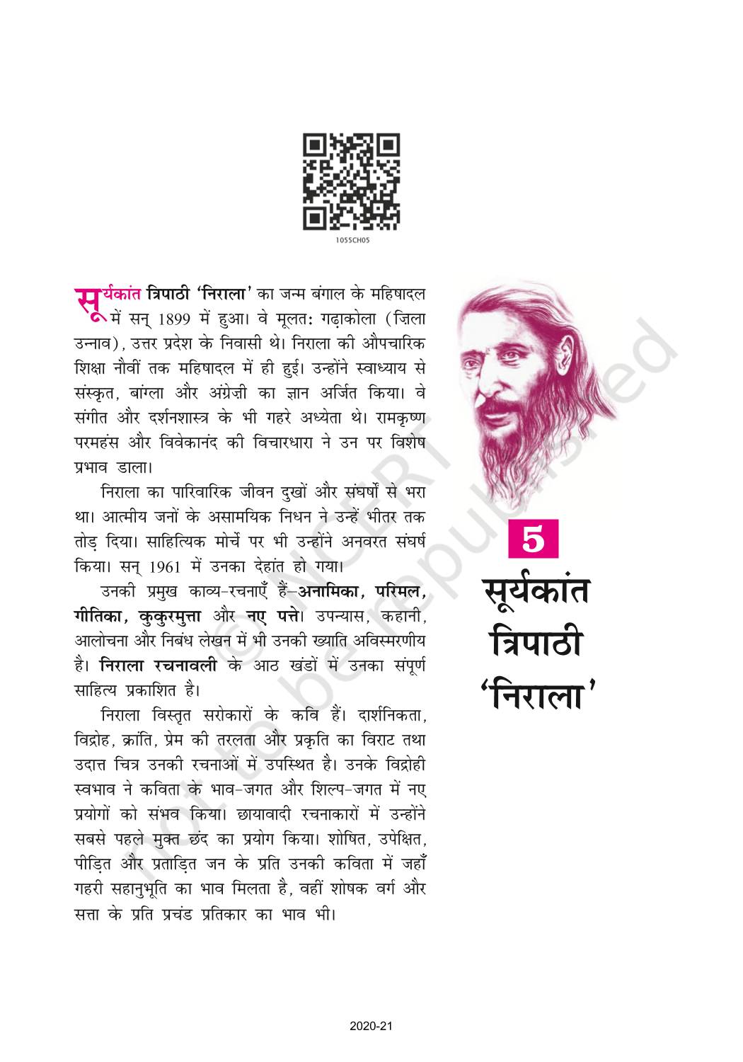 The time when students had limited options of choice for NCERT books wherein they need to go to the bookstore to buy the books but here at BeTrained.in, you can read the complete chapter-Suryakant Tripathi Nirala of NCERT books for class 10 Hindi Kshitij Part 2. If CBSE class 10 students are finding it hard to search for NCERT Hindi Kshitij Part 2 books online, then this is the right place as we have provided the textbooks of NCERT chapter wise. These books are available on our website for free along with NCERT Solutions and Exemplar solutions.