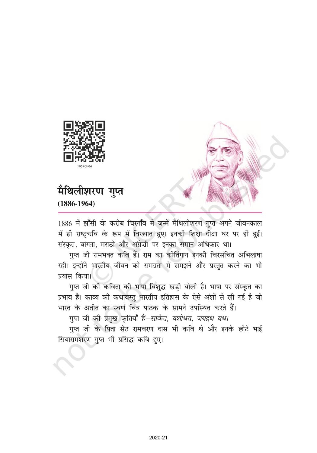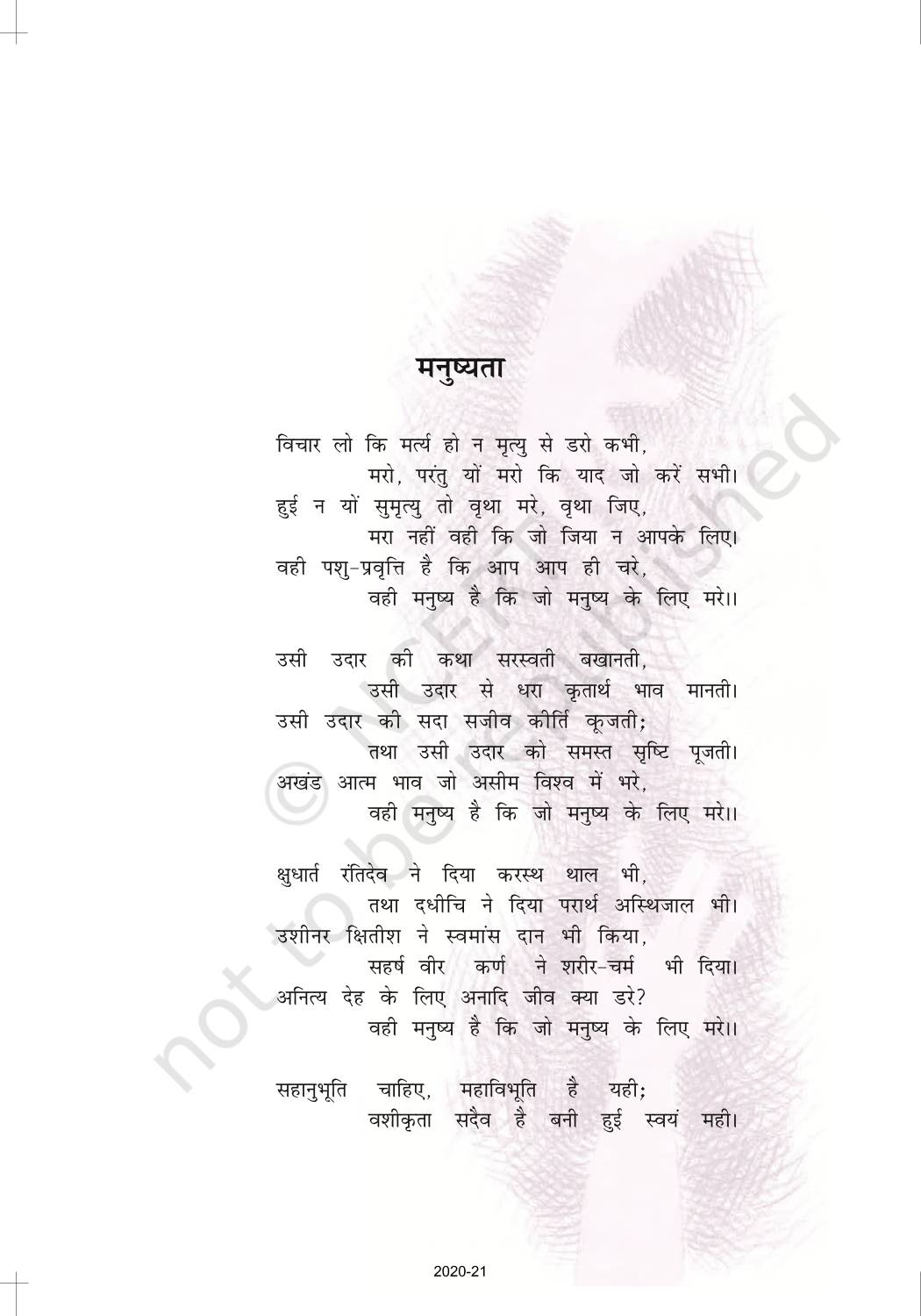 The time when students had limited options of choice for NCERT books wherein they need to go to the bookstore to buy the books but here at BeTrained.in, you can read the complete chapter-Mathilisharan Gupt Manushyata of NCERT books for class 10 Hindi Sparsh Part 2. If CBSE class 10 students are finding it hard to search for NCERT Hindi Sparsh Part 2 books online, then this is the right place as we have provided the textbooks of NCERT chapter wise. These books are available on our website for free along with NCERT Solutions and Exemplar solutions.
