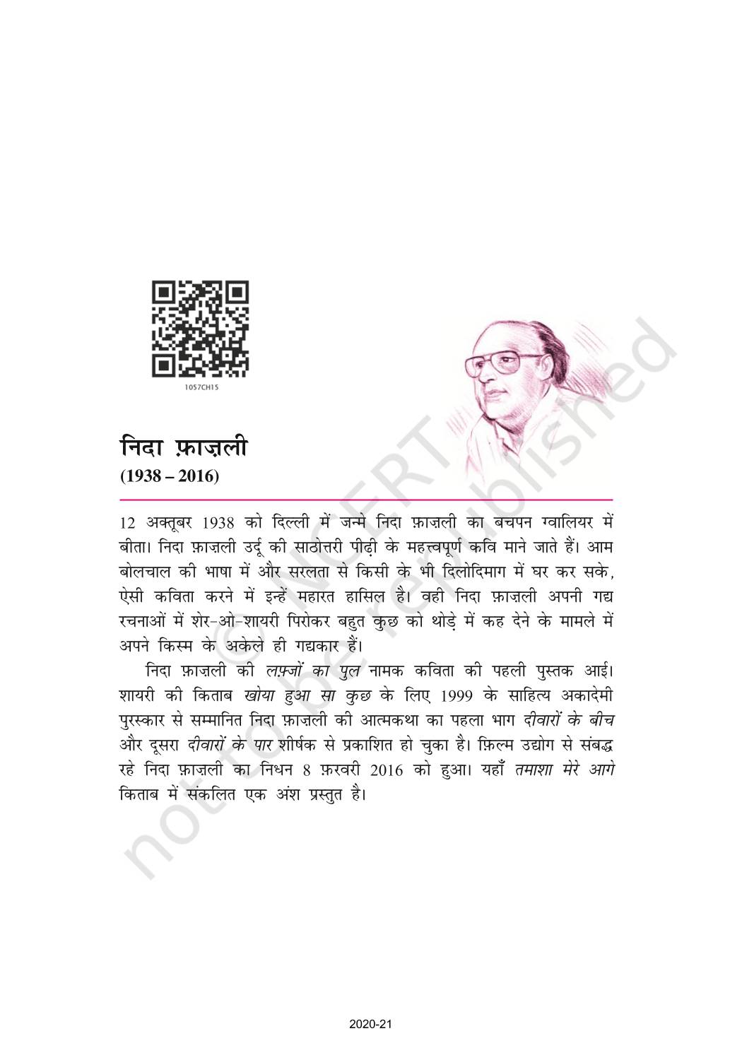 The time when students had limited options of choice for NCERT books wherein they need to go to the bookstore to buy the books but here at BeTrained.in, you can read the complete chapter-Nida Phazali Ab Kahan Doosron Ke Dukh Se Dukhi Hone Wale of NCERT books for class 10 Hindi Sparsh Part 2. If CBSE class 10 students are finding it hard to search for NCERT Hindi Sparsh Part 2 books online, then this is the right place as we have provided the textbooks of NCERT chapter wise. These books are available on our website for free along with NCERT Solutions and Exemplar solutions.