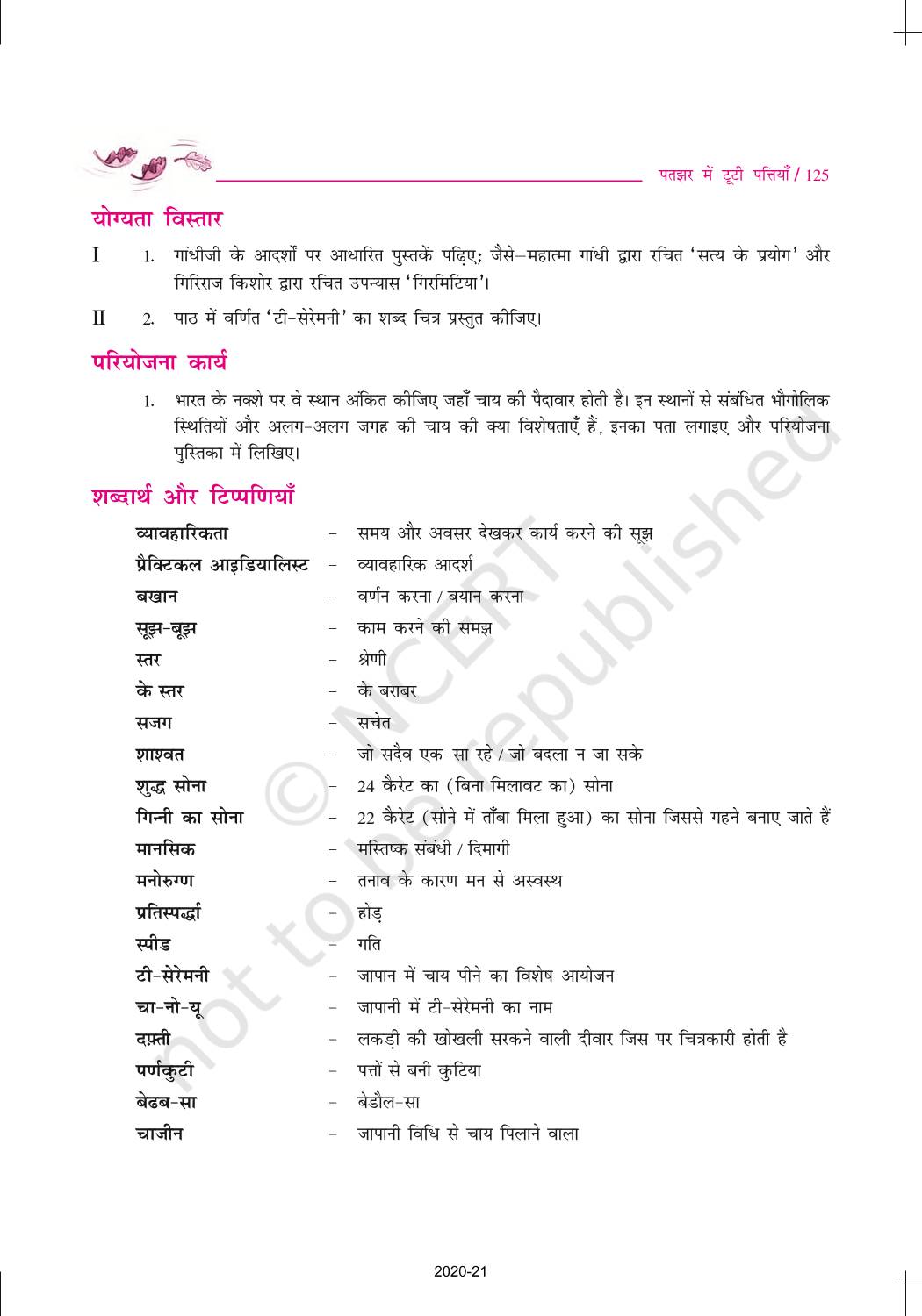 The time when students had limited options of choice for NCERT books wherein they need to go to the bookstore to buy the books but here at BeTrained.in, you can read the complete chapter-Ravindra Kelekar Patjhar Ki Tooti Pattiyan of NCERT books for class 10 Hindi Sparsh Part 2. If CBSE class 10 students are finding it hard to search for NCERT Hindi Sparsh Part 2 books online, then this is the right place as we have provided the textbooks of NCERT chapter wise. These books are available on our website for free along with NCERT Solutions and Exemplar solutions.