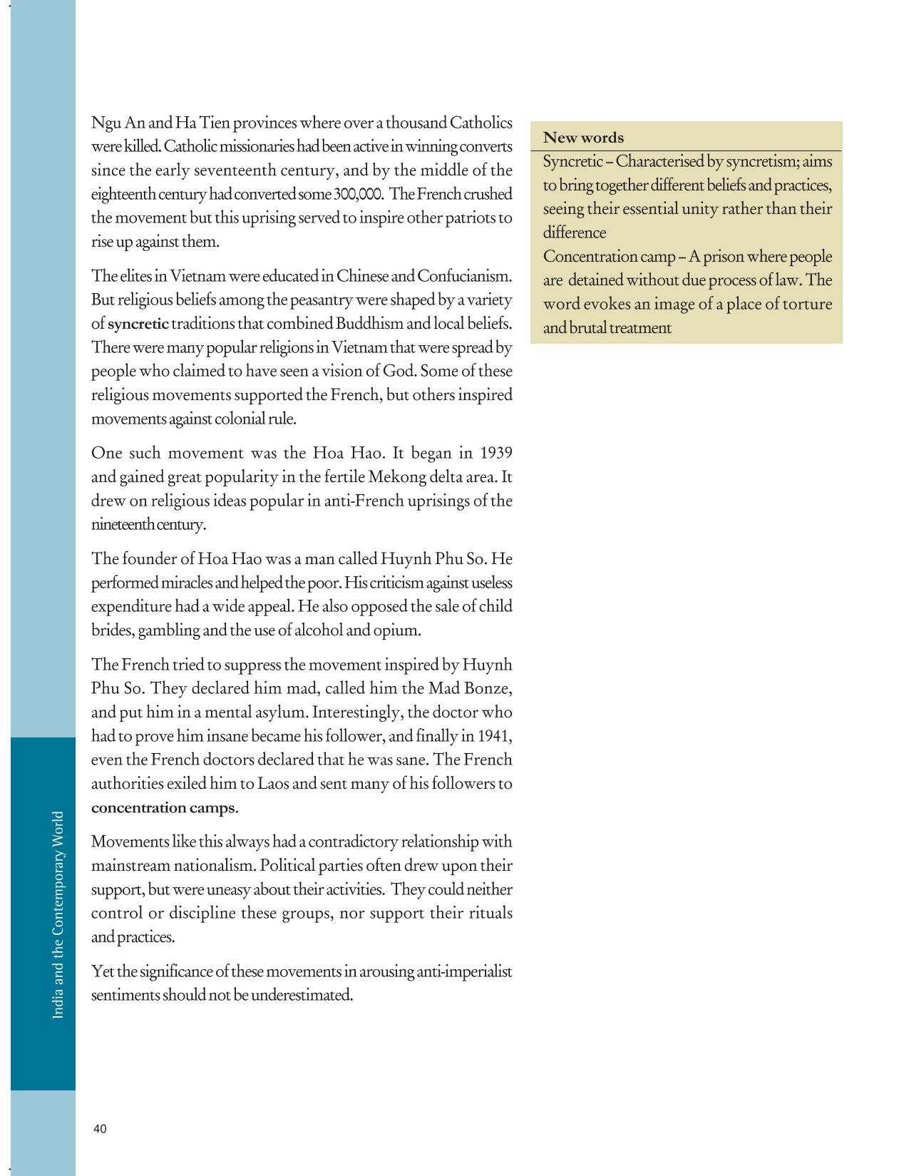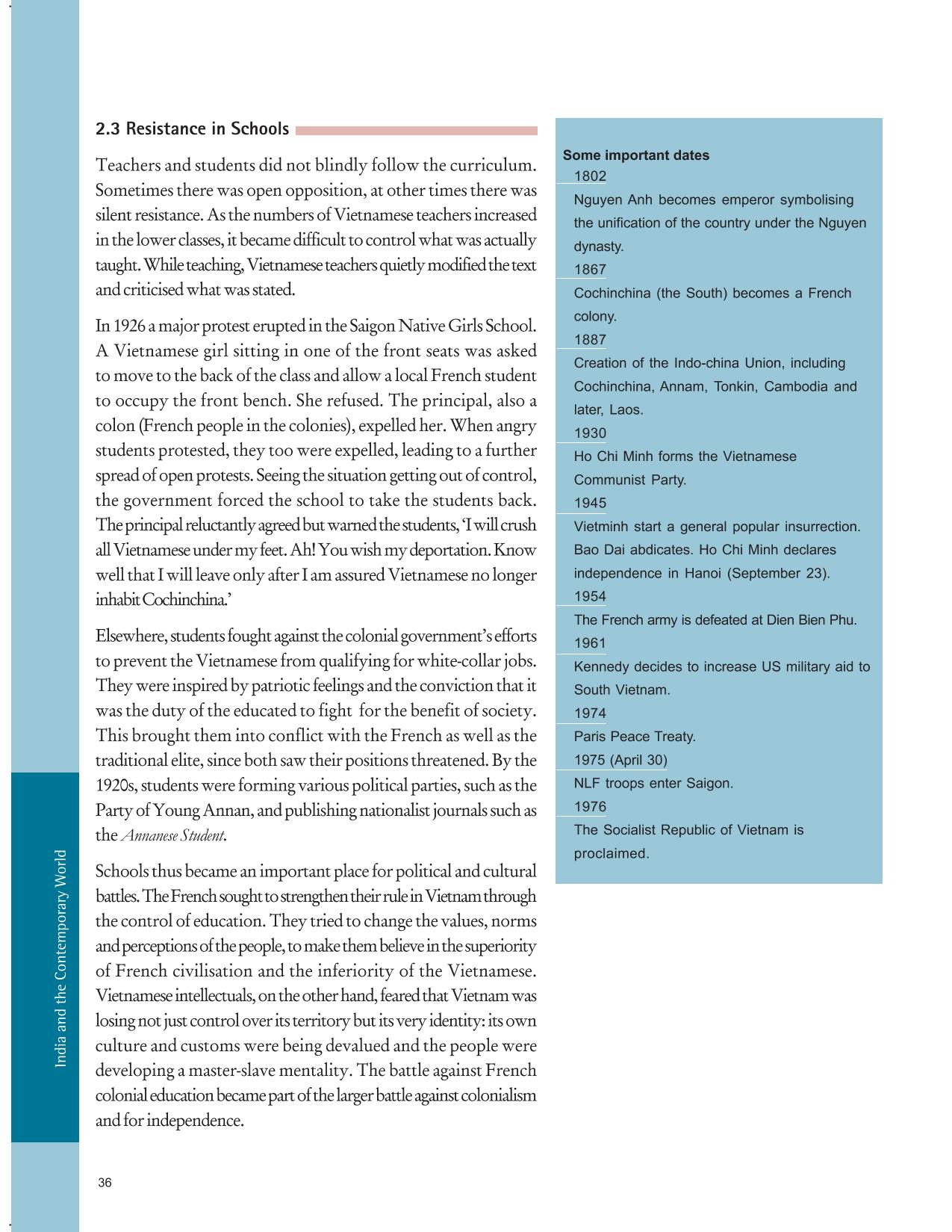 The time when students had limited options of choice for NCERT books wherein they need to go to the bookstore to buy the books but here at BeTrained.in, you can read the complete chapter-The Nationalist Movement In Indo China of NCERT books for class 10 India And The Contemporary World II. If CBSE class 10 students are finding it hard to search for NCERT India And The Contemporary World II books online, then this is the right place as we have provided the textbooks of NCERT chapter wise. These books are available on our website for free along with NCERT Solutions and Exemplar solutions.