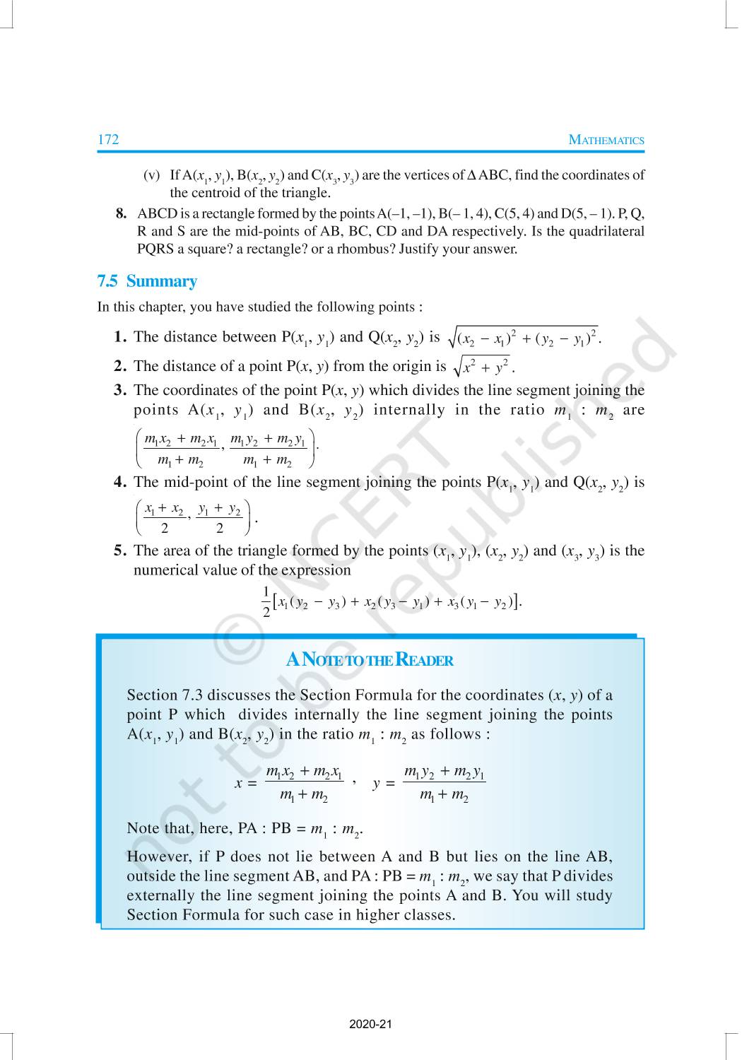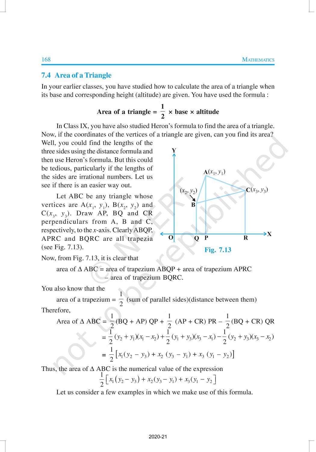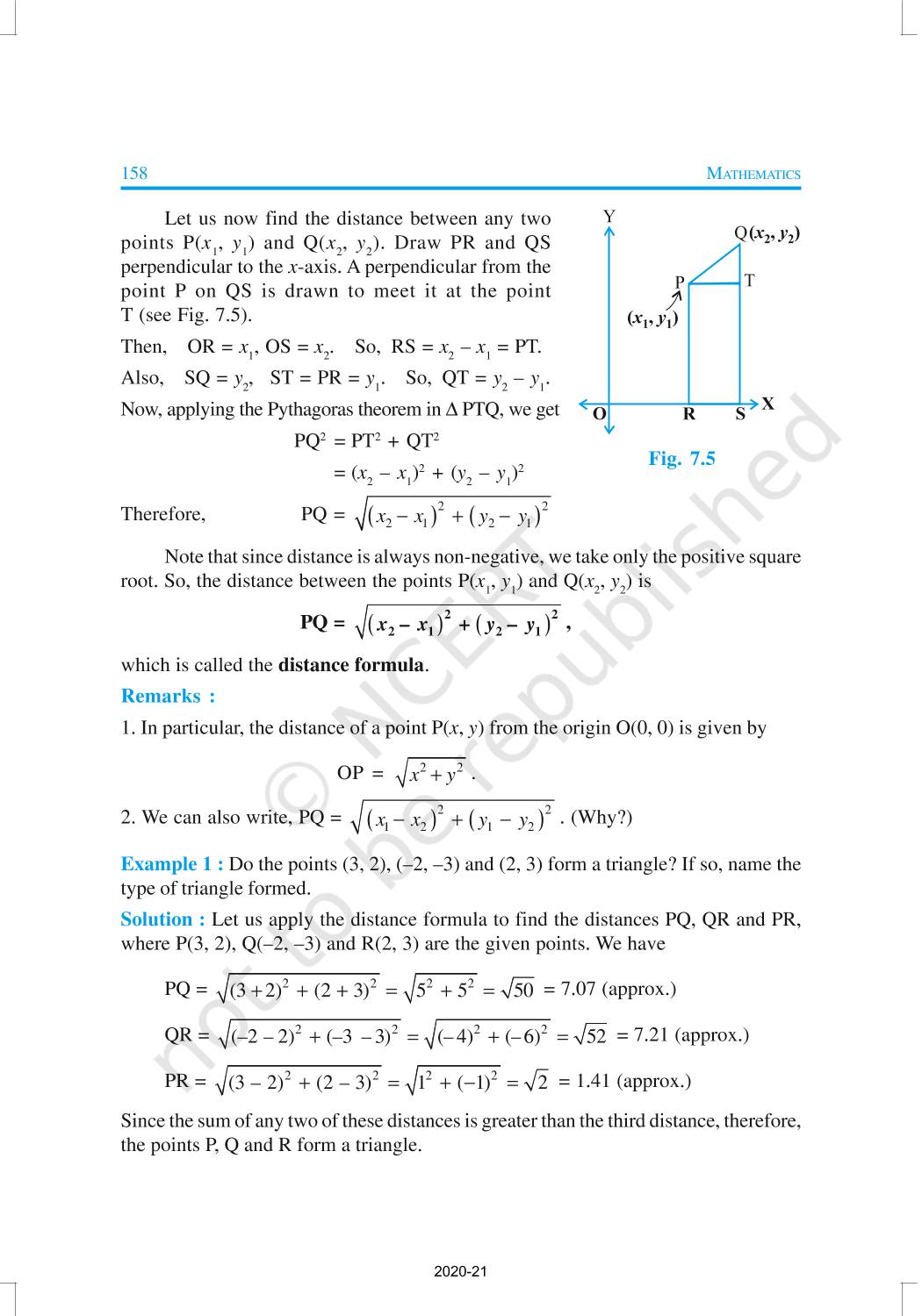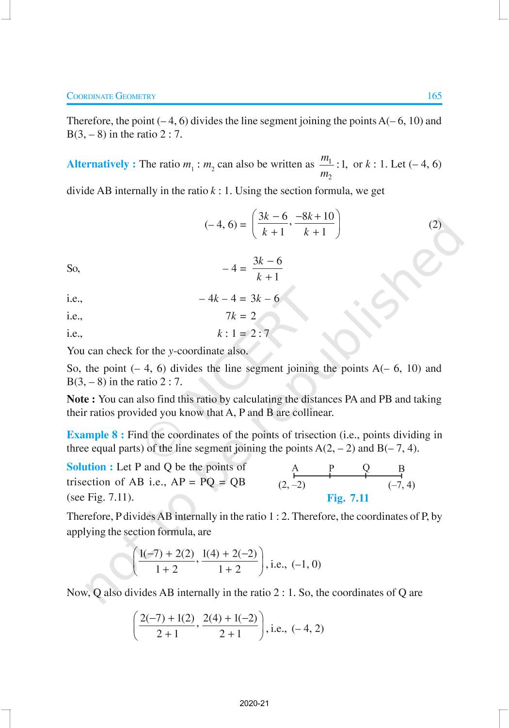 In this chapter, you will learn how to find the distance between the two points whose coordinates are given, and to find the area of the triangle formed by three given points. You will also study how to find the coordinates of the point which divides a line segment joining two given points in a given ratio.