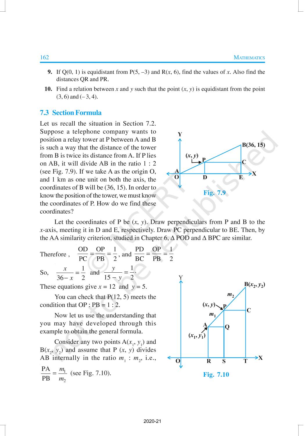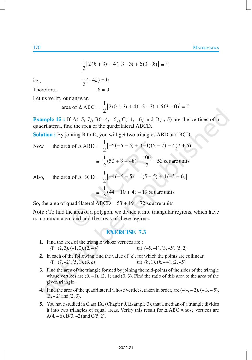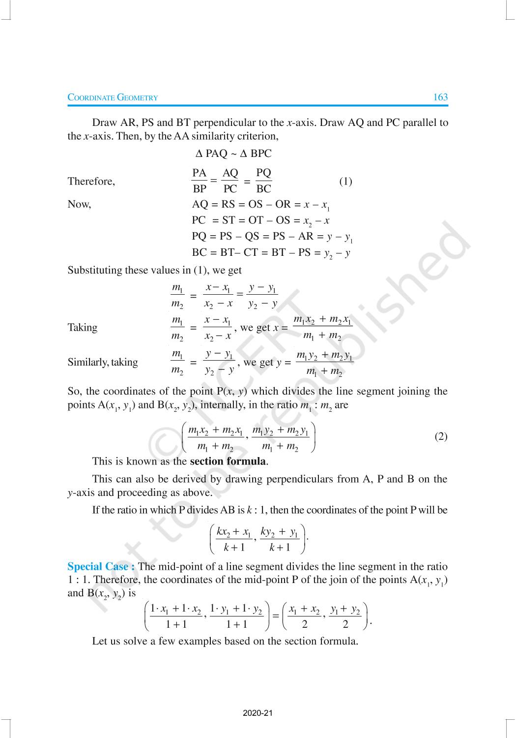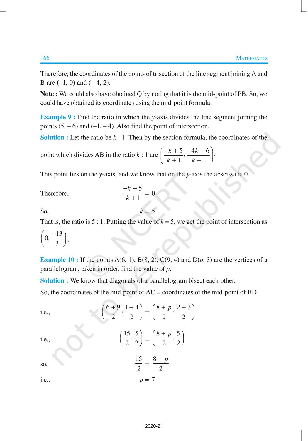 In this chapter, you will learn how to find the distance between the two points whose coordinates are given, and to find the area of the triangle formed by three given points. You will also study how to find the coordinates of the point which divides a line segment joining two given points in a given ratio.