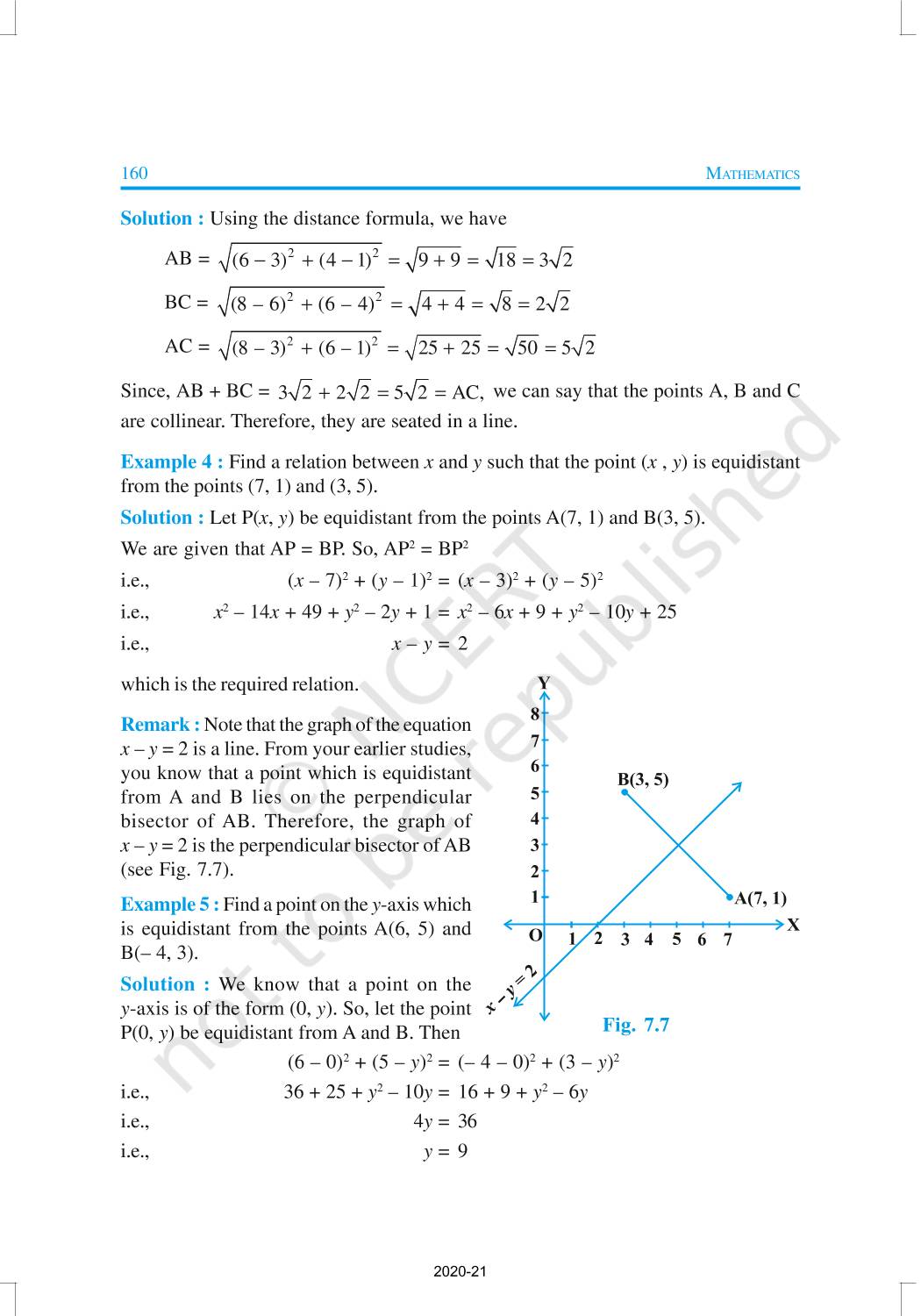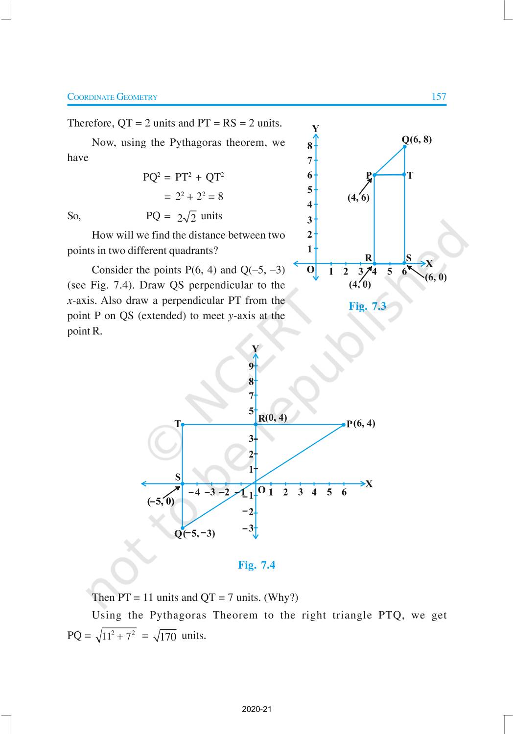 In Class IX, you have studied that to locate the position of a point on a plane, we require a pair of coordinate axes. The distance of a point from the y-axis is called its x-coordinate, or abscissa. The distance of a point from the x-axis is called its y-coordinate, or ordinate. The coordinates of a point on the x-axis are of the form (x, 0), and of a point on the y-axis are of the form (0, y).