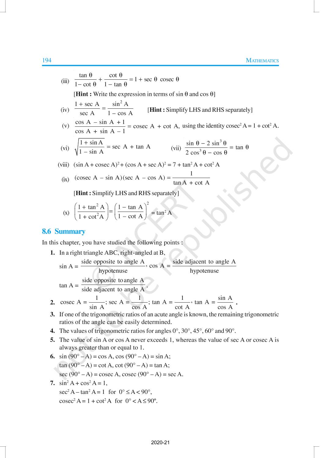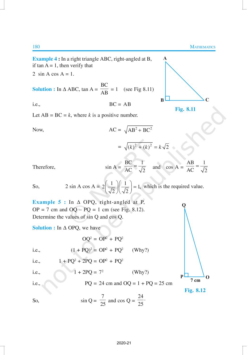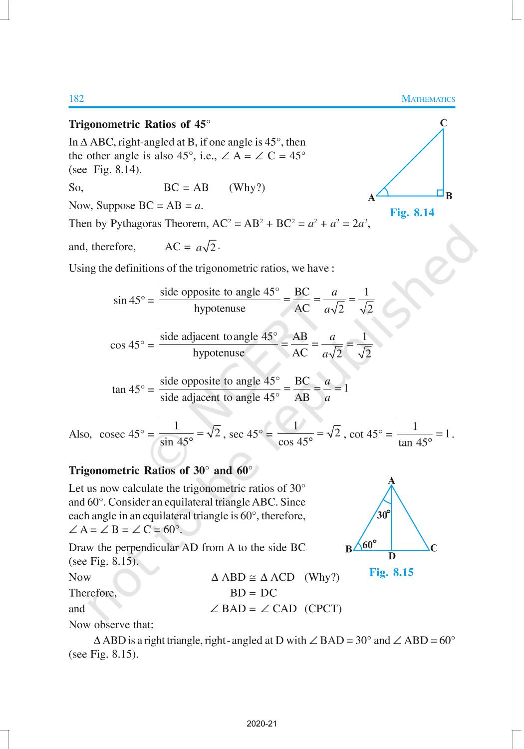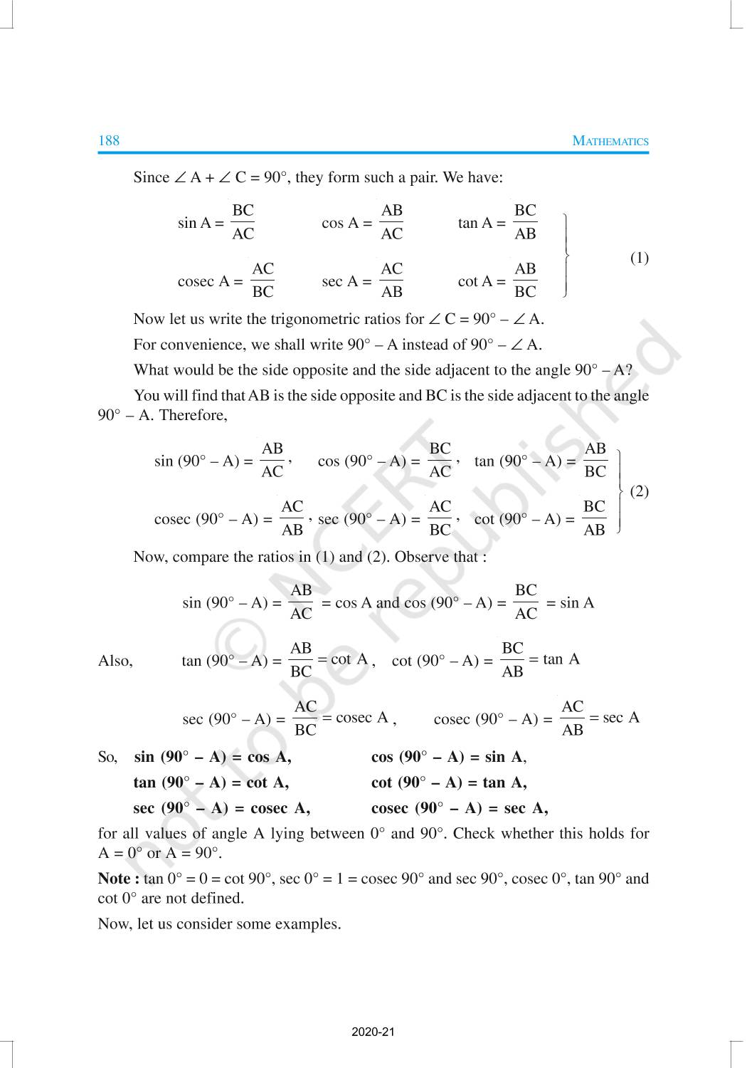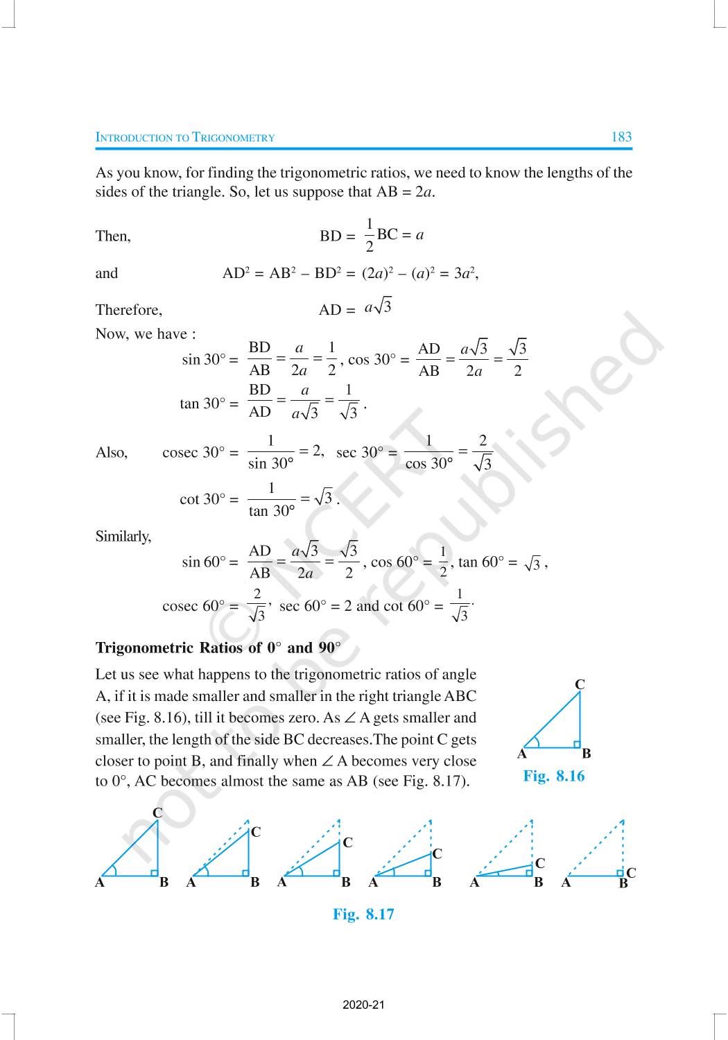 In this chapter, we will study some ratios of the sides of a right triangle with respect to its acute angles, called trigonometric ratios of the angle. Trigonometric Ratios of Some Specific Angles, Trigonometric Ratios of Complementary Angles, Trigonometric Identities are discussed in this chapter.