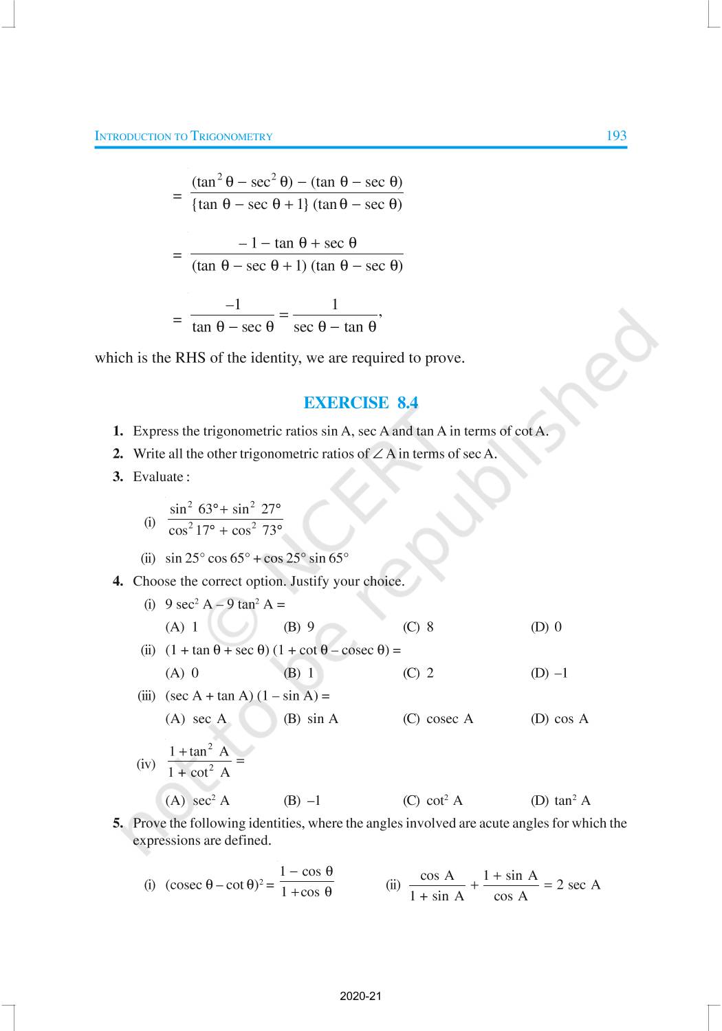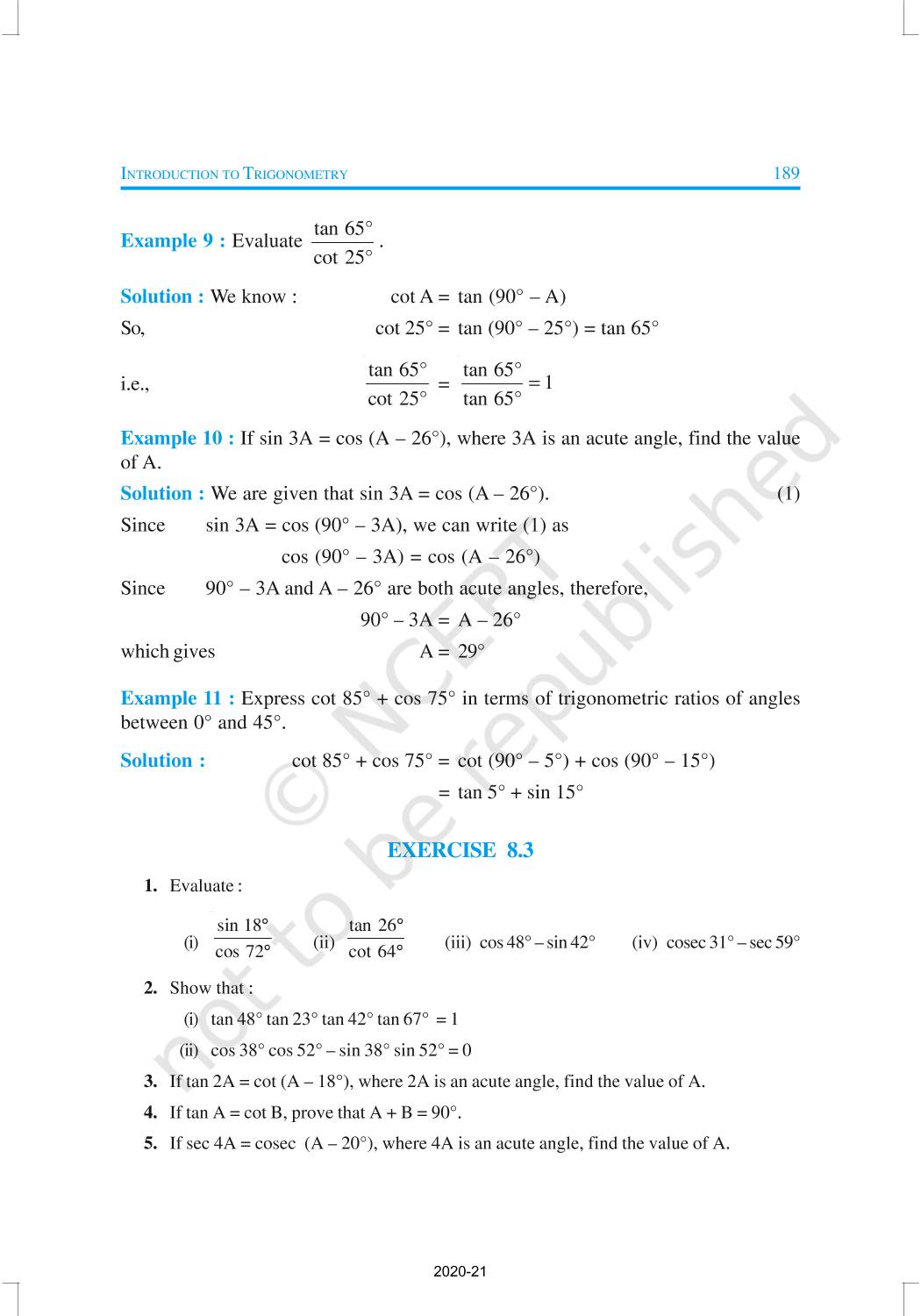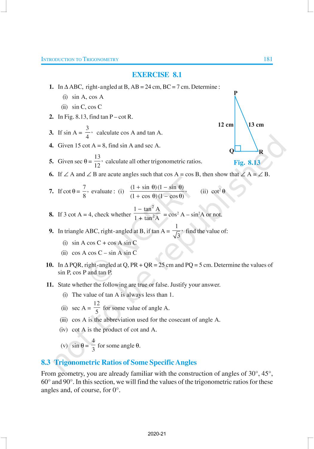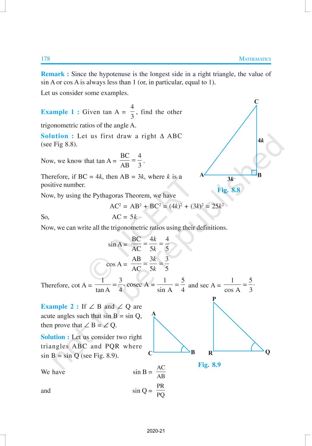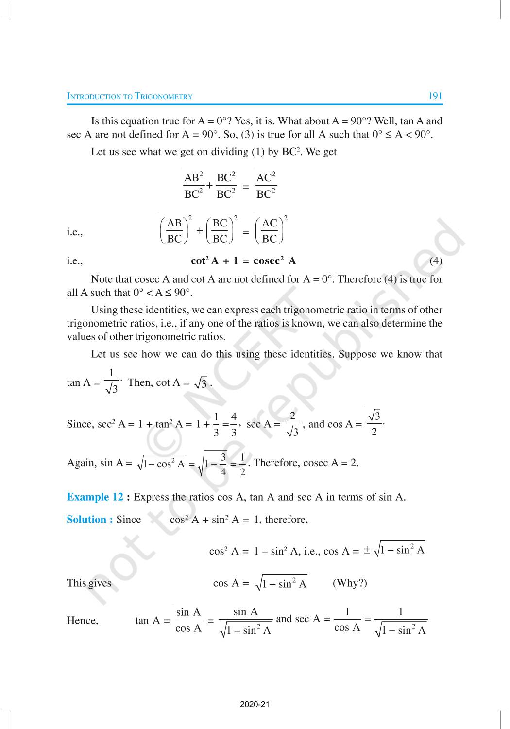 In this chapter, we will study some ratios of the sides of a right triangle with respect to its acute angles, called trigonometric ratios of the angle. Trigonometric Ratios of Some Specific Angles, Trigonometric Ratios of Complementary Angles, Trigonometric Identities are discussed in this chapter.
