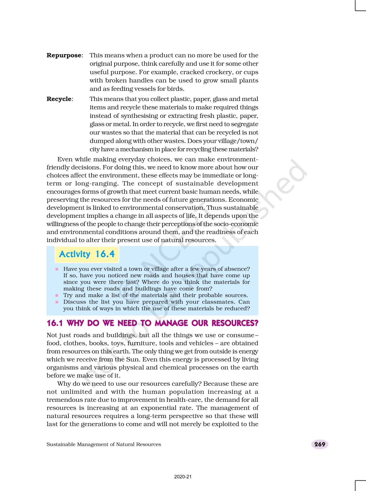 Our resources like forests, wildlife, water, coal and petroleum need to be used in a sustainable manner.