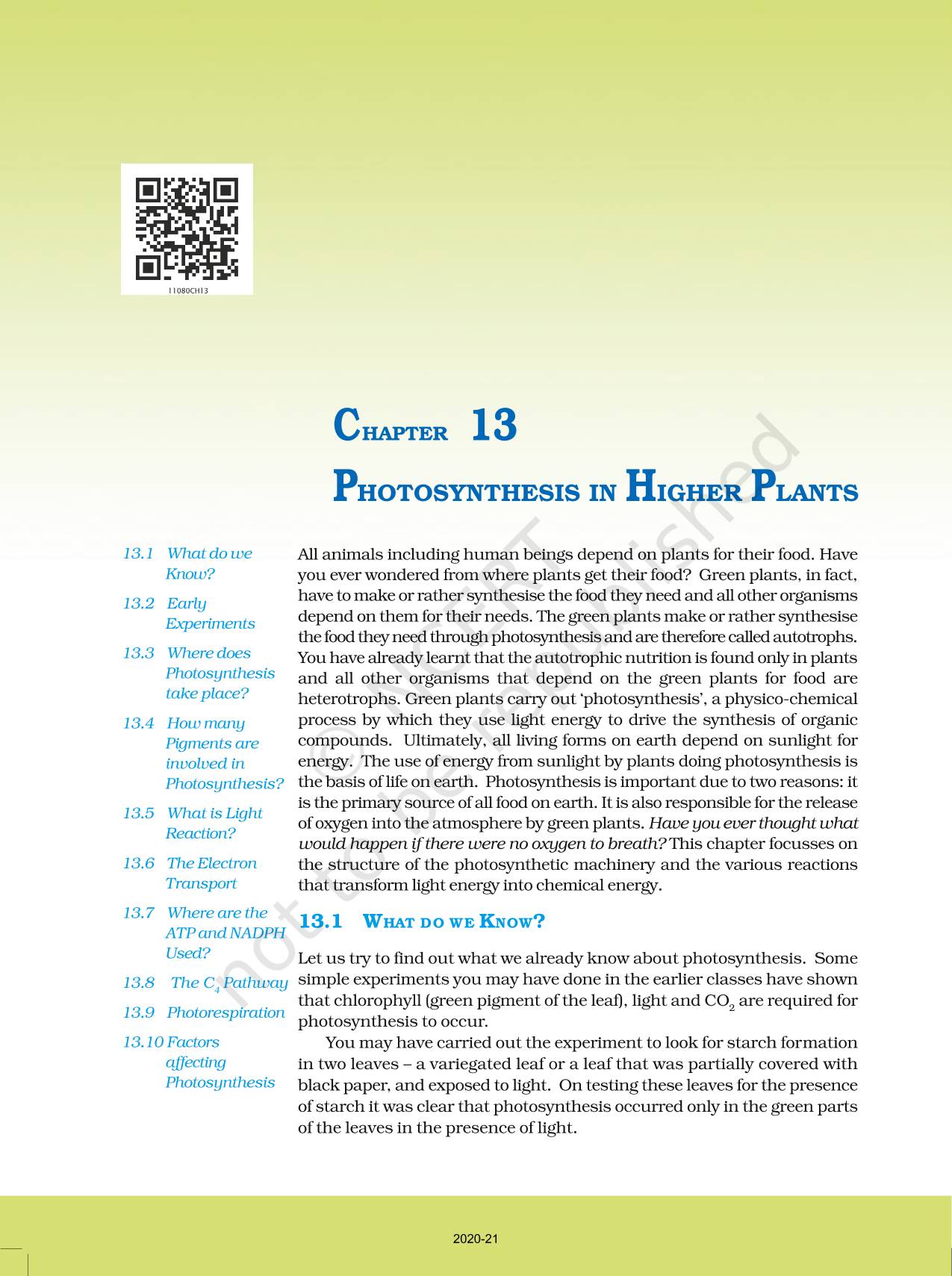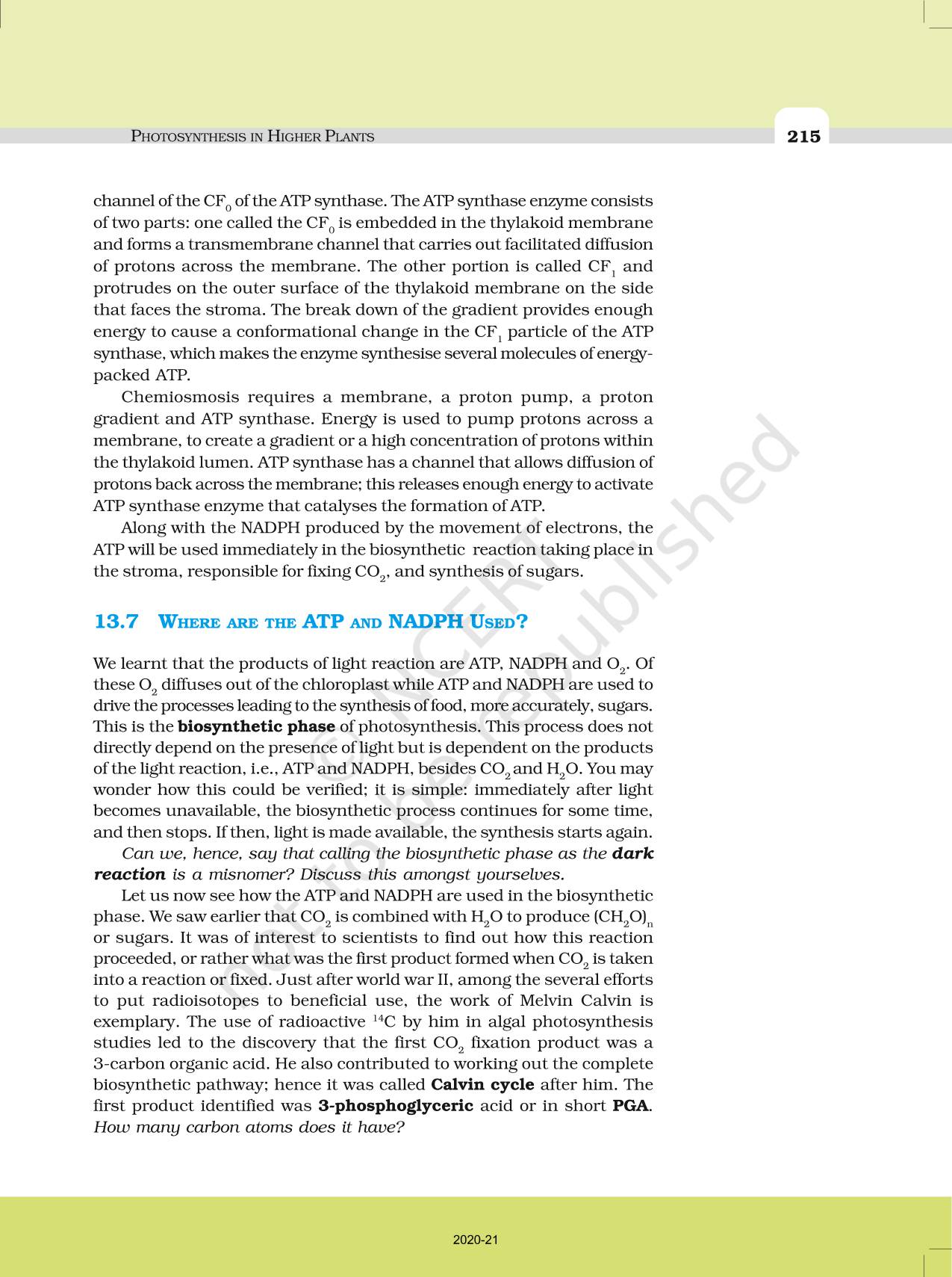 Chapter - Photosynthesis In Higher Plants