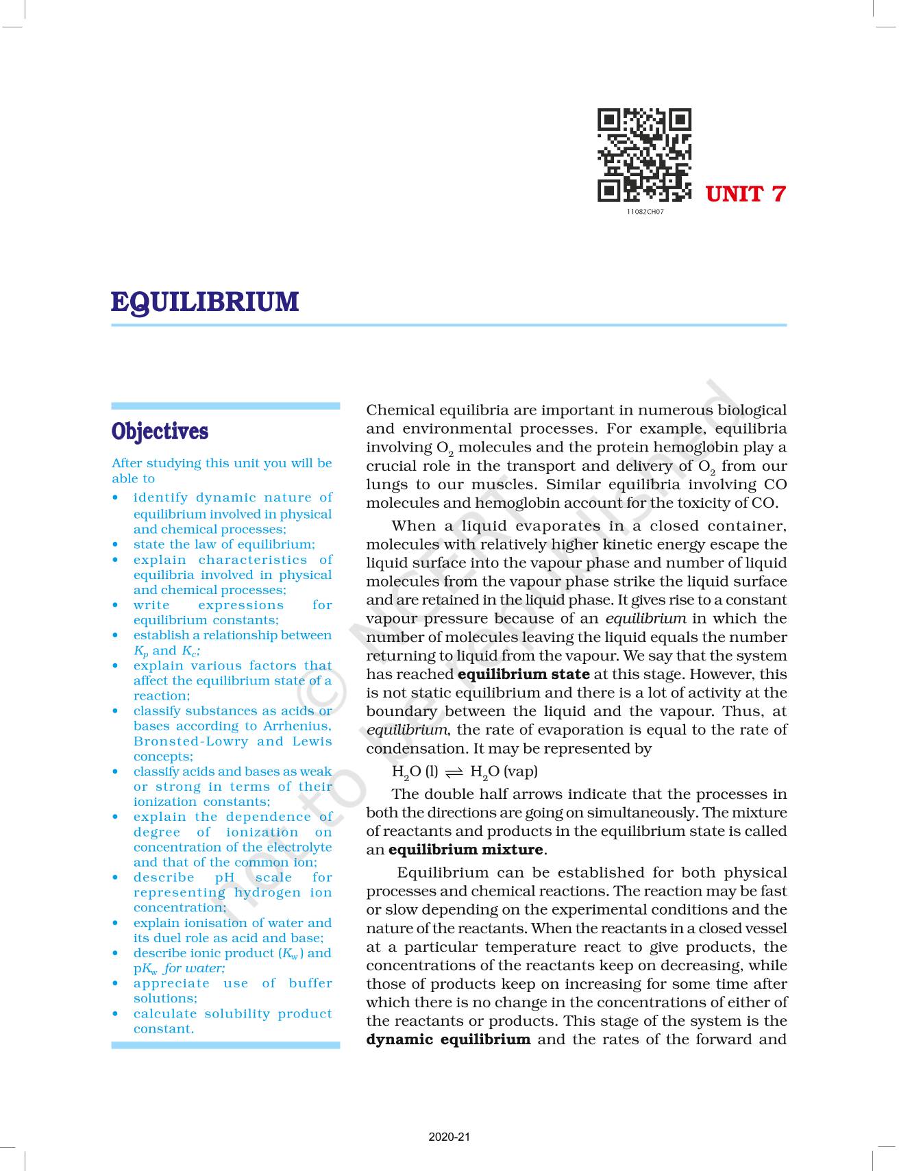 The time when students had limited options of choice for NCERT books wherein they need to go to the bookstore to buy the books but here at BeTrained.in, you can read the complete chapter-Equilibrium of NCERT books for class 11 Chemistry Part I. If CBSE class 11 students are finding it hard to search for NCERT Chemistry Part I books online, then this is the right place as we have provided the textbooks of NCERT chapter wise. These books are available on our website for free along with NCERT Solutions and Exemplar solutions.