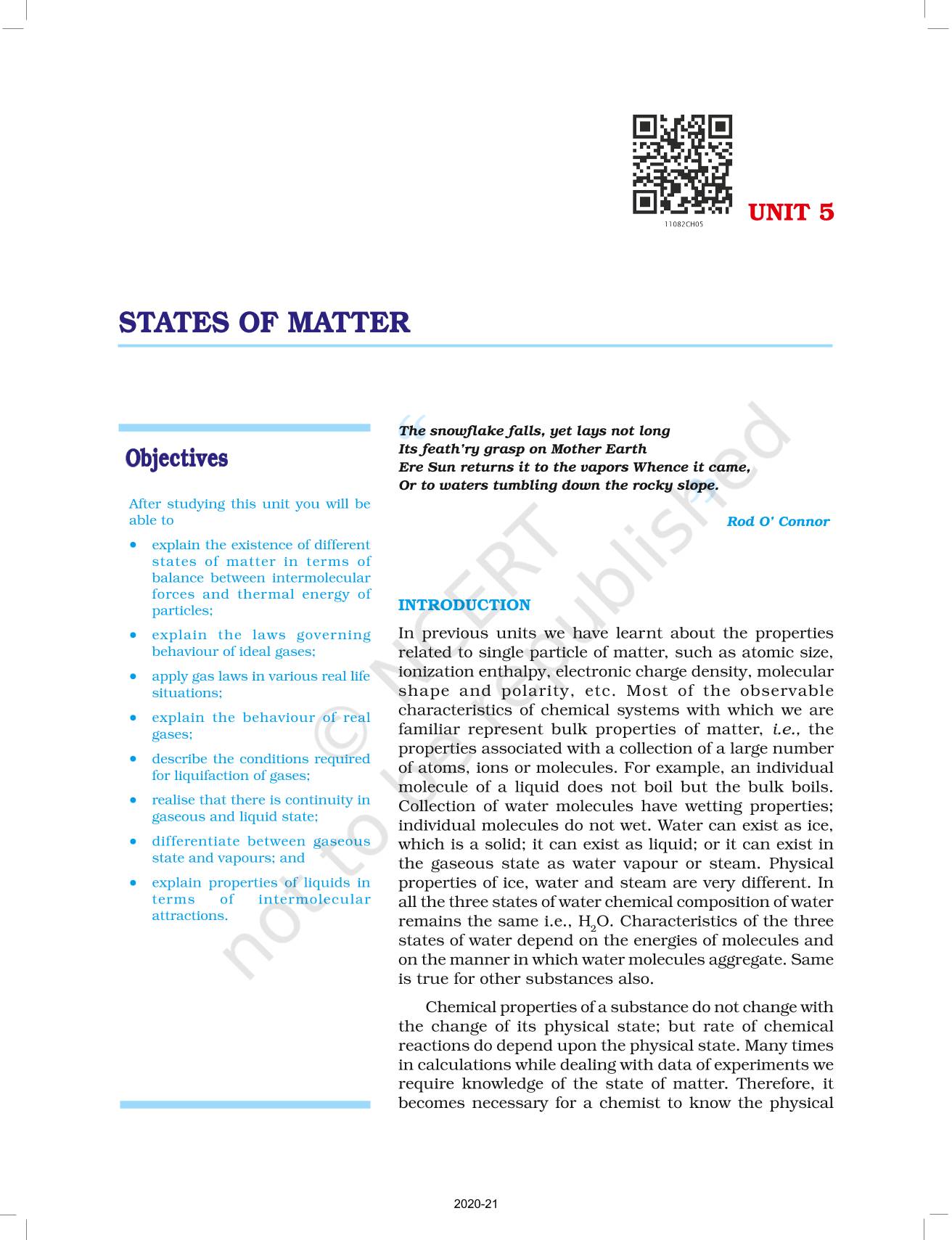 The time when students had limited options of choice for NCERT books wherein they need to go to the bookstore to buy the books but here at BeTrained.in, you can read the complete chapter-States Of Matter of NCERT books for class 11 Chemistry Part I. If CBSE class 11 students are finding it hard to search for NCERT Chemistry Part I books online, then this is the right place as we have provided the textbooks of NCERT chapter wise. These books are available on our website for free along with NCERT Solutions and Exemplar solutions.