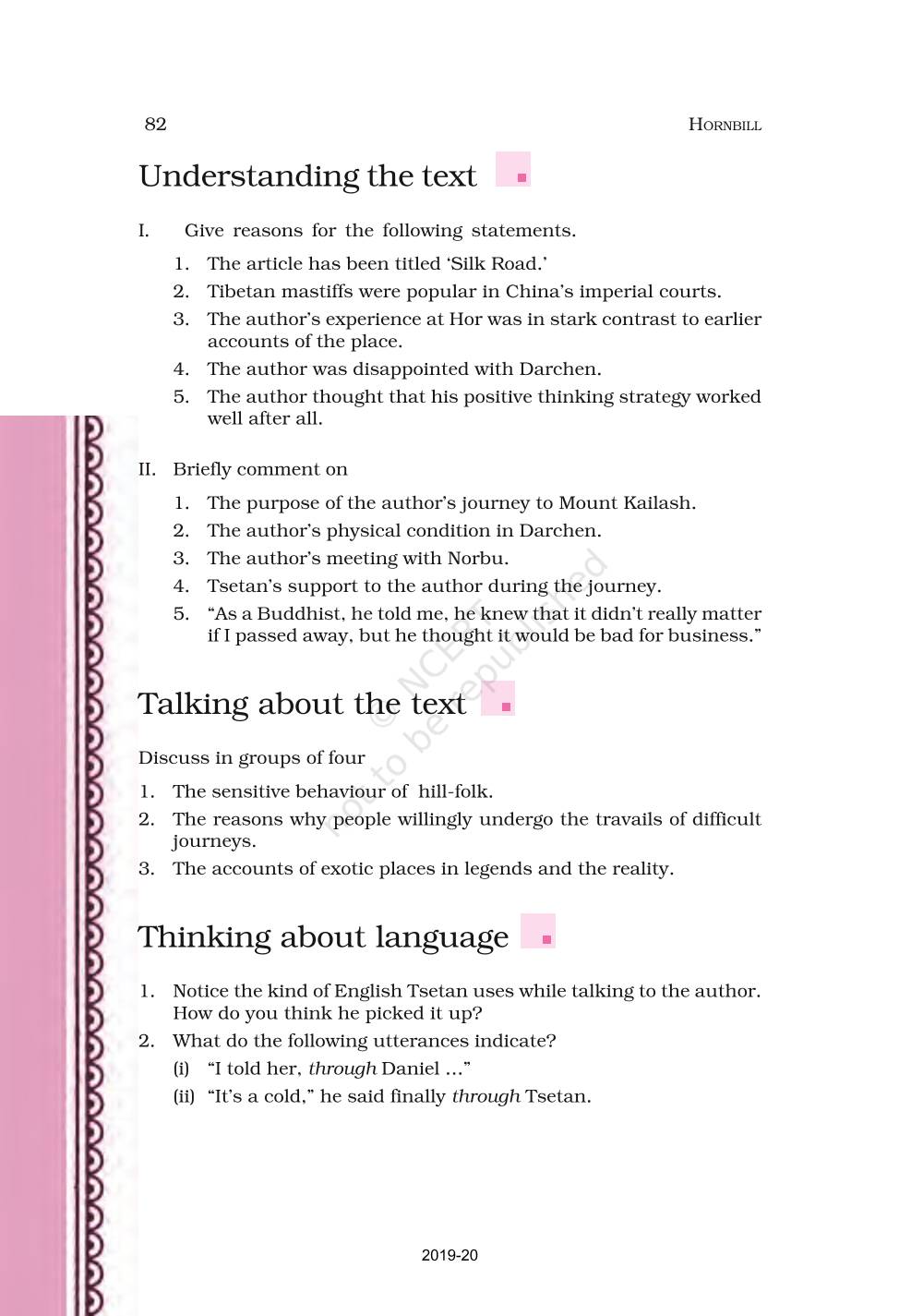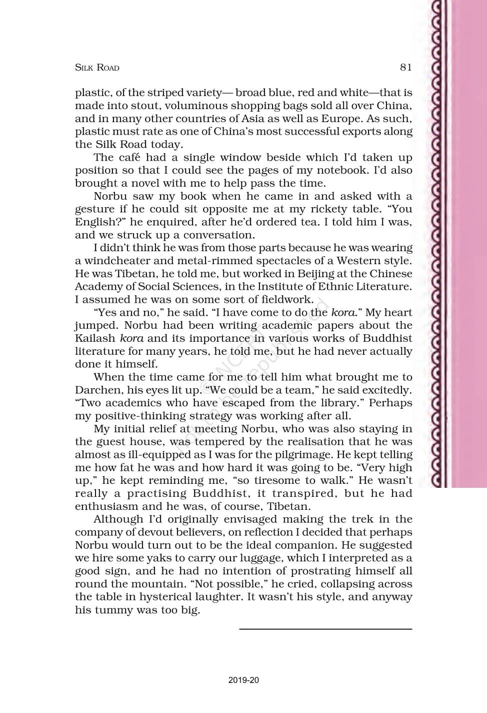 The time when students had limited options of choice for NCERT books wherein they need to go to the bookstore to buy the books but here at BeTrained.in, you can read the complete chapter-Silk Road of NCERT books for class 11 English Hornbill. If CBSE class 11 students are finding it hard to search for NCERT English Hornbill books online, then this is the right place as we have provided the textbooks of NCERT chapter wise. These books are available on our website for free along with NCERT Solutions and Exemplar solutions.