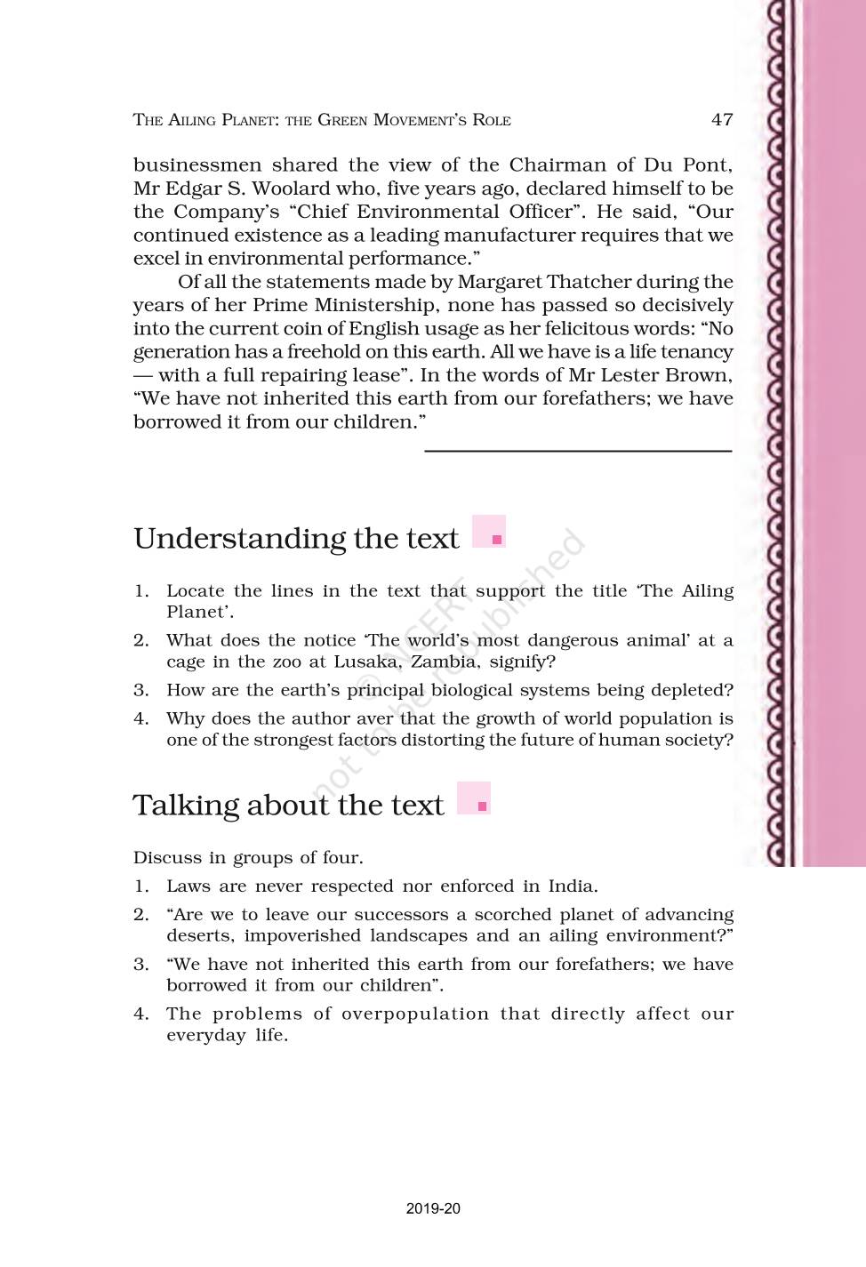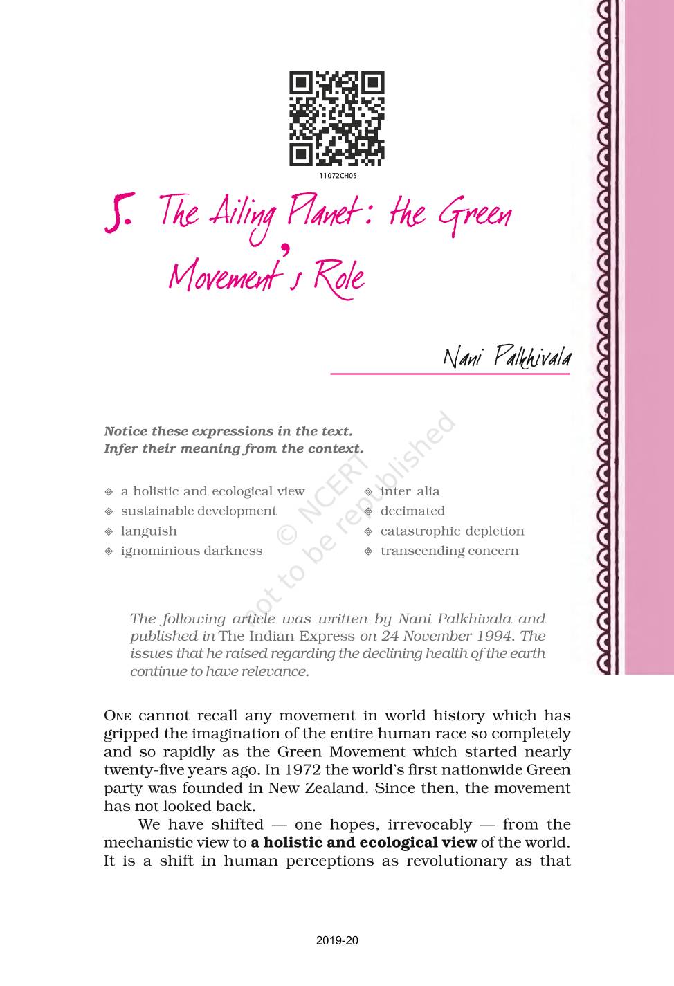 The time when students had limited options of choice for NCERT books wherein they need to go to the bookstore to buy the books but here at BeTrained.in, you can read the complete chapter-The Ailing Planet The Green Movements Role of NCERT books for class 11 English Hornbill. If CBSE class 11 students are finding it hard to search for NCERT English Hornbill books online, then this is the right place as we have provided the textbooks of NCERT chapter wise. These books are available on our website for free along with NCERT Solutions and Exemplar solutions.