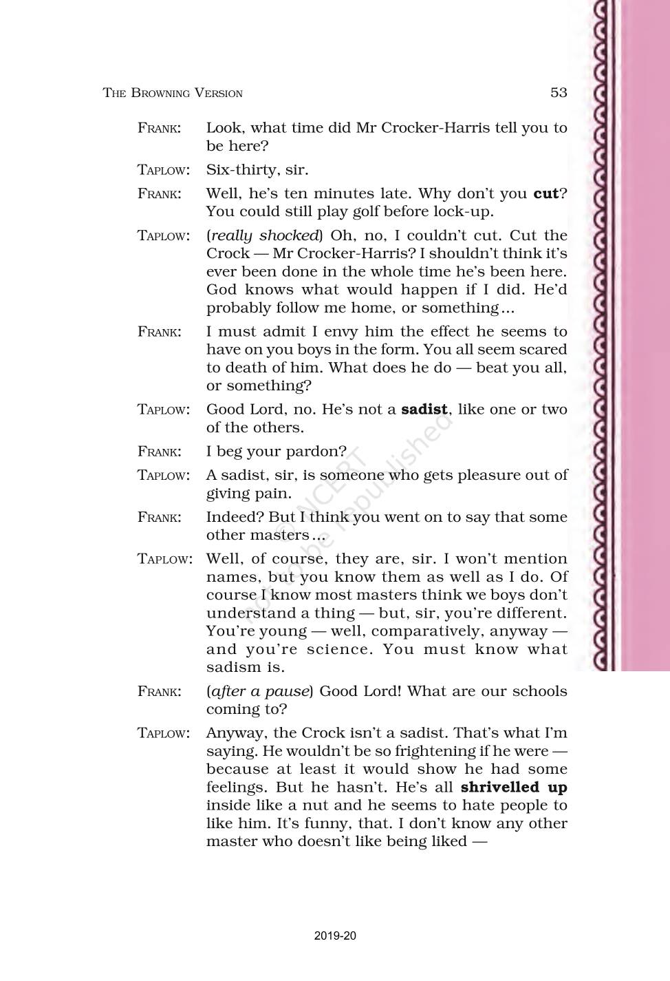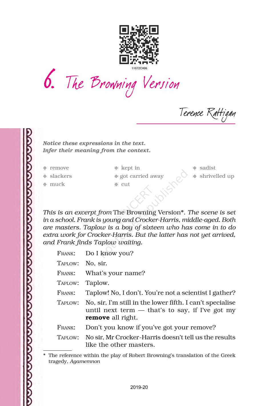 The time when students had limited options of choice for NCERT books wherein they need to go to the bookstore to buy the books but here at BeTrained.in, you can read the complete chapter-The Browning Version of NCERT books for class 11 English Hornbill. If CBSE class 11 students are finding it hard to search for NCERT English Hornbill books online, then this is the right place as we have provided the textbooks of NCERT chapter wise. These books are available on our website for free along with NCERT Solutions and Exemplar solutions.