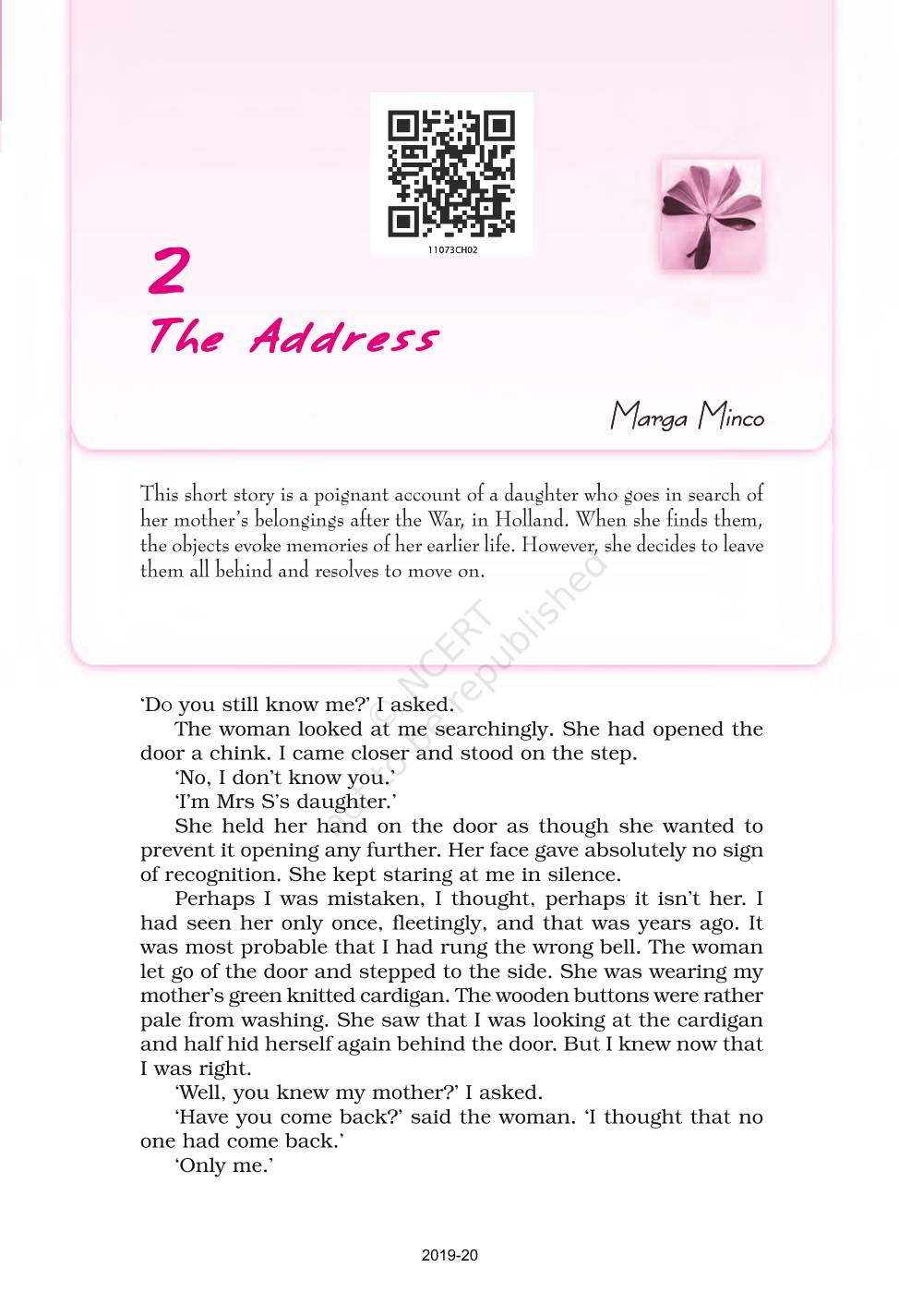 The time when students had limited options of choice for NCERT books wherein they need to go to the bookstore to buy the books but here at BeTrained.in, you can read the complete chapter-The Address of NCERT books for class 11 English Snapshot. If CBSE class 11 students are finding it hard to search for NCERT English Snapshot books online, then this is the right place as we have provided the textbooks of NCERT chapter wise. These books are available on our website for free along with NCERT Solutions and Exemplar solutions.