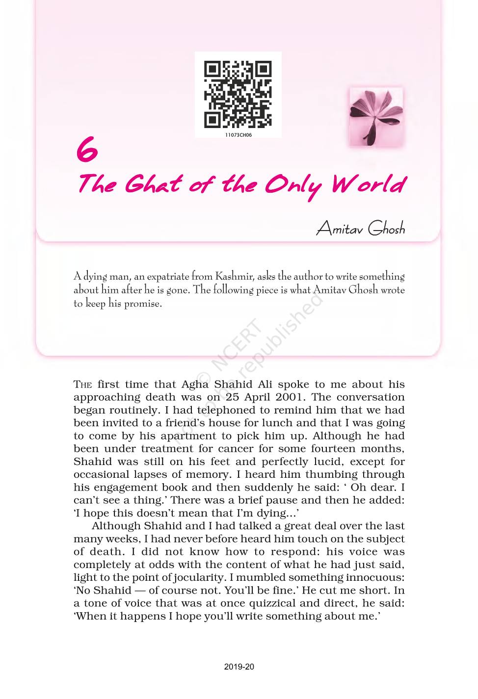 The time when students had limited options of choice for NCERT books wherein they need to go to the bookstore to buy the books but here at BeTrained.in, you can read the complete chapter-The Ghat Of The Only World of NCERT books for class 11 English Snapshot. If CBSE class 11 students are finding it hard to search for NCERT English Snapshot books online, then this is the right place as we have provided the textbooks of NCERT chapter wise. These books are available on our website for free along with NCERT Solutions and Exemplar solutions.