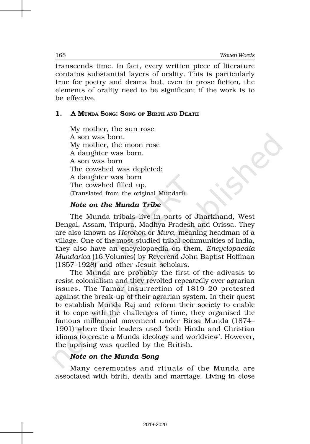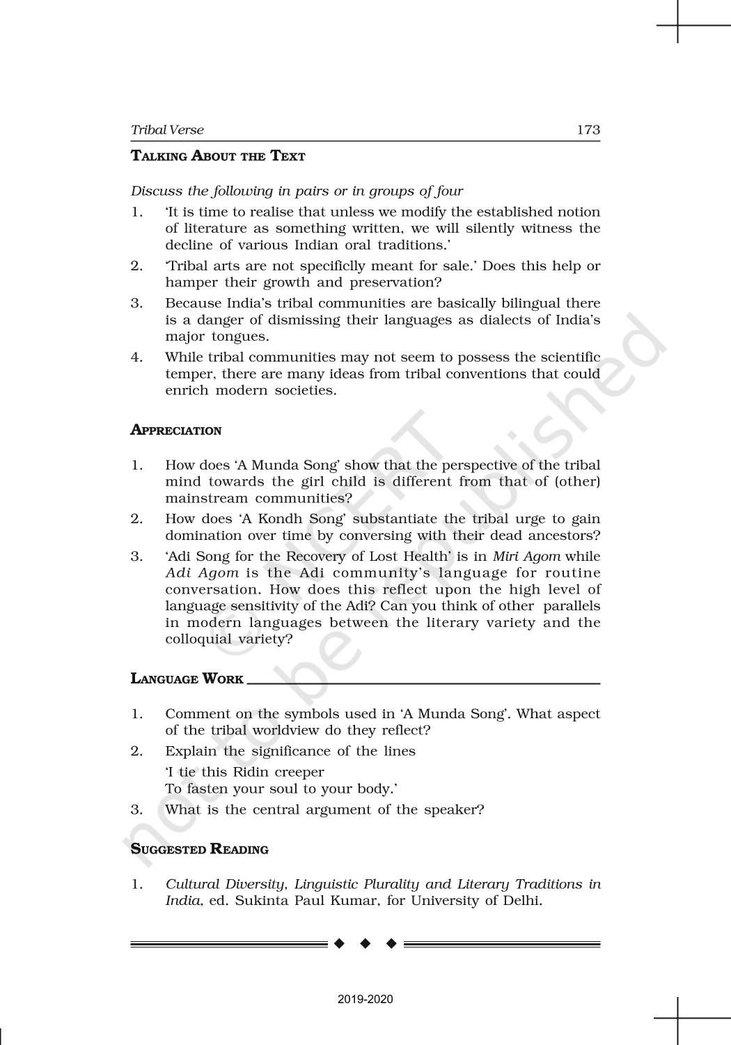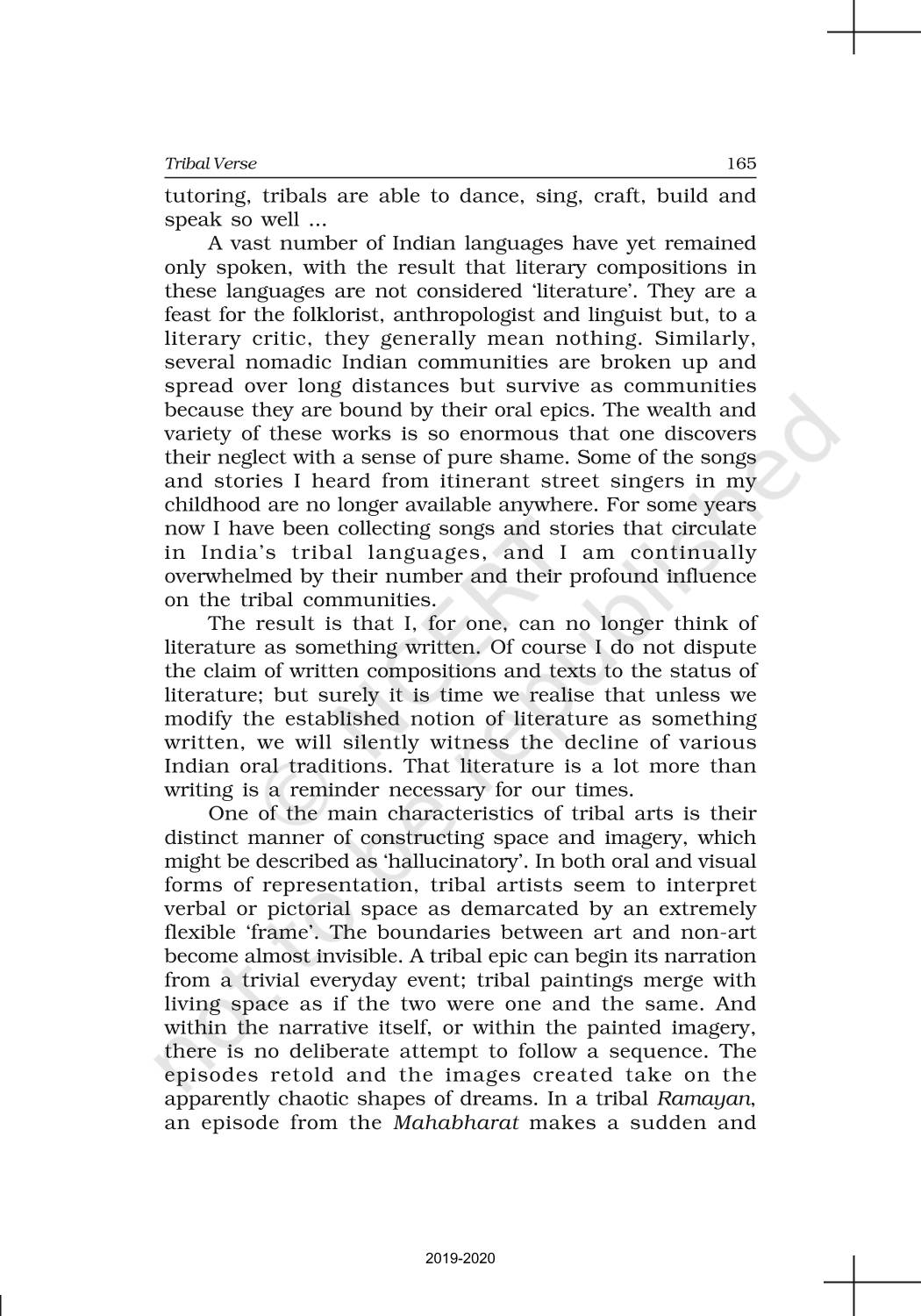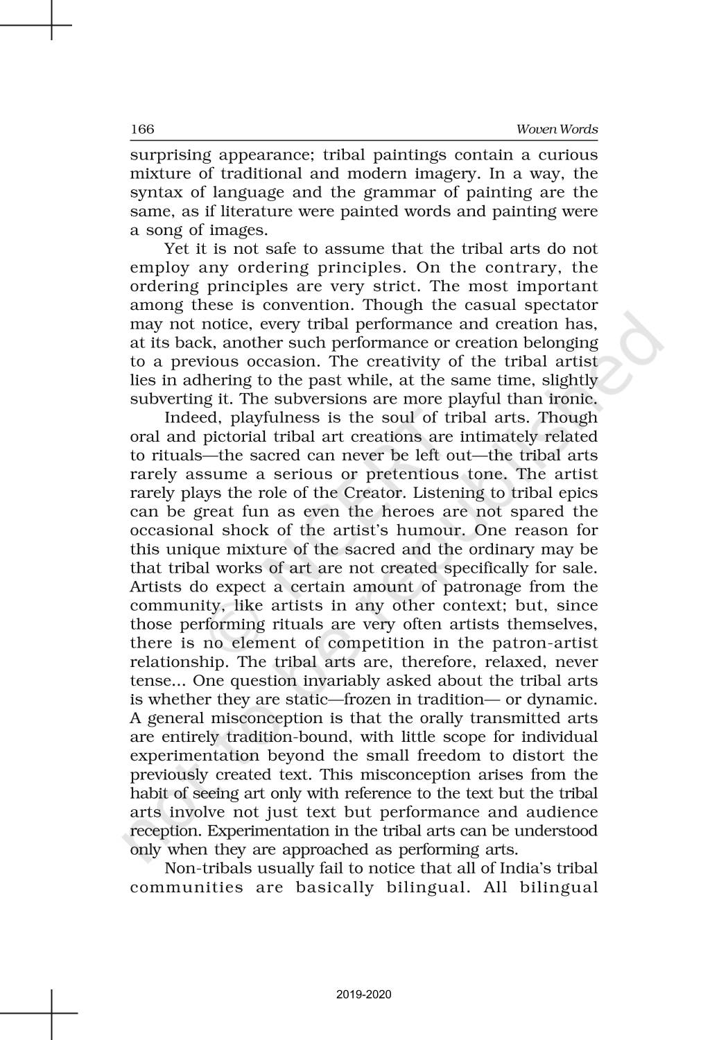 The time when students had limited options of choice for NCERT books wherein they need to go to the bookstore to buy the books but here at BeTrained.in, you can read the complete chapter-Essays 4 Tribal Verse of NCERT books for class 11 English Woven Words. If CBSE class 11 students are finding it hard to search for NCERT English Woven Words books online, then this is the right place as we have provided the textbooks of NCERT chapter wise. These books are available on our website for free along with NCERT Solutions and Exemplar solutions.