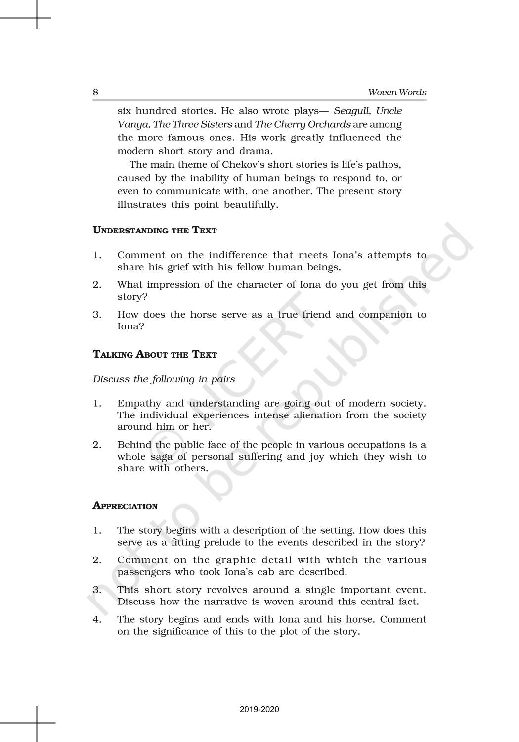 The time when students had limited options of choice for NCERT books wherein they need to go to the bookstore to buy the books but here at BeTrained.in, you can read the complete chapter-Short Stories 1 The Lament of NCERT books for class 11 English Woven Words. If CBSE class 11 students are finding it hard to search for NCERT English Woven Words books online, then this is the right place as we have provided the textbooks of NCERT chapter wise. These books are available on our website for free along with NCERT Solutions and Exemplar solutions.