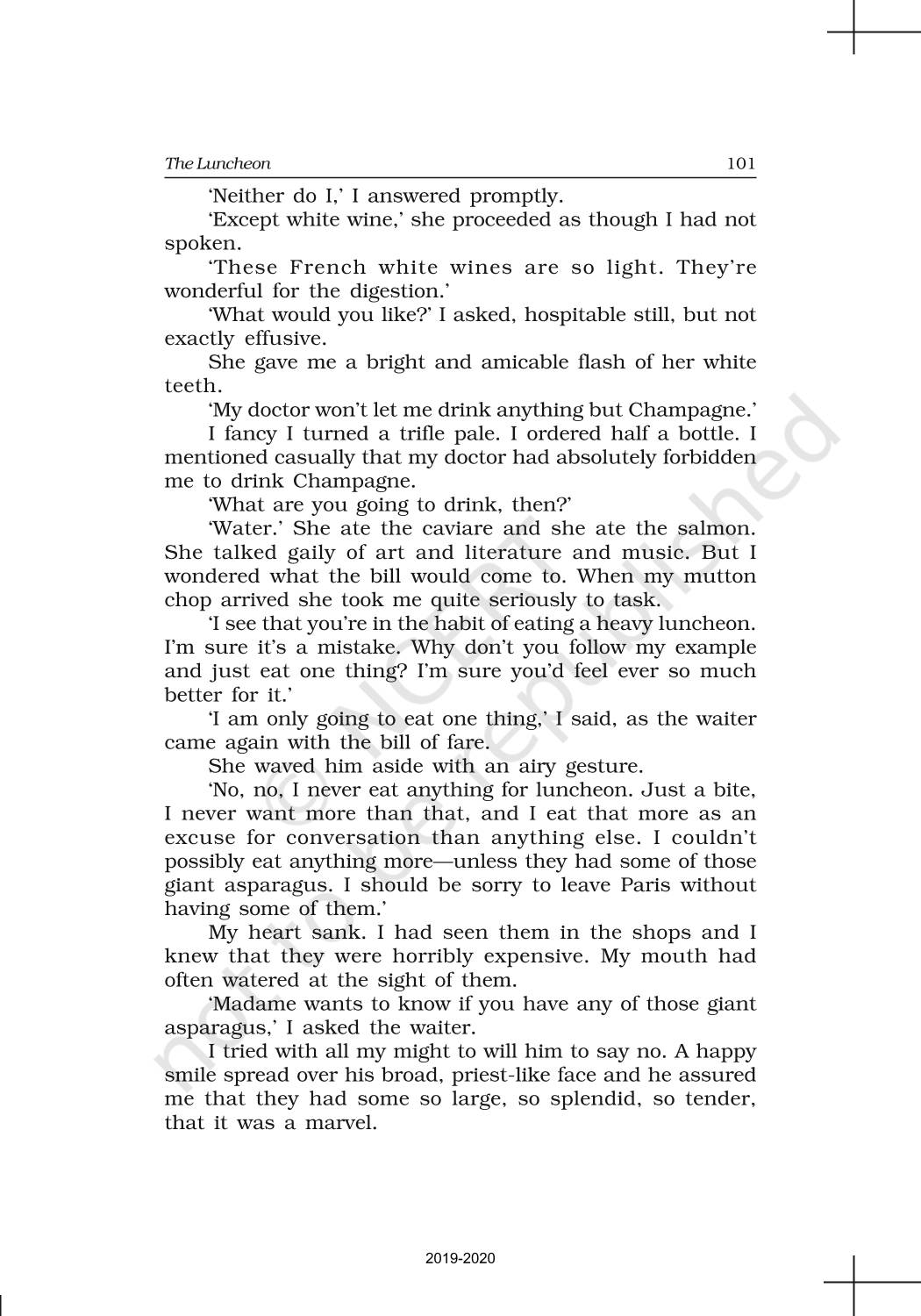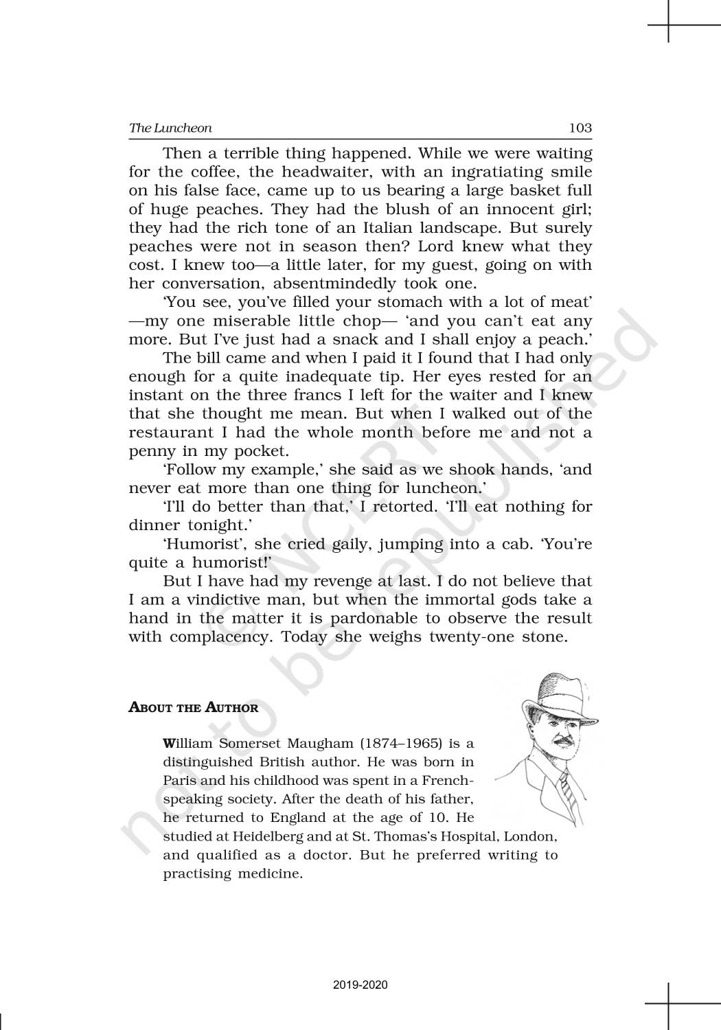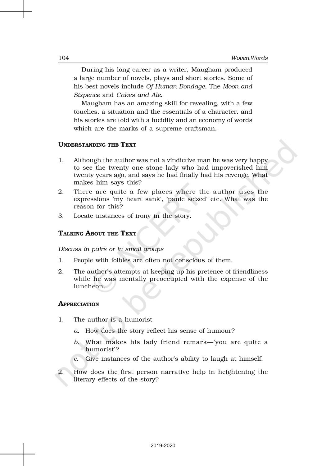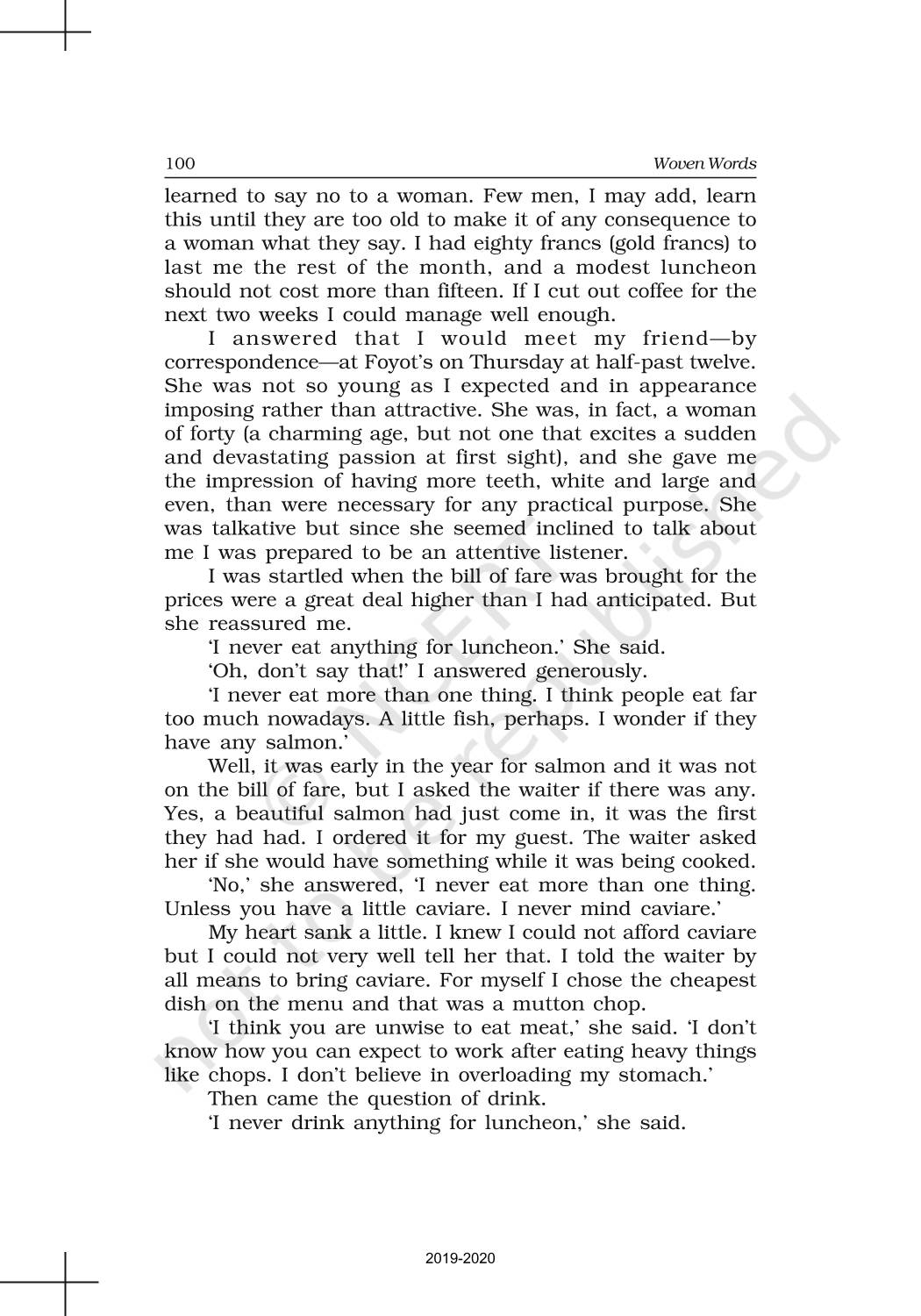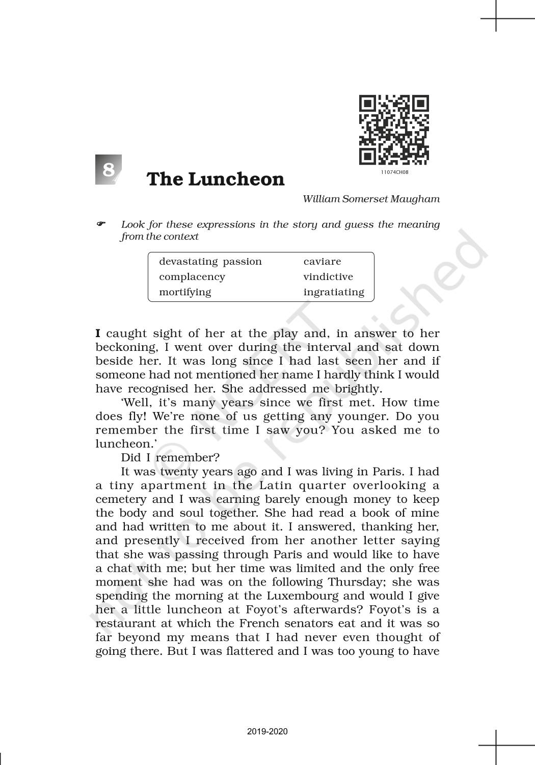 The time when students had limited options of choice for NCERT books wherein they need to go to the bookstore to buy the books but here at BeTrained.in, you can read the complete chapter-Short Stories 8 The Luncheon of NCERT books for class 11 English Woven Words. If CBSE class 11 students are finding it hard to search for NCERT English Woven Words books online, then this is the right place as we have provided the textbooks of NCERT chapter wise. These books are available on our website for free along with NCERT Solutions and Exemplar solutions.