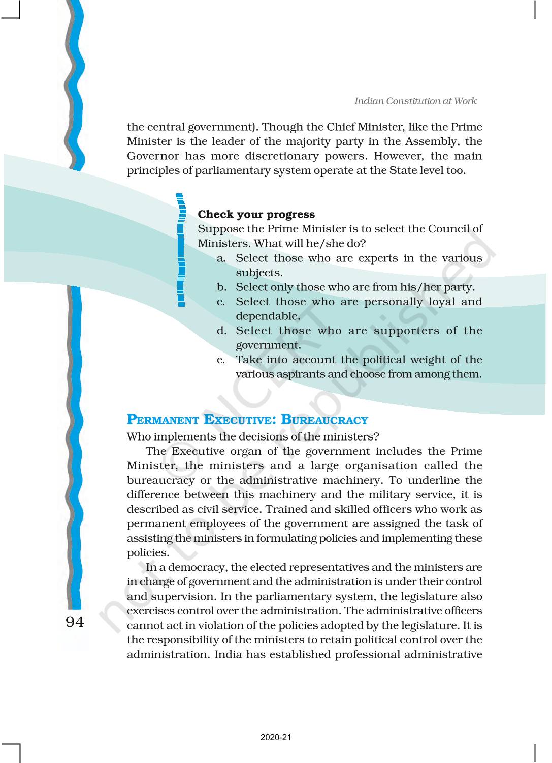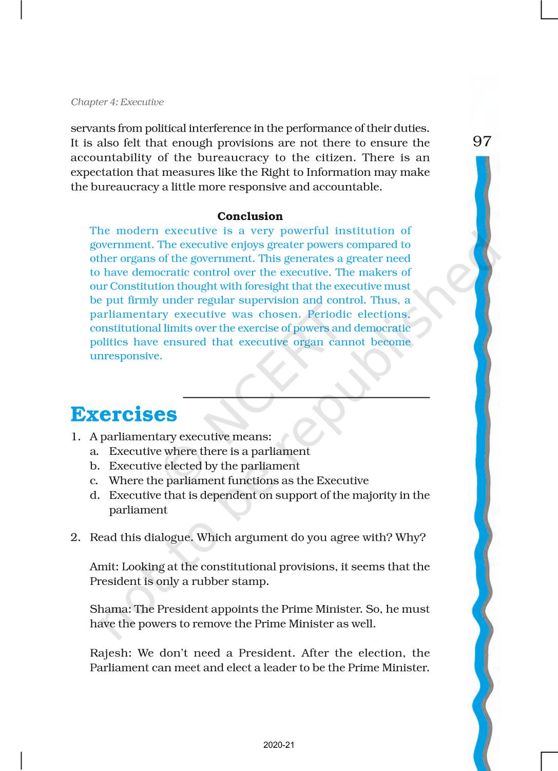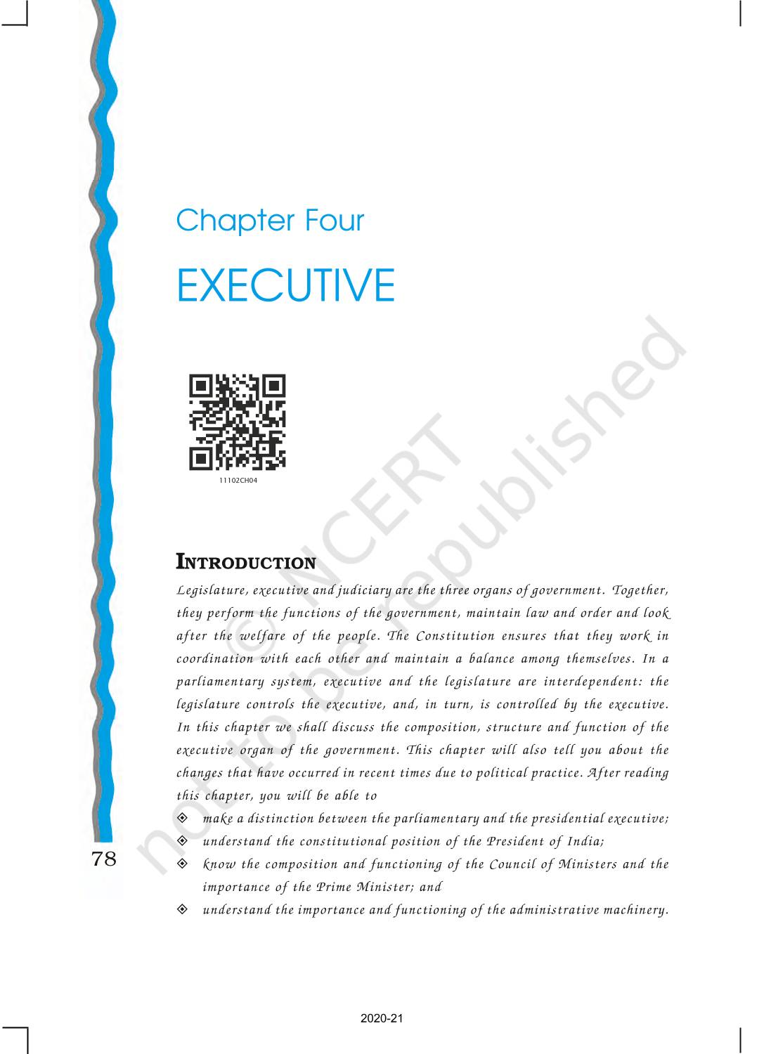 The time when students had limited options of choice for NCERT books wherein they need to go to the bookstore to buy the books but here at BeTrained.in, you can read the complete chapter-Executive of NCERT books for class 11 Indian Constitution At Work. If CBSE class 11 students are finding it hard to search for NCERT Indian Constitution At Work books online, then this is the right place as we have provided the textbooks of NCERT chapter wise. These books are available on our website for free along with NCERT Solutions and Exemplar solutions.