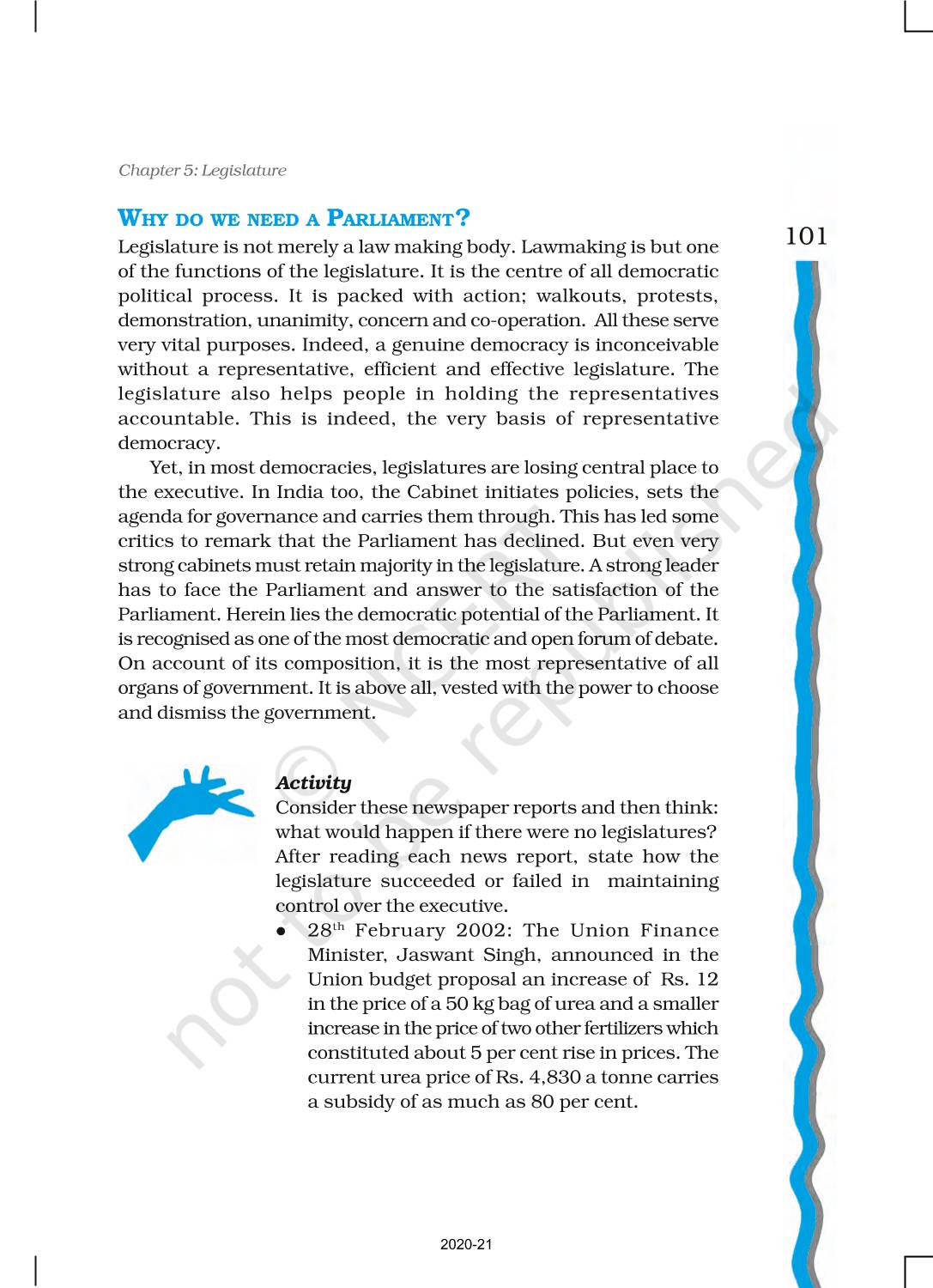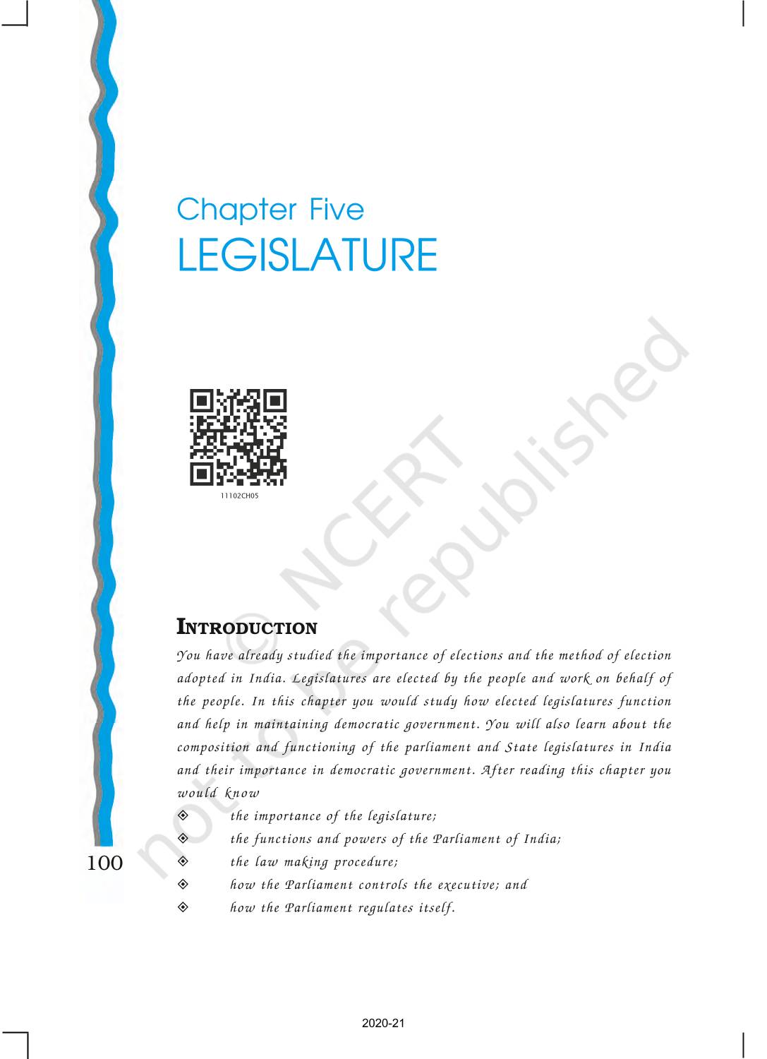 The time when students had limited options of choice for NCERT books wherein they need to go to the bookstore to buy the books but here at BeTrained.in, you can read the complete chapter-Legislature of NCERT books for class 11 Indian Constitution At Work. If CBSE class 11 students are finding it hard to search for NCERT Indian Constitution At Work books online, then this is the right place as we have provided the textbooks of NCERT chapter wise. These books are available on our website for free along with NCERT Solutions and Exemplar solutions.