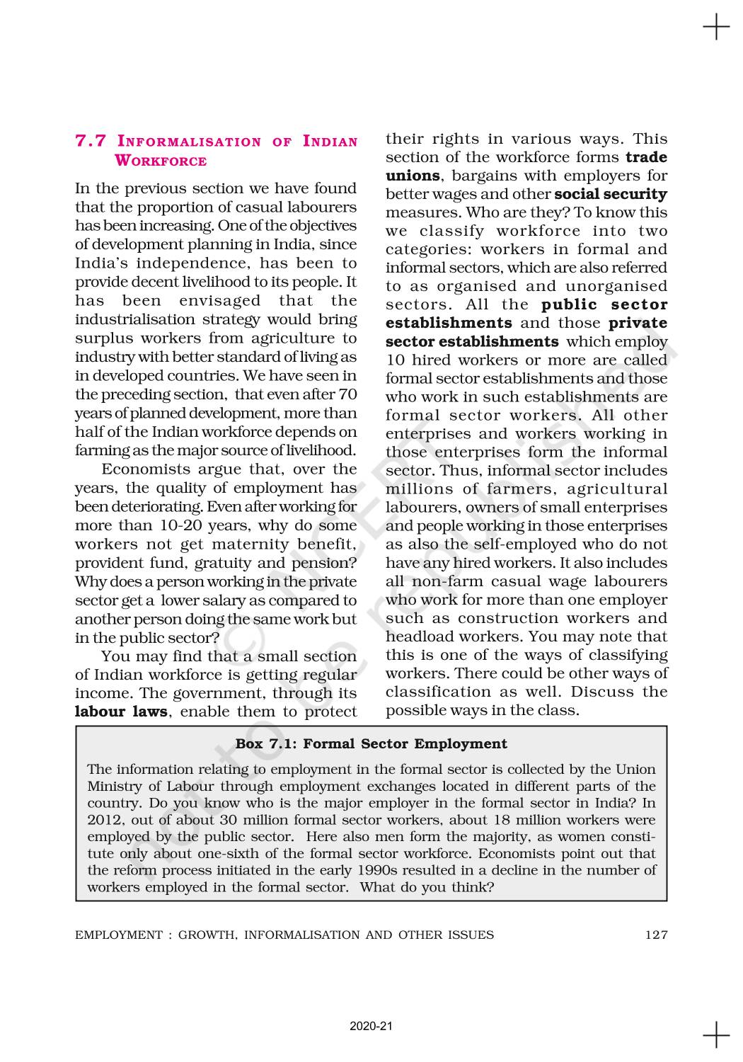 The time when students had limited options of choice for NCERT books wherein they need to go to the bookstore to buy the books but here at BeTrained.in, you can read the complete chapter-Employment Growth Informalisation And Other Issues of NCERT books for class 11 Indian Economic Development. If CBSE class 11 students are finding it hard to search for NCERT Indian Economic Development books online, then this is the right place as we have provided the textbooks of NCERT chapter wise. These books are available on our website for free along with NCERT Solutions and Exemplar solutions.