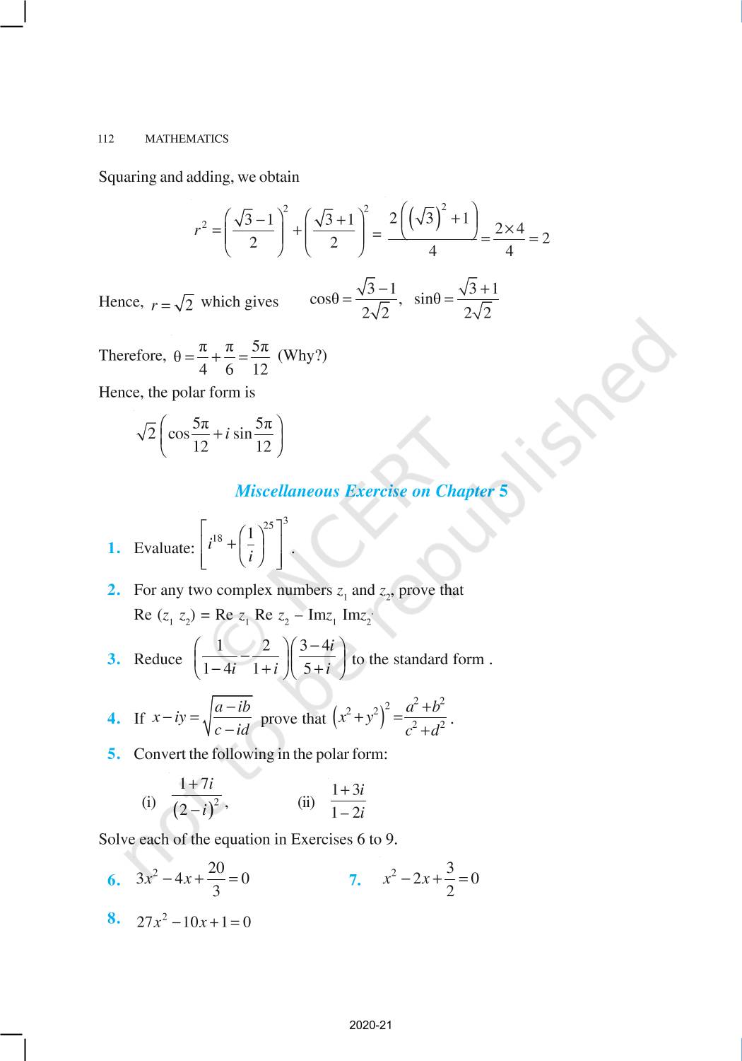 Chapter - Complex Numbers And Quadratic Equations