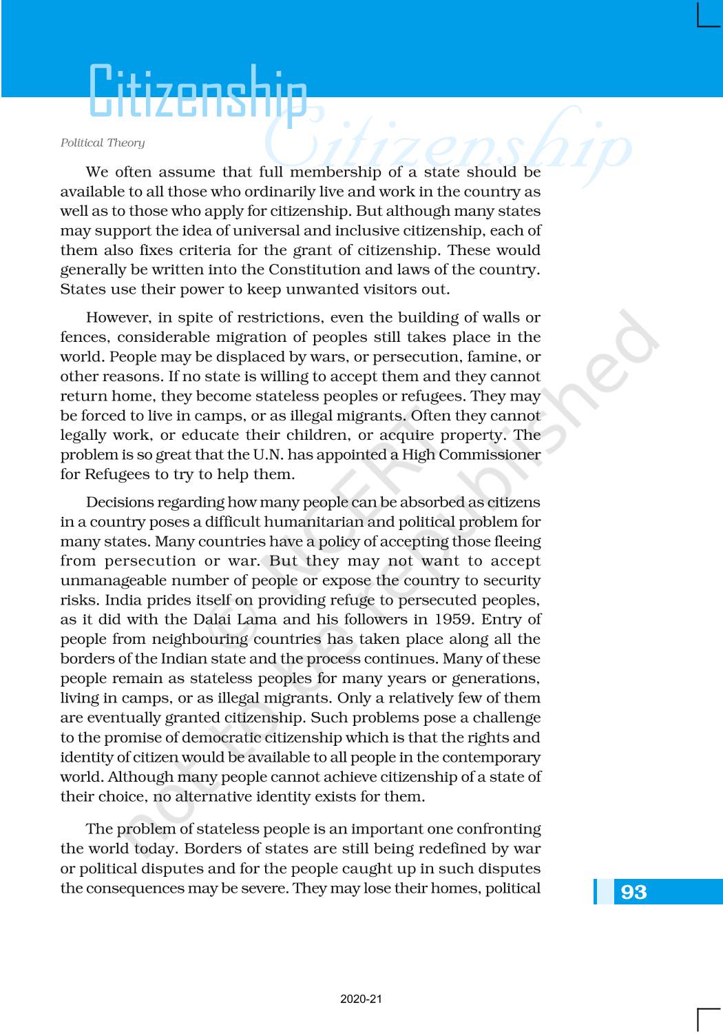 The time when students had limited options of choice for NCERT books wherein they need to go to the bookstore to buy the books but here at BeTrained.in, you can read the complete chapter-Citizenship of NCERT books for class 11 Political Theory. If CBSE class 11 students are finding it hard to search for NCERT Political Theory books online, then this is the right place as we have provided the textbooks of NCERT chapter wise. These books are available on our website for free along with NCERT Solutions and Exemplar solutions.