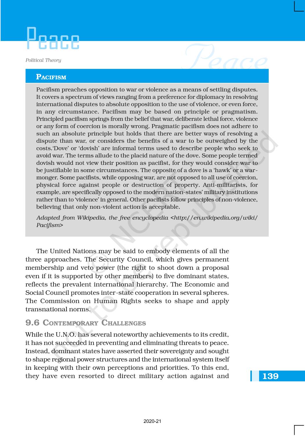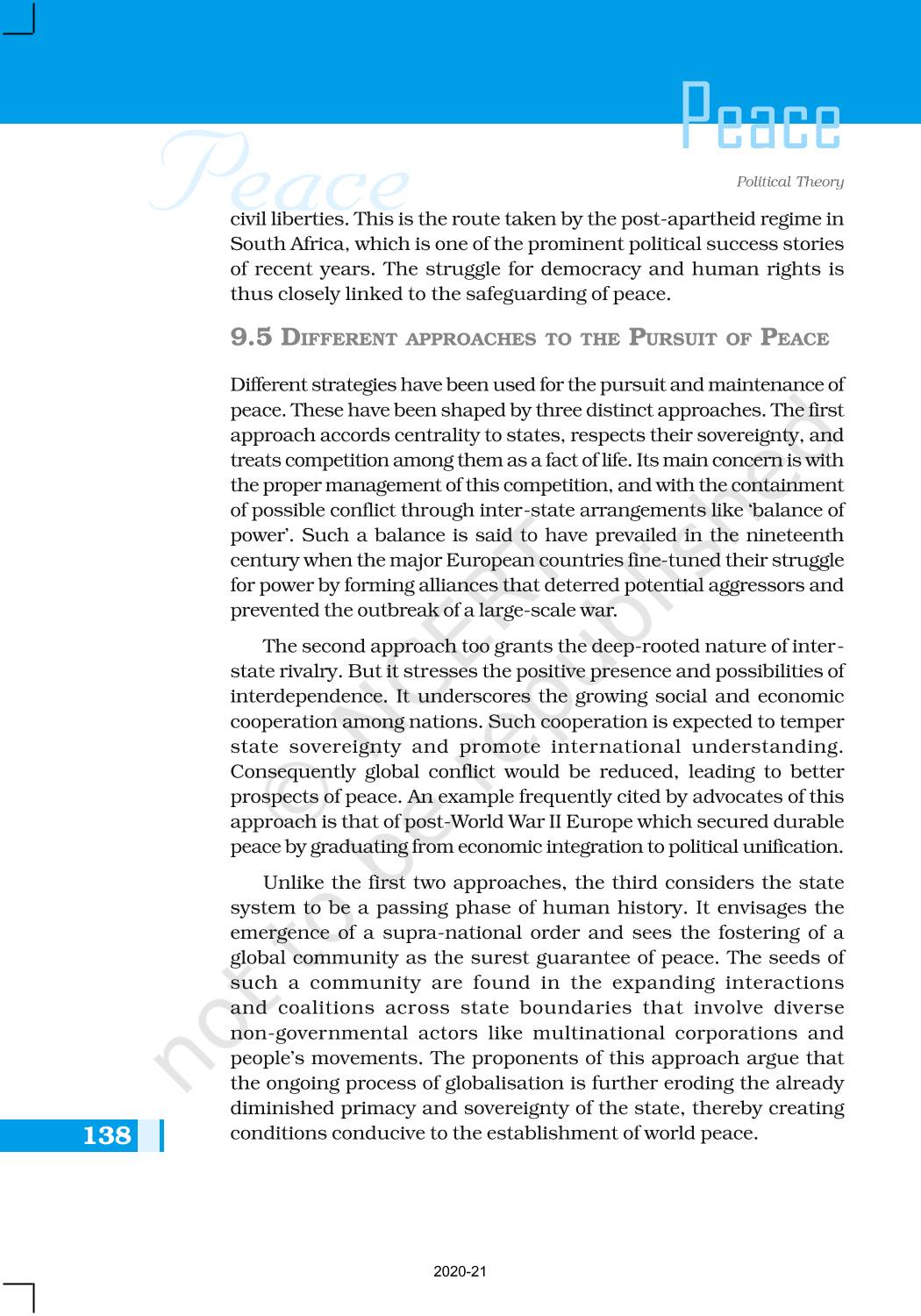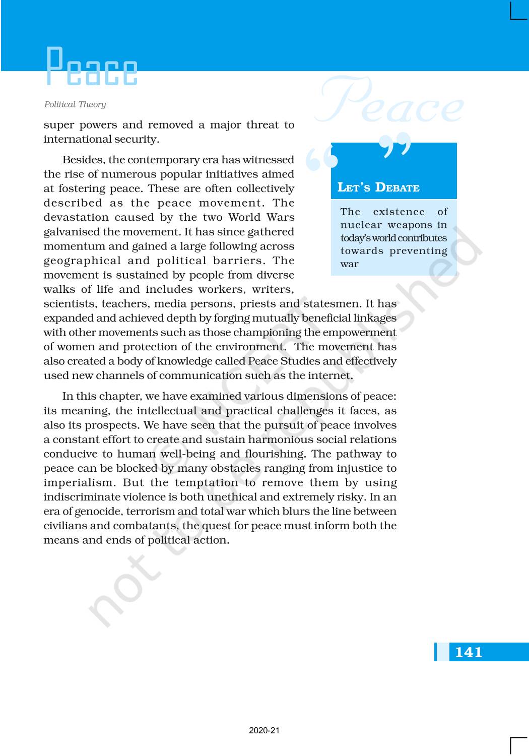 The time when students had limited options of choice for NCERT books wherein they need to go to the bookstore to buy the books but here at BeTrained.in, you can read the complete chapter-Peace of NCERT books for class 11 Political Theory. If CBSE class 11 students are finding it hard to search for NCERT Political Theory books online, then this is the right place as we have provided the textbooks of NCERT chapter wise. These books are available on our website for free along with NCERT Solutions and Exemplar solutions.