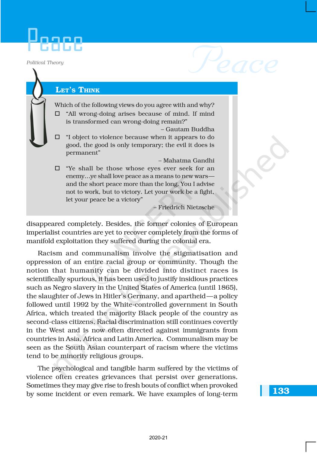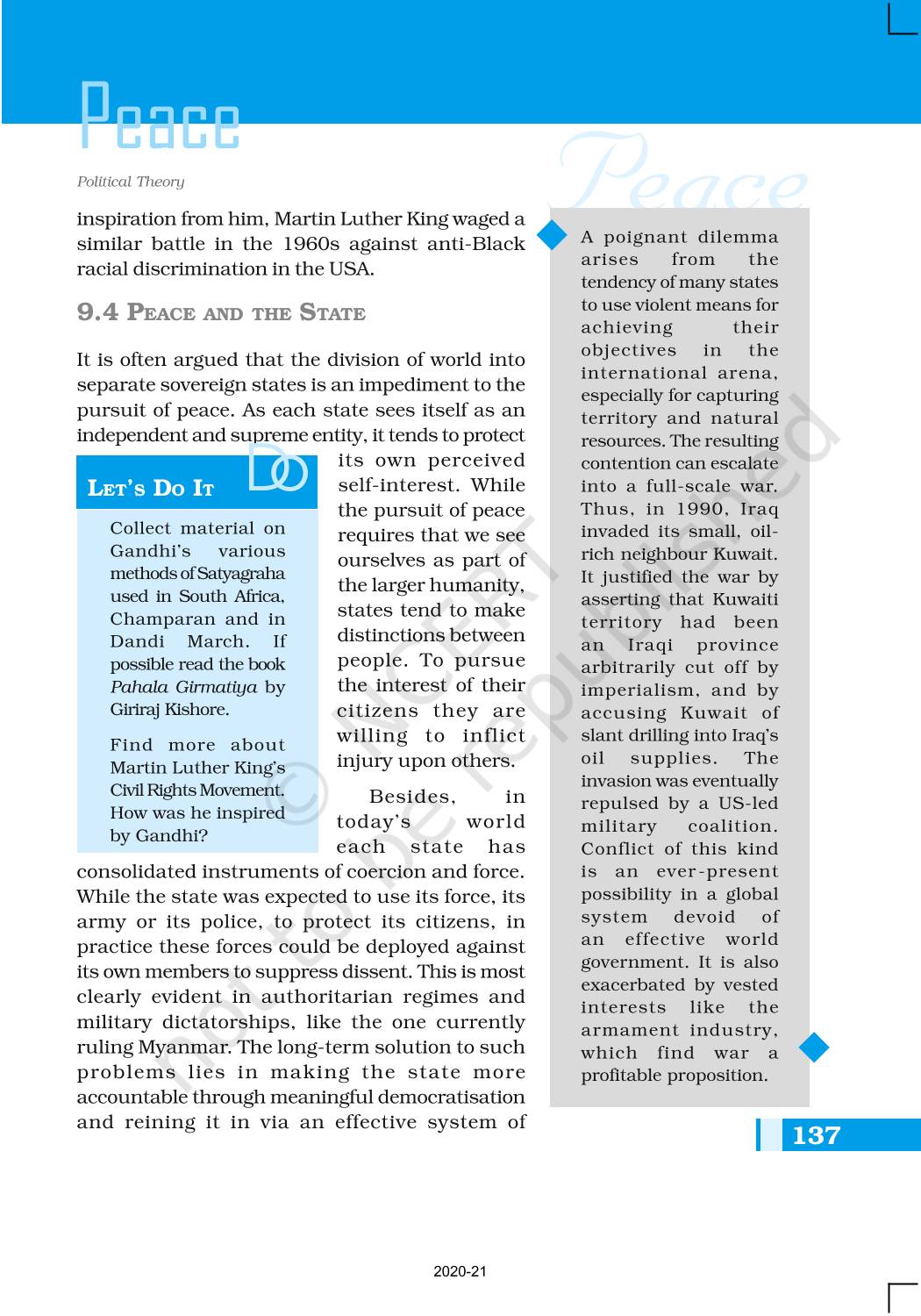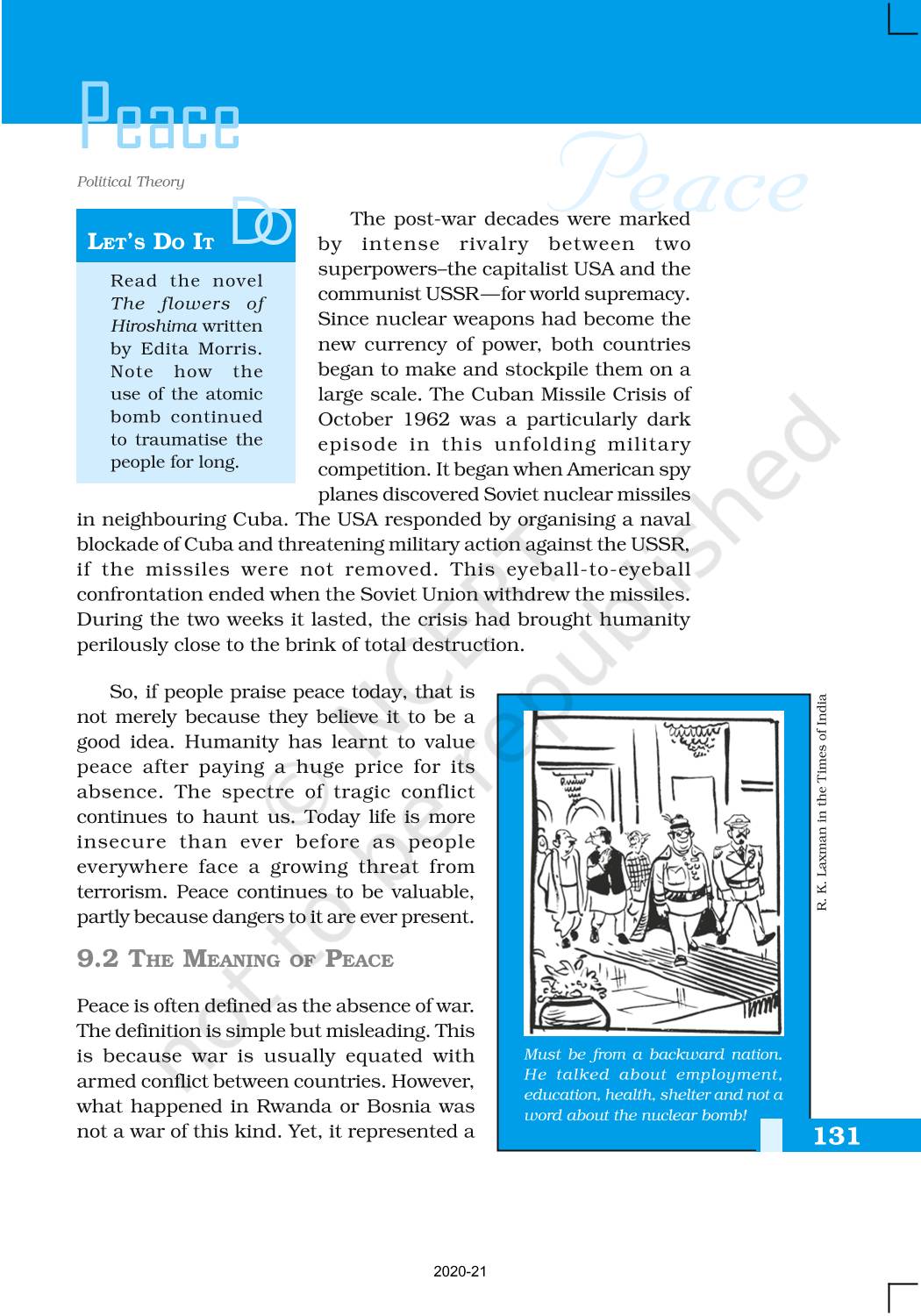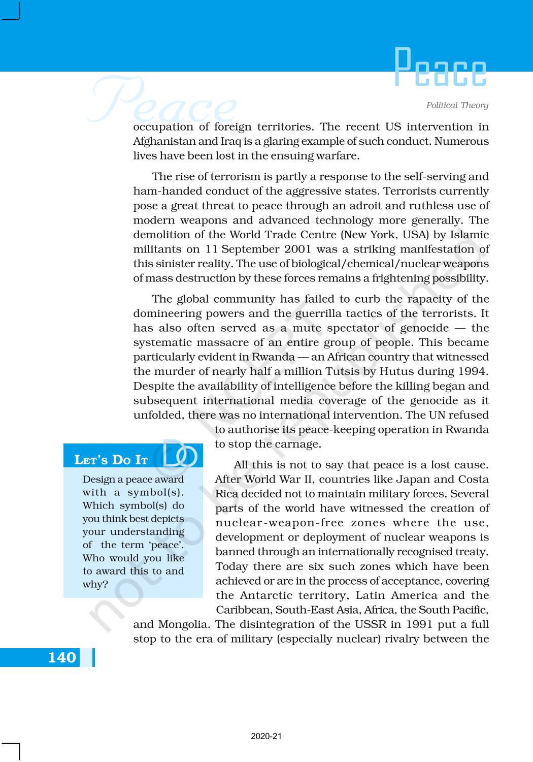The time when students had limited options of choice for NCERT books wherein they need to go to the bookstore to buy the books but here at BeTrained.in, you can read the complete chapter-Peace of NCERT books for class 11 Political Theory. If CBSE class 11 students are finding it hard to search for NCERT Political Theory books online, then this is the right place as we have provided the textbooks of NCERT chapter wise. These books are available on our website for free along with NCERT Solutions and Exemplar solutions.