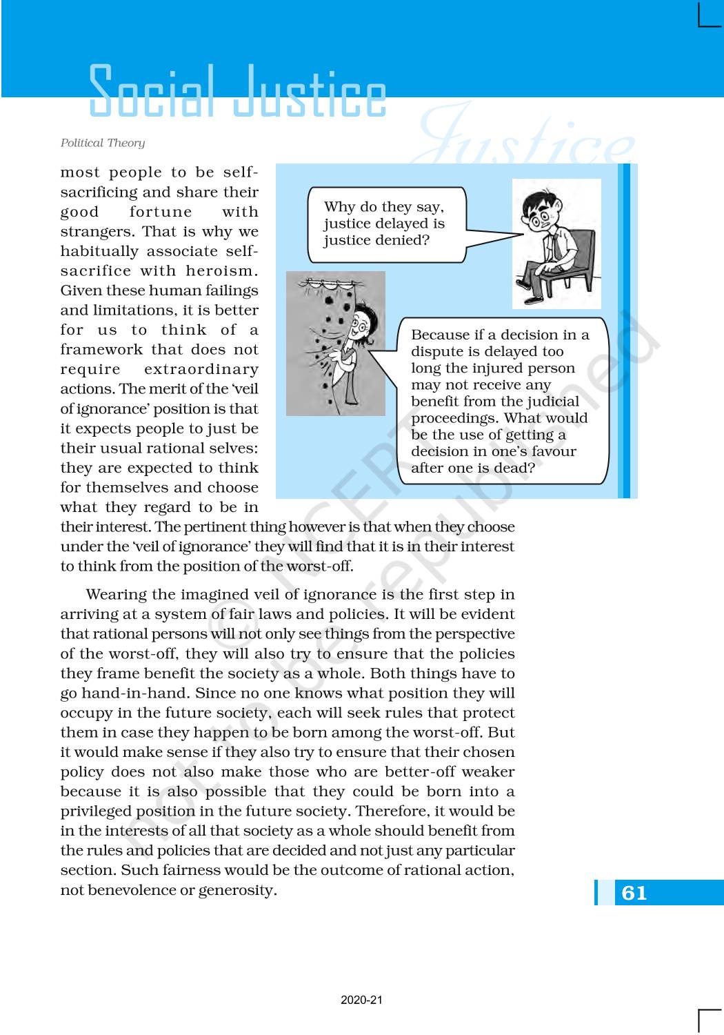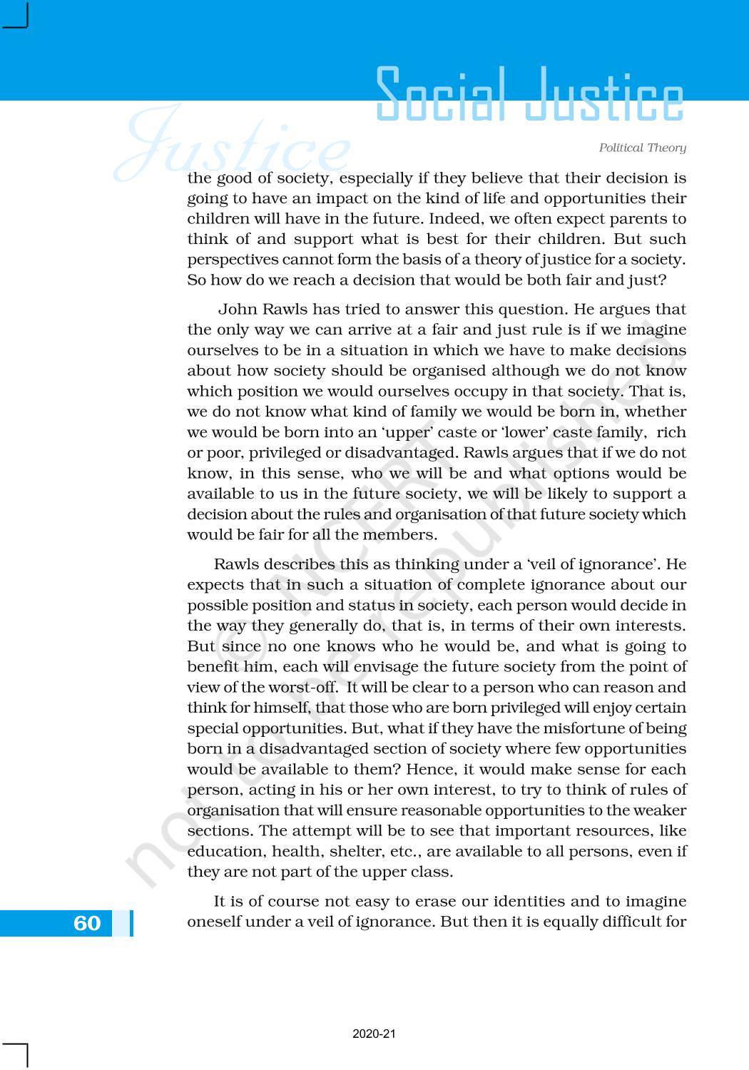 The time when students had limited options of choice for NCERT books wherein they need to go to the bookstore to buy the books but here at BeTrained.in, you can read the complete chapter-Social Justice of NCERT books for class 11 Political Theory. If CBSE class 11 students are finding it hard to search for NCERT Political Theory books online, then this is the right place as we have provided the textbooks of NCERT chapter wise. These books are available on our website for free along with NCERT Solutions and Exemplar solutions.