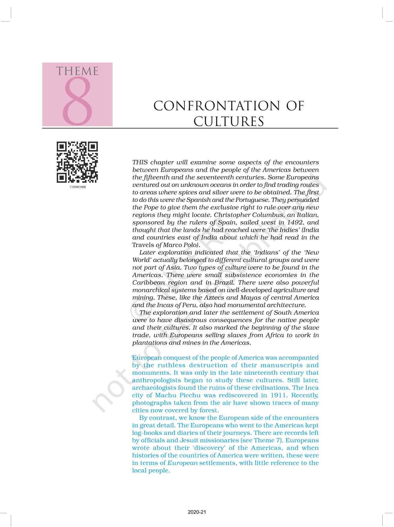 The time when students had limited options of choice for NCERT books wherein they need to go to the bookstore to buy the books but here at BeTrained.in, you can read the complete chapter-Confrontation Of Cultures of NCERT books for class 11 Themes In World History. If CBSE class 11 students are finding it hard to search for NCERT Themes In World History books online, then this is the right place as we have provided the textbooks of NCERT chapter wise. These books are available on our website for free along with NCERT Solutions and Exemplar solutions.
