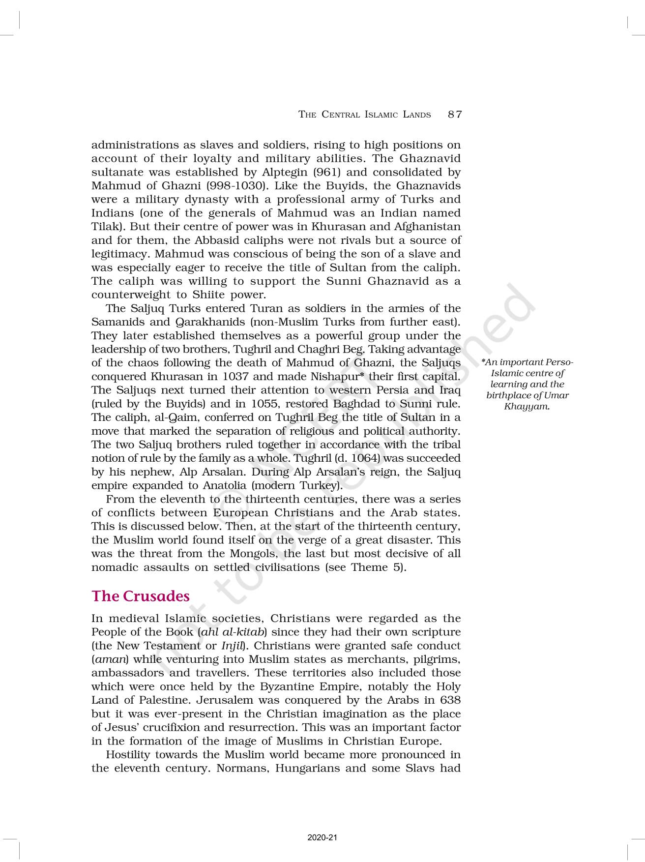 The time when students had limited options of choice for NCERT books wherein they need to go to the bookstore to buy the books but here at BeTrained.in, you can read the complete chapter-The Central Islamic Lands of NCERT books for class 11 Themes In World History. If CBSE class 11 students are finding it hard to search for NCERT Themes In World History books online, then this is the right place as we have provided the textbooks of NCERT chapter wise. These books are available on our website for free along with NCERT Solutions and Exemplar solutions.