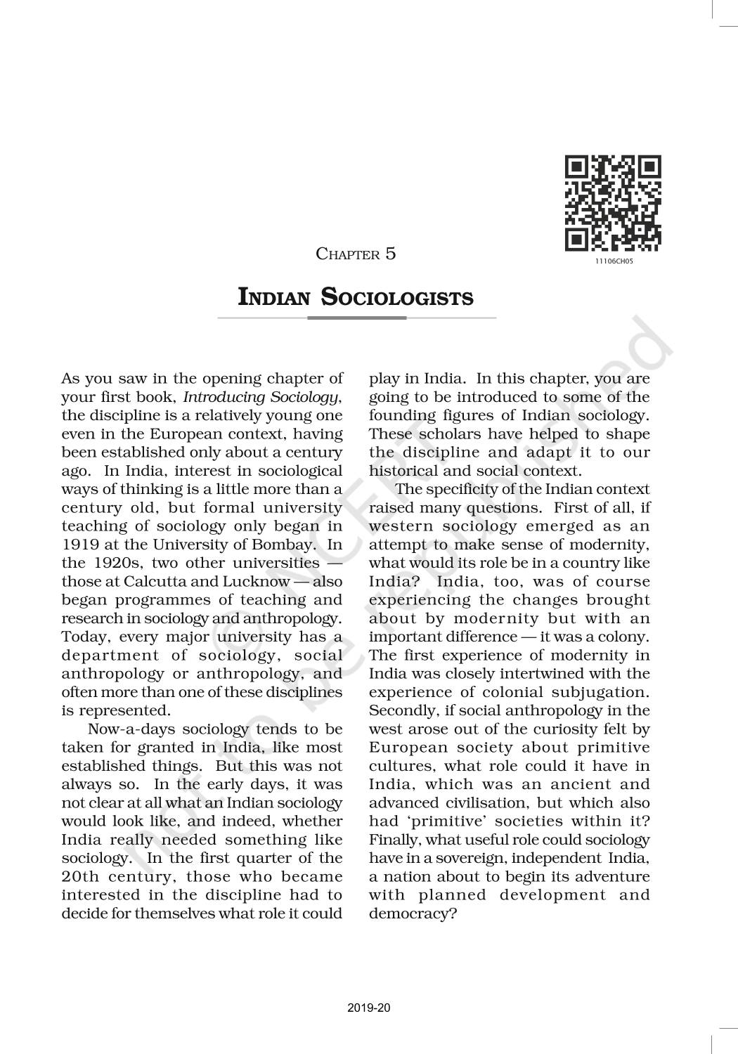 The time when students had limited options of choice for NCERT books wherein they need to go to the bookstore to buy the books but here at BeTrained.in, you can read the complete chapter-Indian Sociologists of NCERT books for class 11 Understanding Society. If CBSE class 11 students are finding it hard to search for NCERT Understanding Society books online, then this is the right place as we have provided the textbooks of NCERT chapter wise. These books are available on our website for free along with NCERT Solutions and Exemplar solutions.