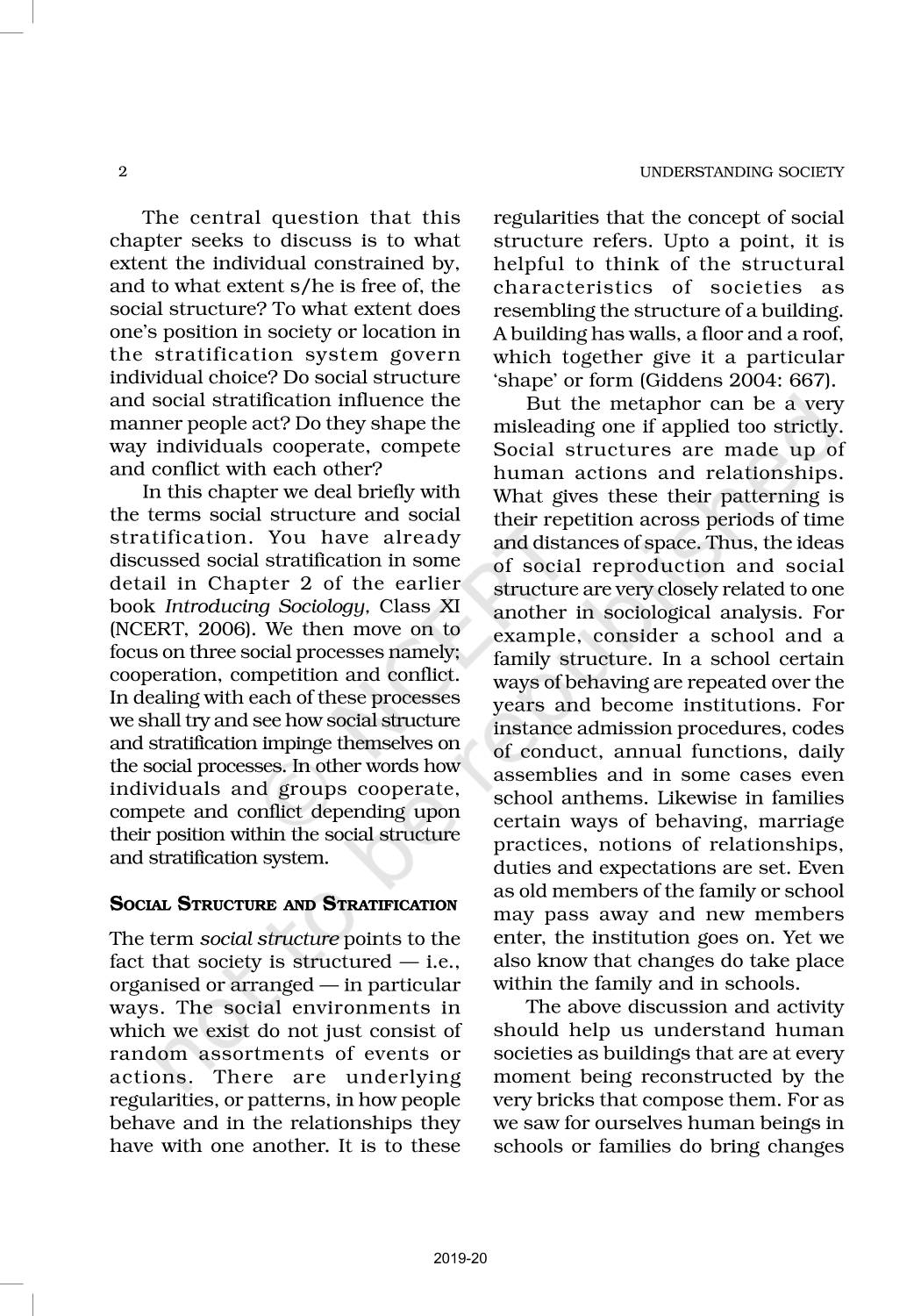 The time when students had limited options of choice for NCERT books wherein they need to go to the bookstore to buy the books but here at BeTrained.in, you can read the complete chapter-Social Structure Stratification And Social Processes In Society of NCERT books for class 11 Understanding Society. If CBSE class 11 students are finding it hard to search for NCERT Understanding Society books online, then this is the right place as we have provided the textbooks of NCERT chapter wise. These books are available on our website for free along with NCERT Solutions and Exemplar solutions.